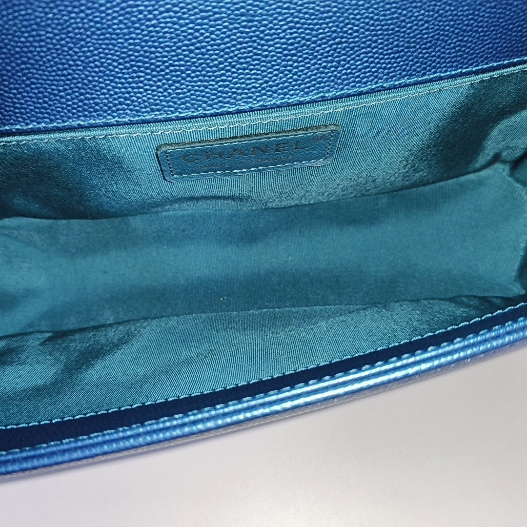 CHANEL BOY CHANEL Blue Quilted Calfskin Monogram Shoulder Bag, Crossbody with Detachable Strap, Ruthenium-Colored Hardware, 24 Clasps-(SKU)-967190890