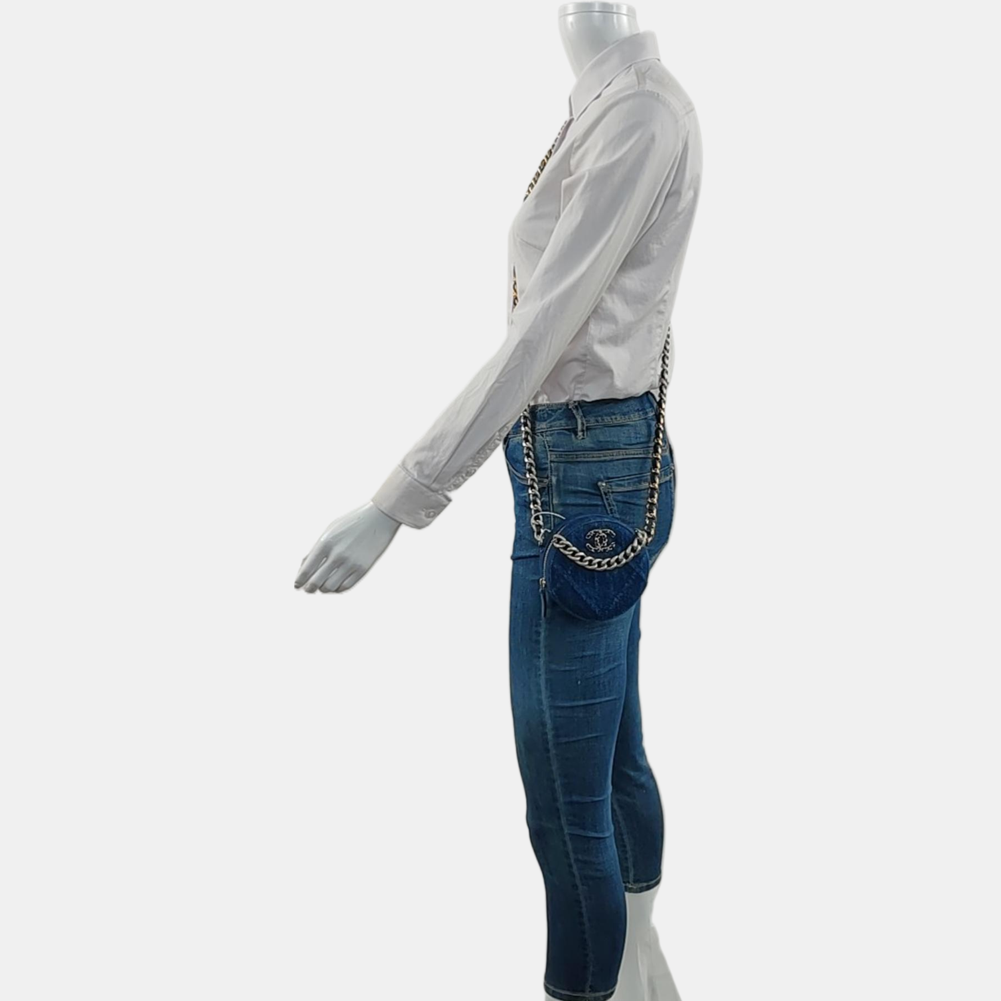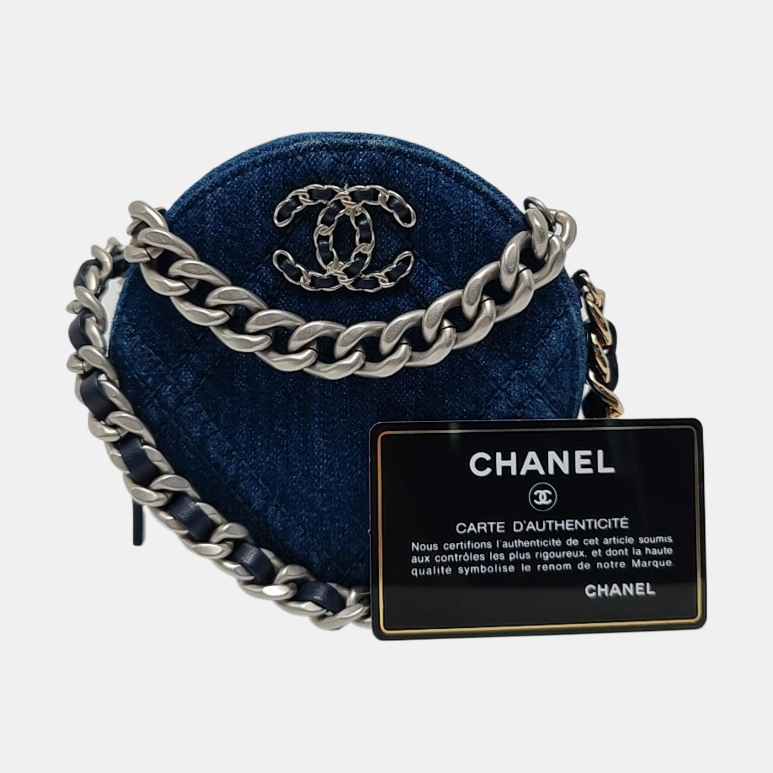 CHANEL CHANEL 19 Deep Blue Denim Quilted Crossbody Shoulder Bag with Golden and Silver Hardware, 31K-(SKU)-966421426