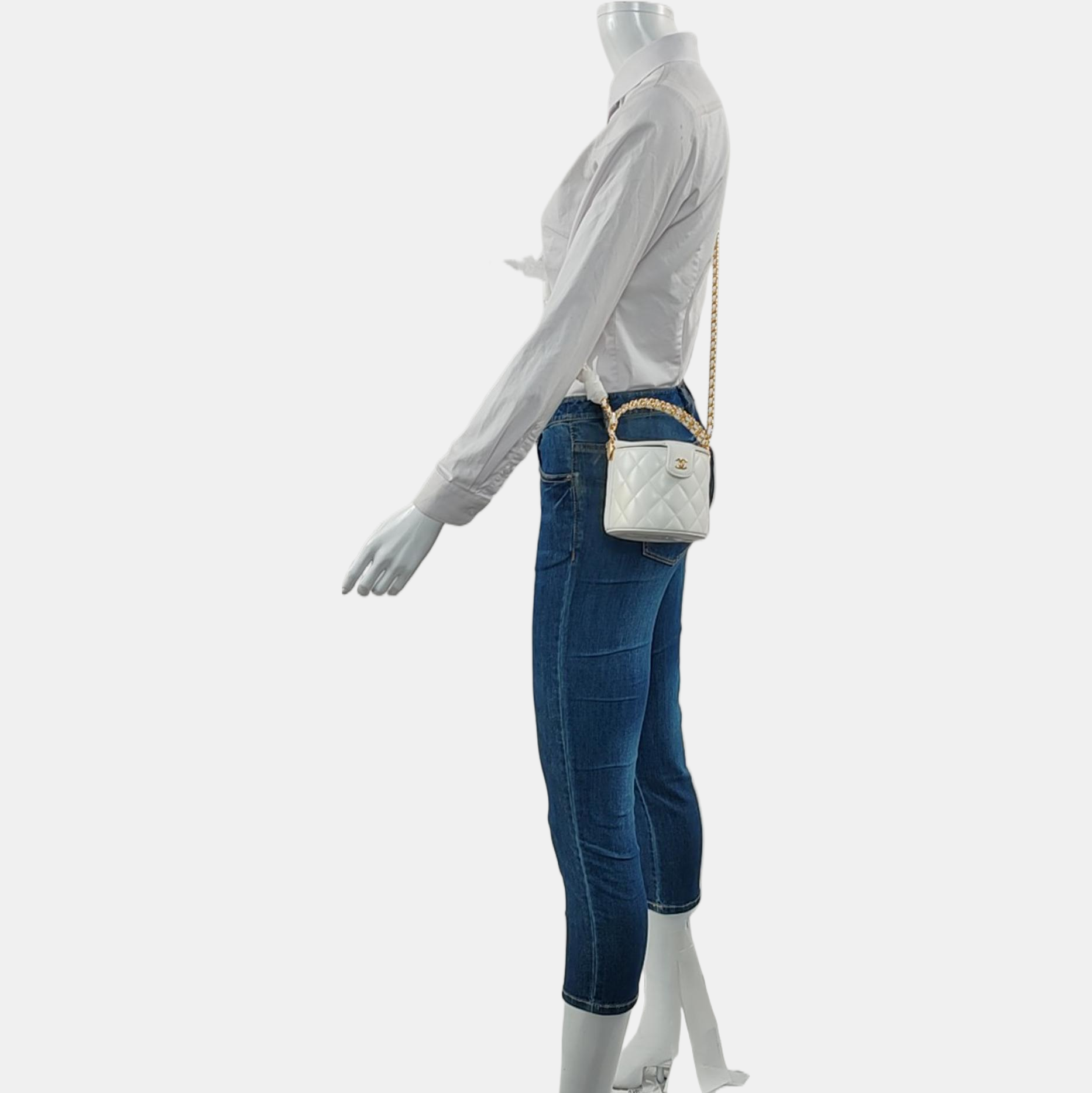 CHANEL ROUND VANITY white lambskin quilted diamond pattern crossbody bag shoulder bag gold hardware-(SKU)-966962646