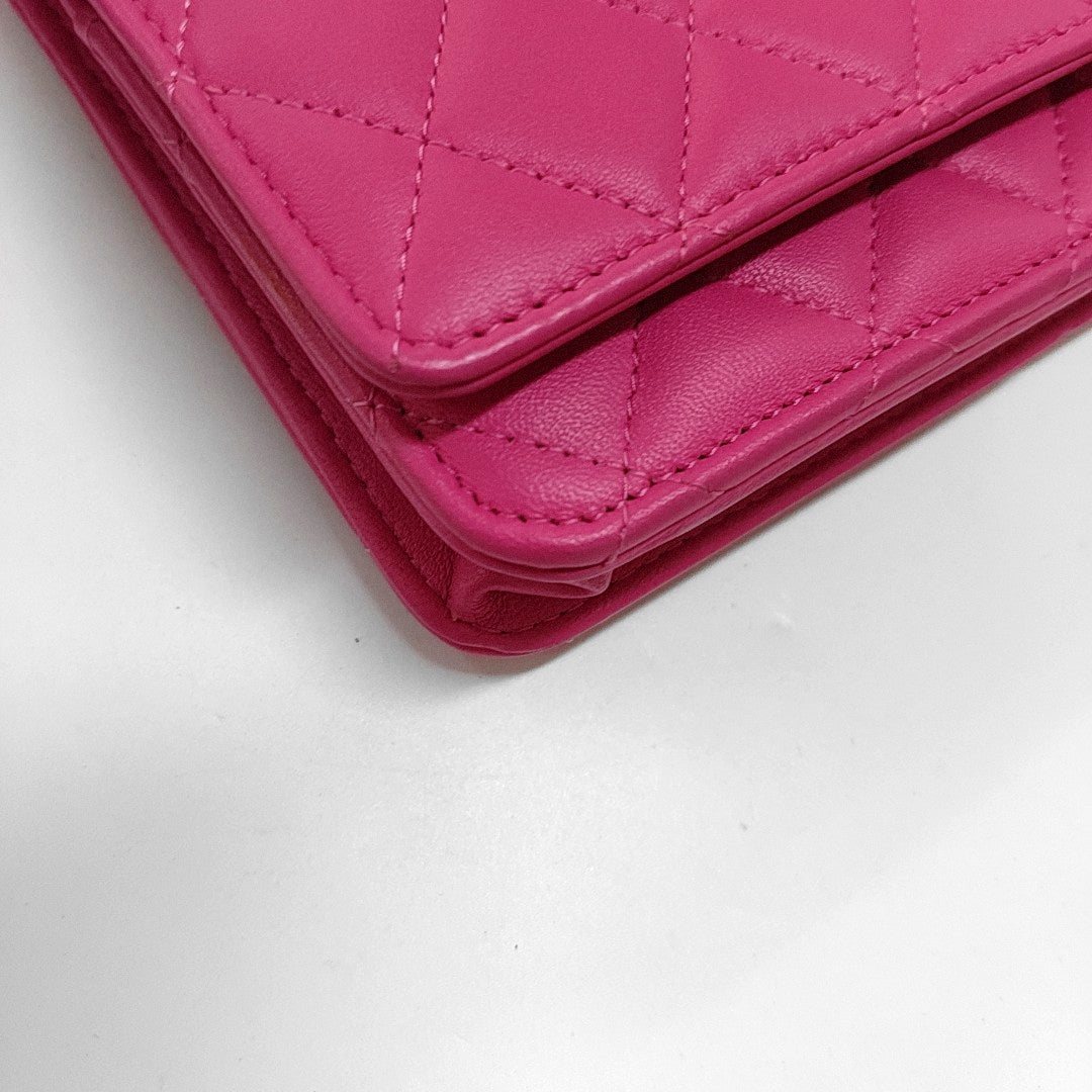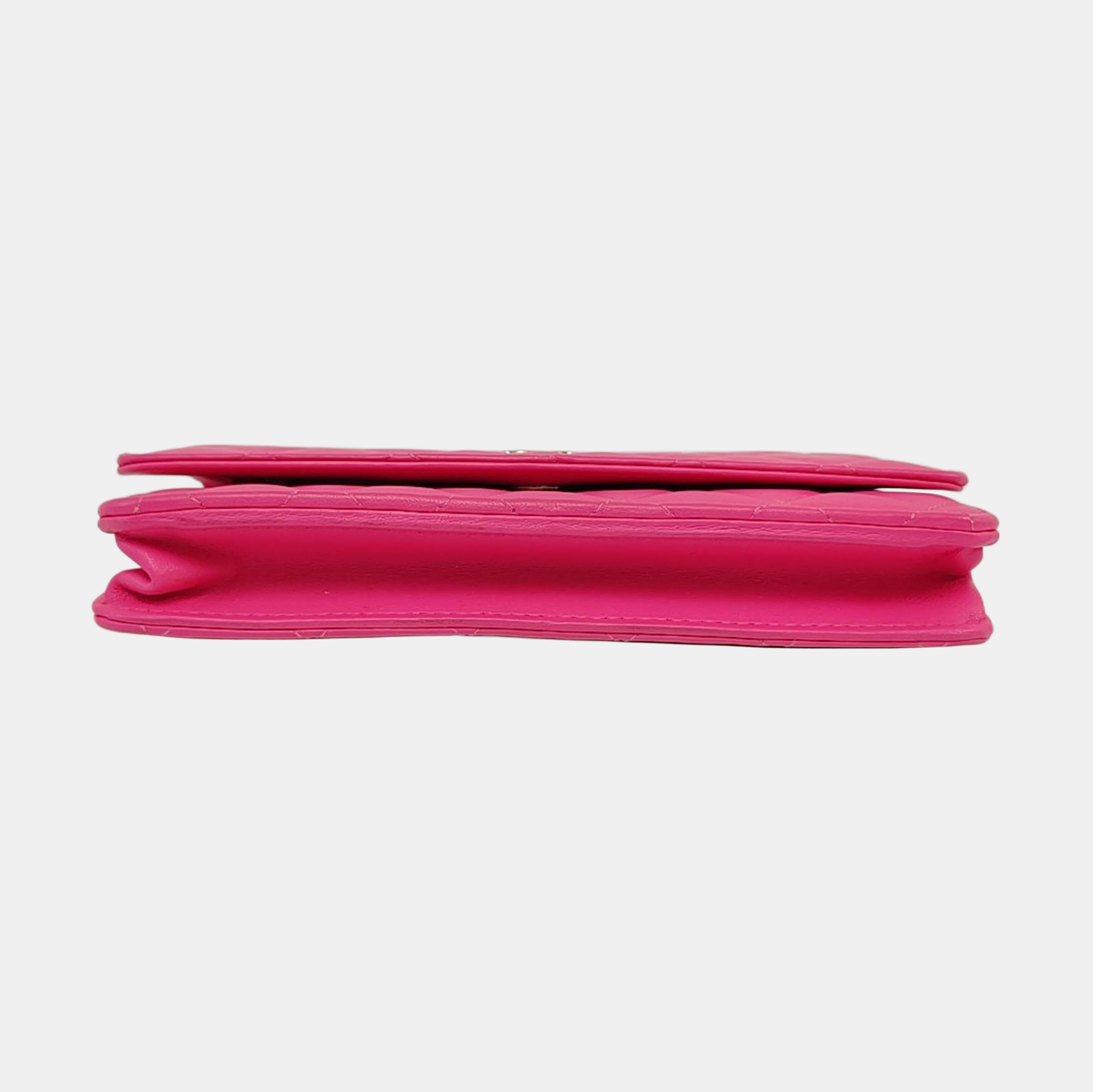 CHANEL WOC Pink Lamb Skin Quilted Single Shoulder Bag Crossbody Bag Golden Hardware-(SKU)-966775243