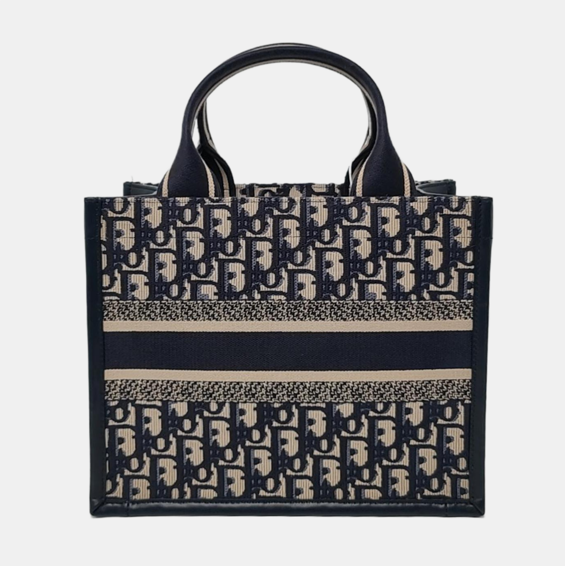 DIOR Book Tote Small Blue Canvas Monogram Embroidered Crossbody Shoulder Bag Handbag Tote Bag Golden Hardware Removable Strap Accessories Included-(SKU)-955313336