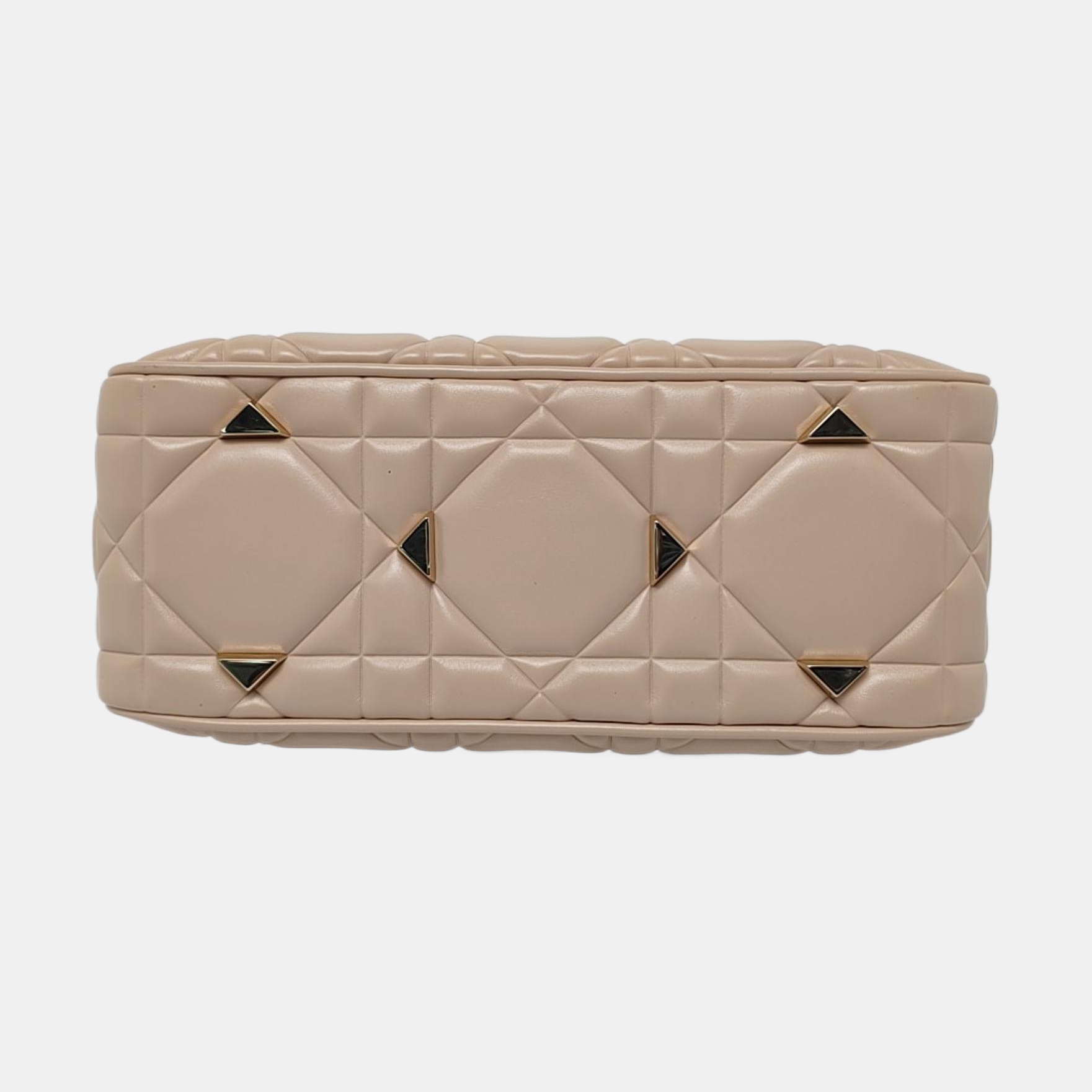 DIOR Lady Dior Small Beige Calfskin Cannage Embossed Shoulder Bag Tote Bag Crossbody Bag Golden Hardware Removable Strap-(SKU)-958701204