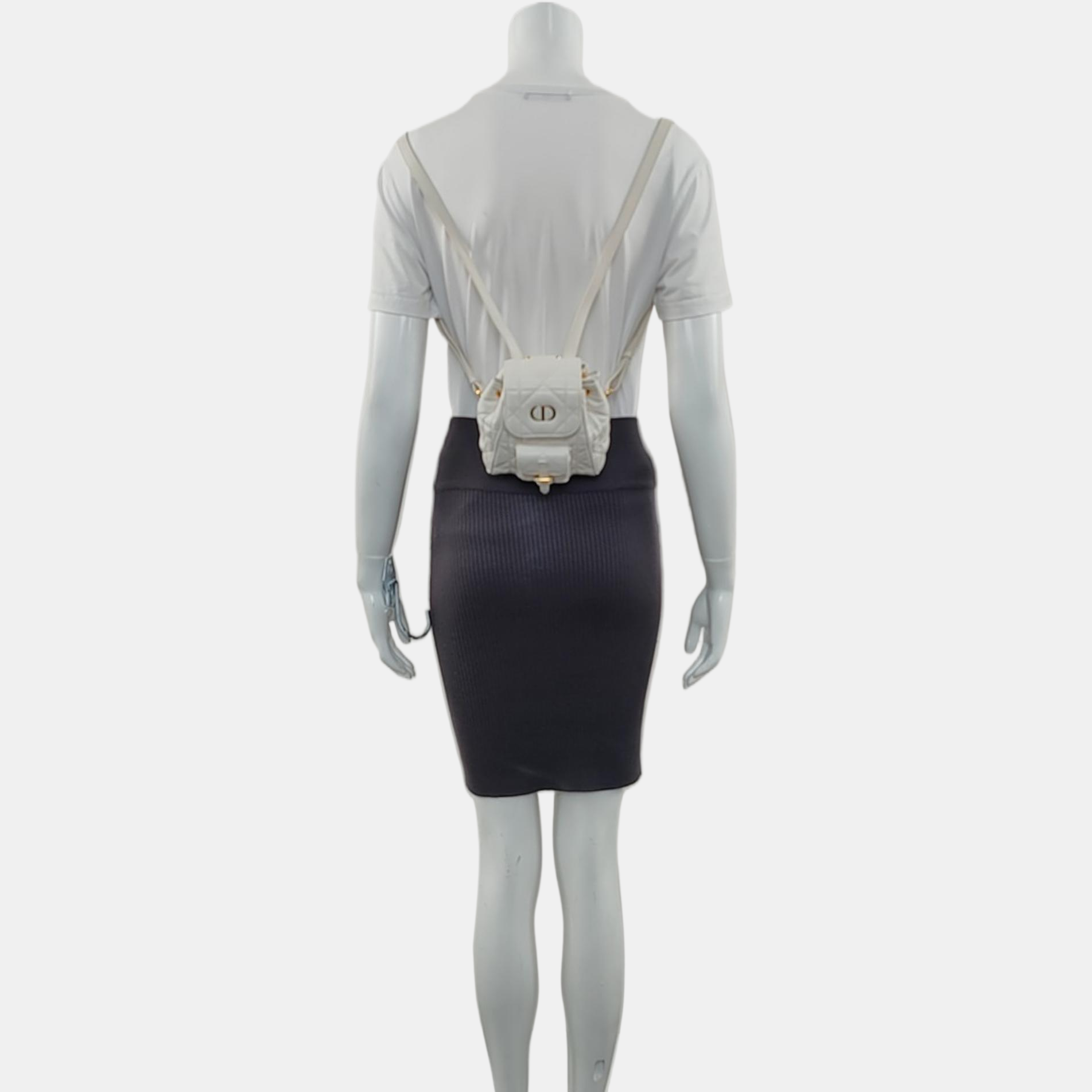 DIOR Dior Caro White Lamb Skin Woven Check Double Shoulder Bag Golden Hardware-(SKU)-969428669
