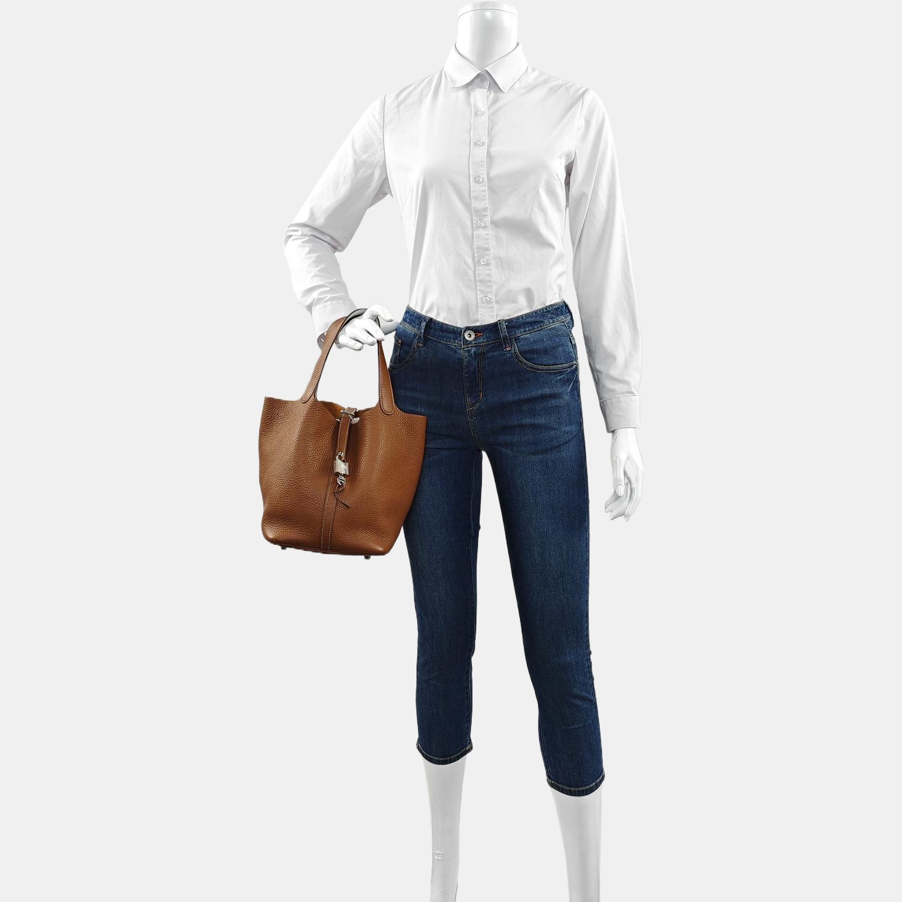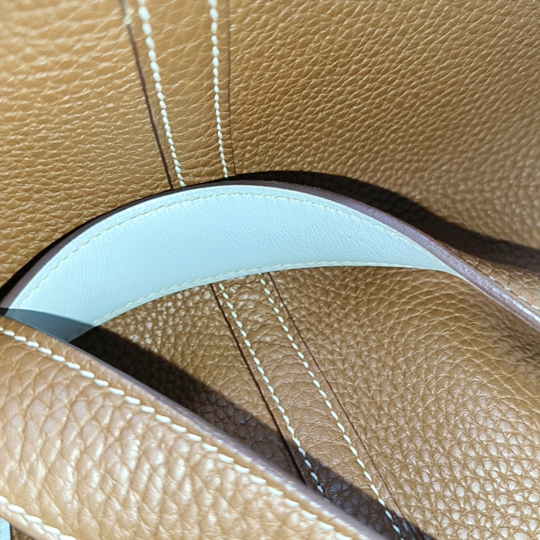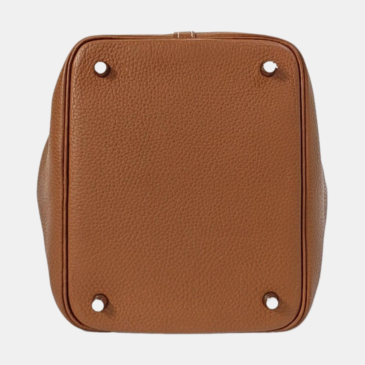 HERMÈS Picotin Lock 22 Gold Brown Clemence Leather Basket Tote Bag Shoulder Bag Silver Hardware Z-(SKU)-965274006