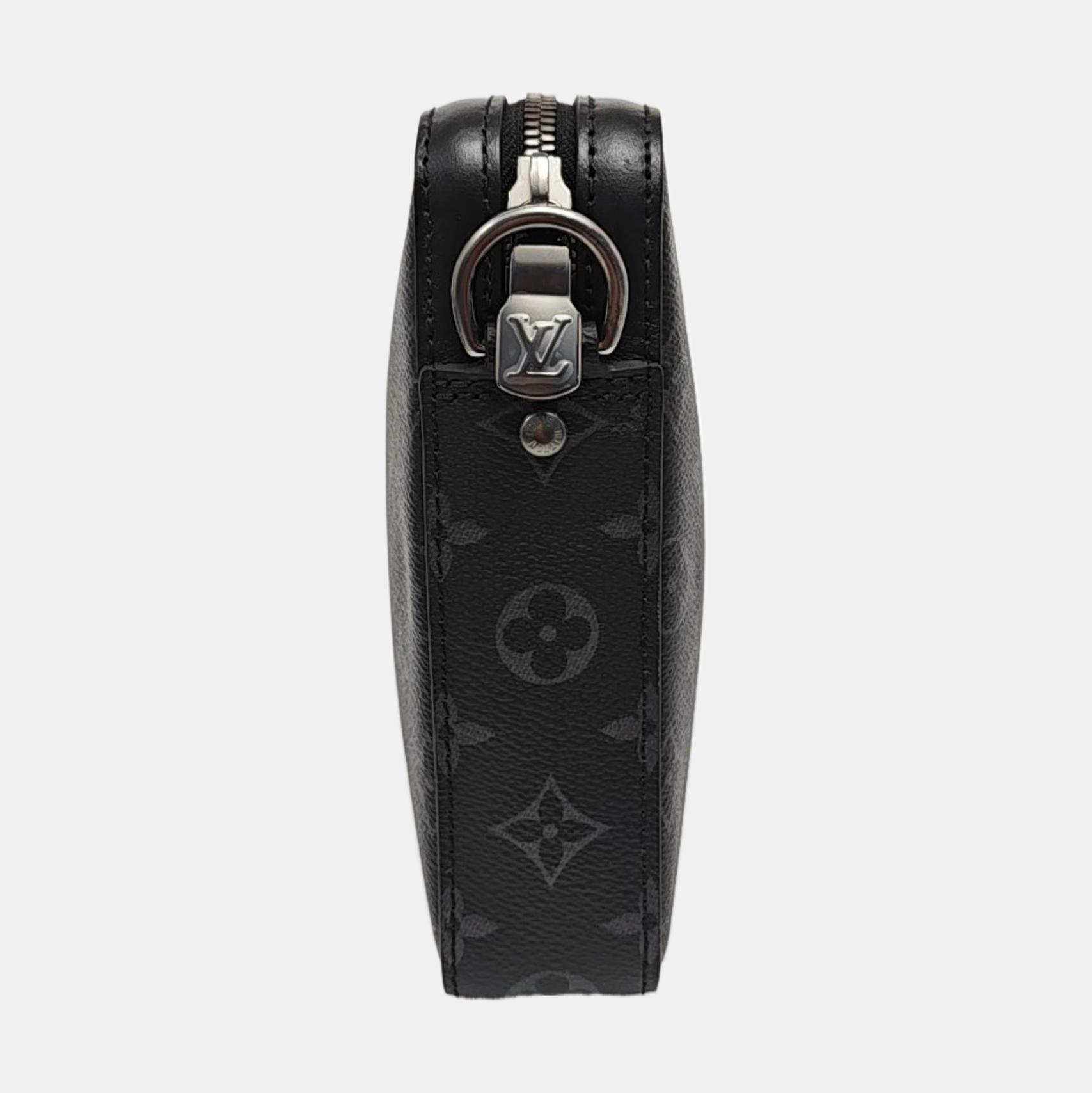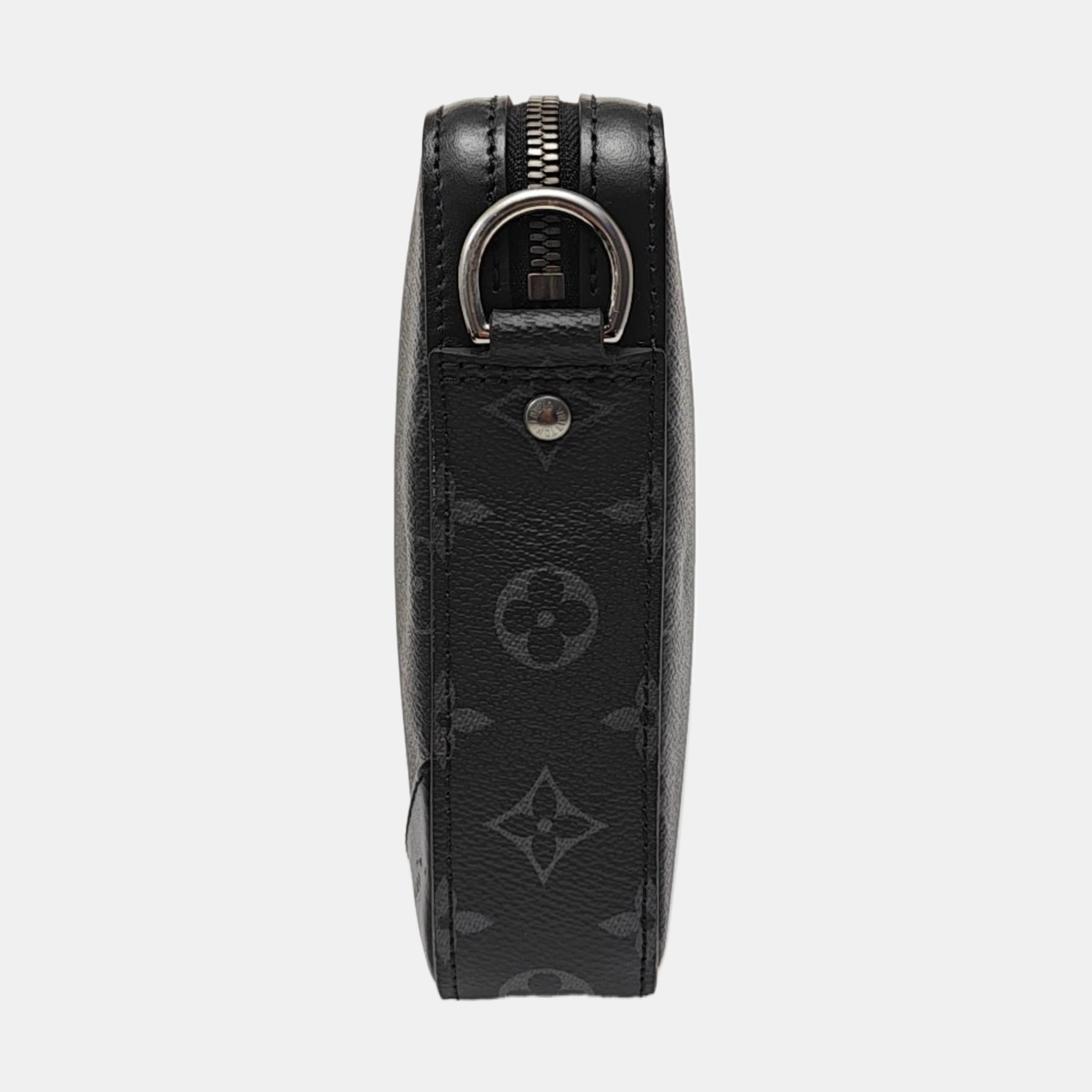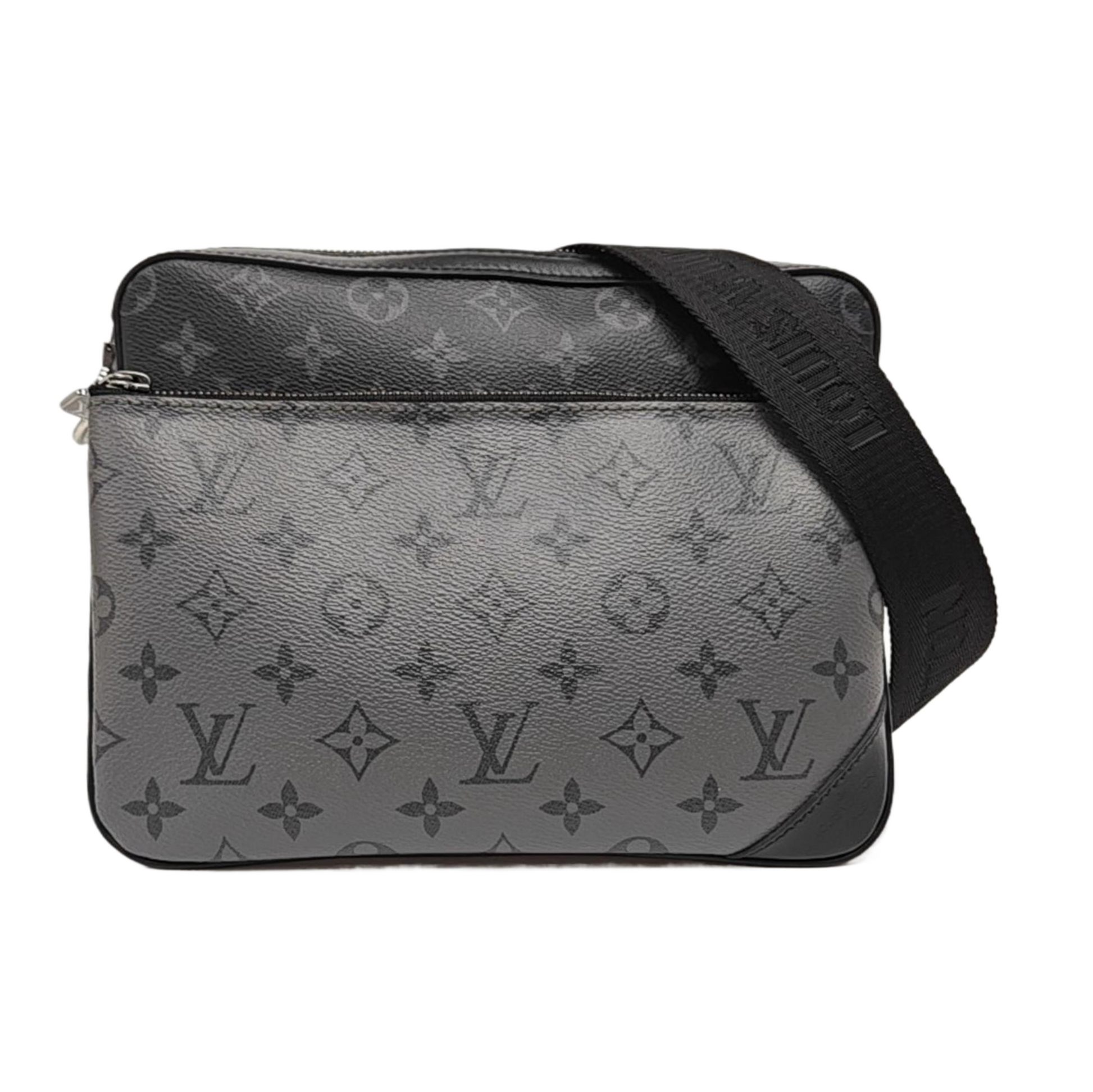 LOUIS VUITTON TRIO Gray Coated Canvas Monogram Messenger Bag Black Samurai Crossbody Bag Shoulder Bag Silver Hardware Pockets Removable Strap-(SKU)-968551162