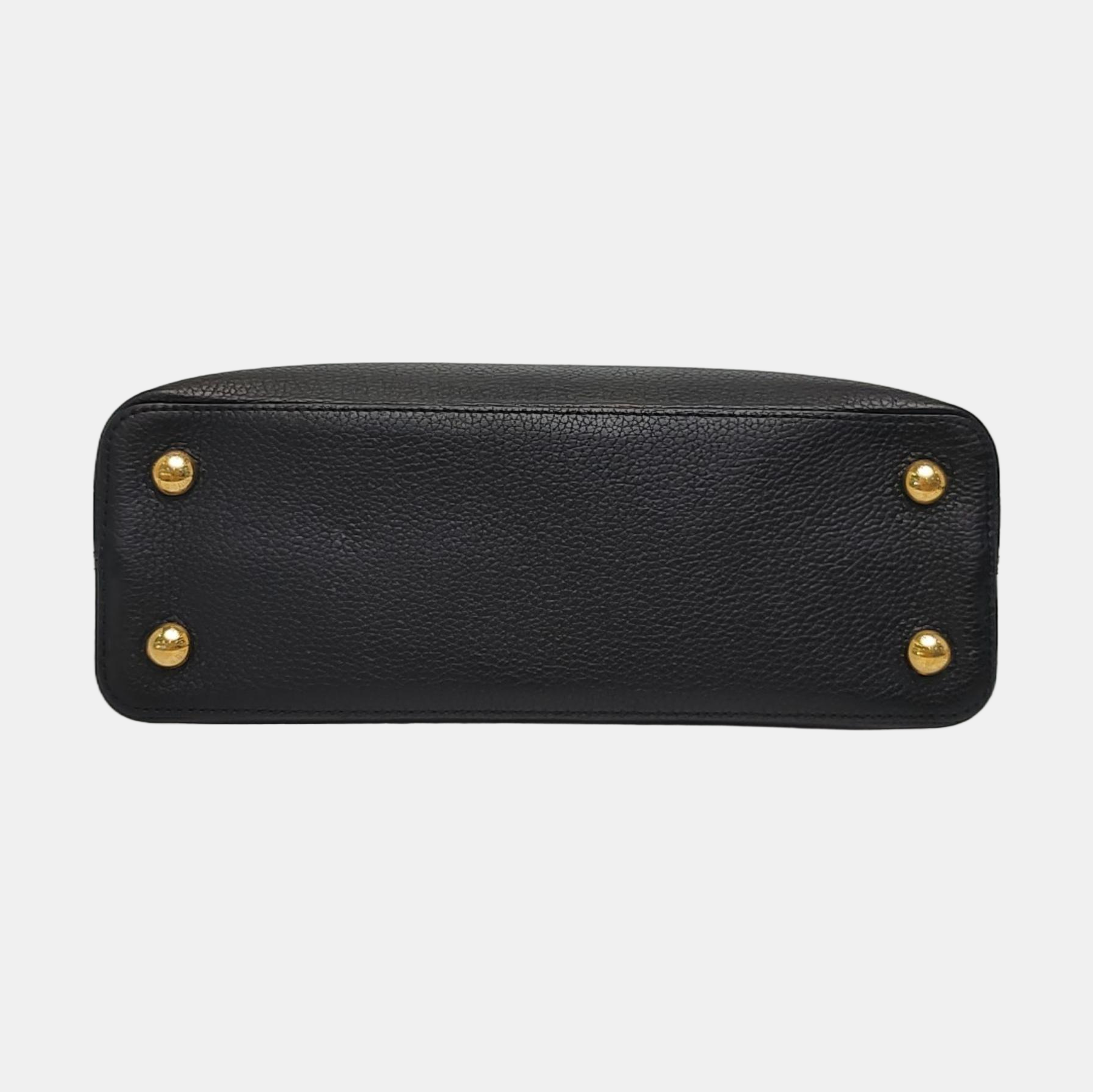 LOUIS VUITTON CAPUCINES Medium Black Calfskin Studs Shoulder Bag Tote Crossbody Bag Gold Hardware Removable Shoulder Strap-(SKU)-970294720