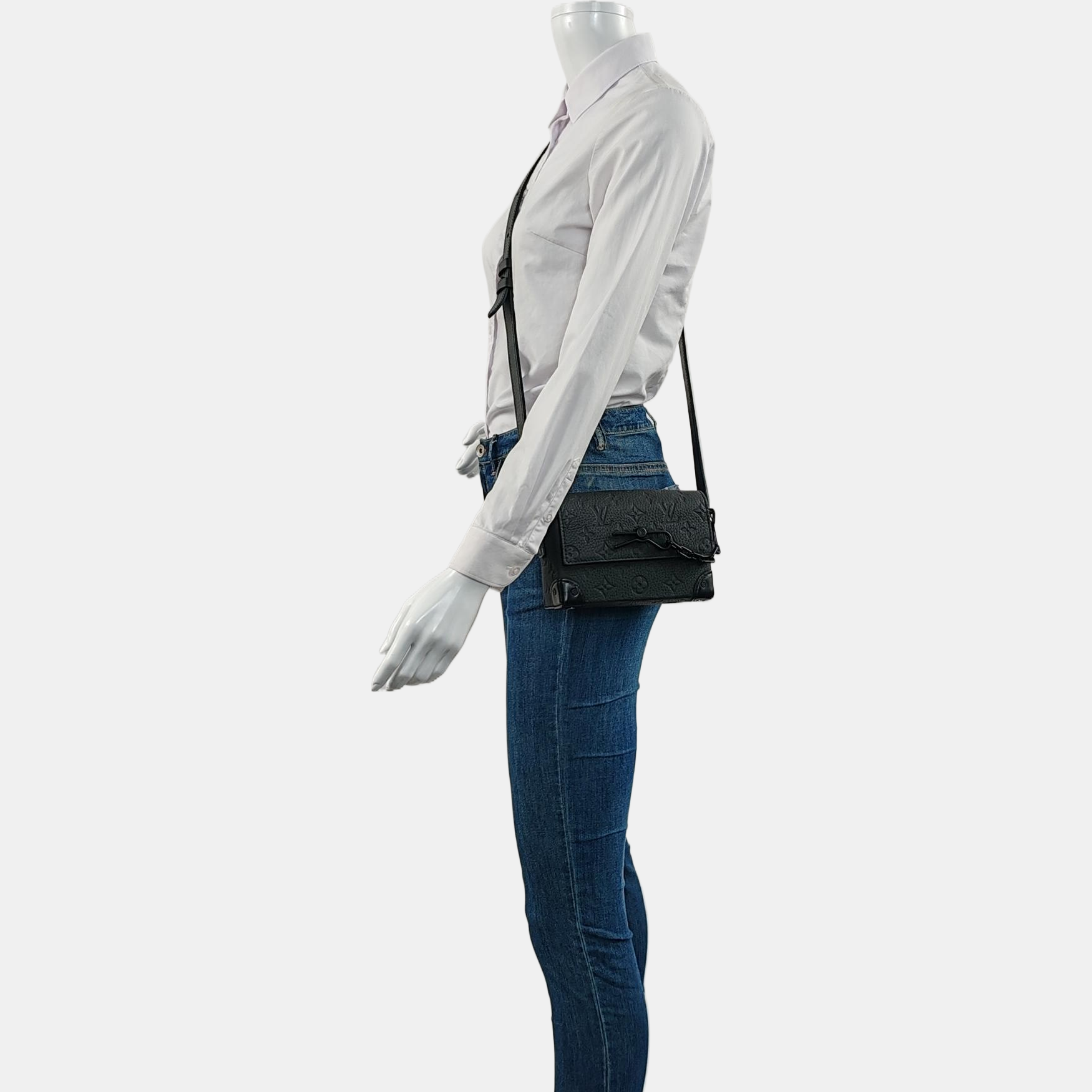 LOUIS VUITTON SOFT TRUNK Mini Black Leather Vintage Embossed Black Samurai Crossbody Shoulder Bag Black Hardware-(SKU)-964773584