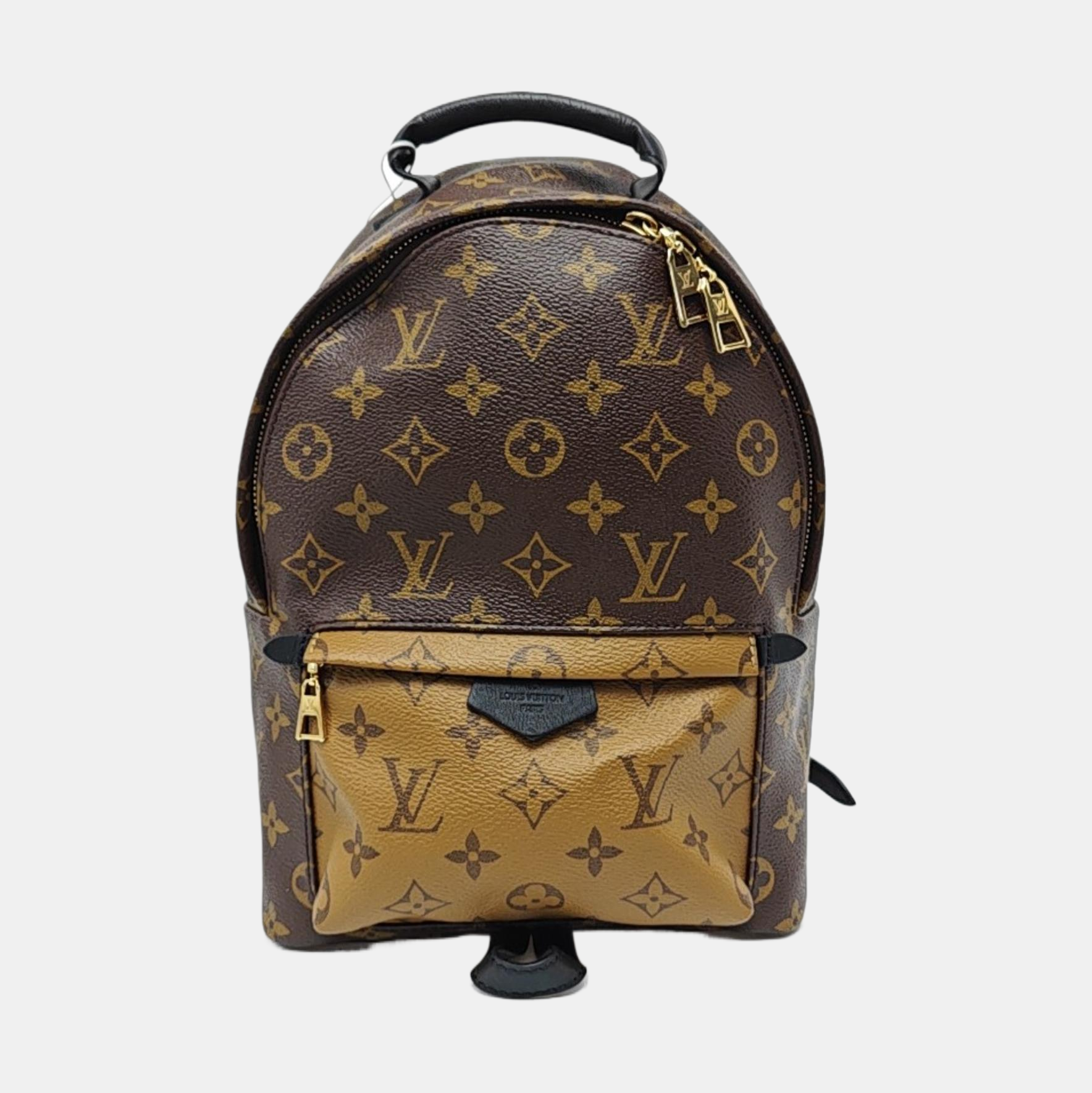 LOUIS VUITTON PALM SPRINGS Small Brown Coated Canvas Monogram Double-Handle Shoulder Bag, Gold Hardware-(SKU)-968611090