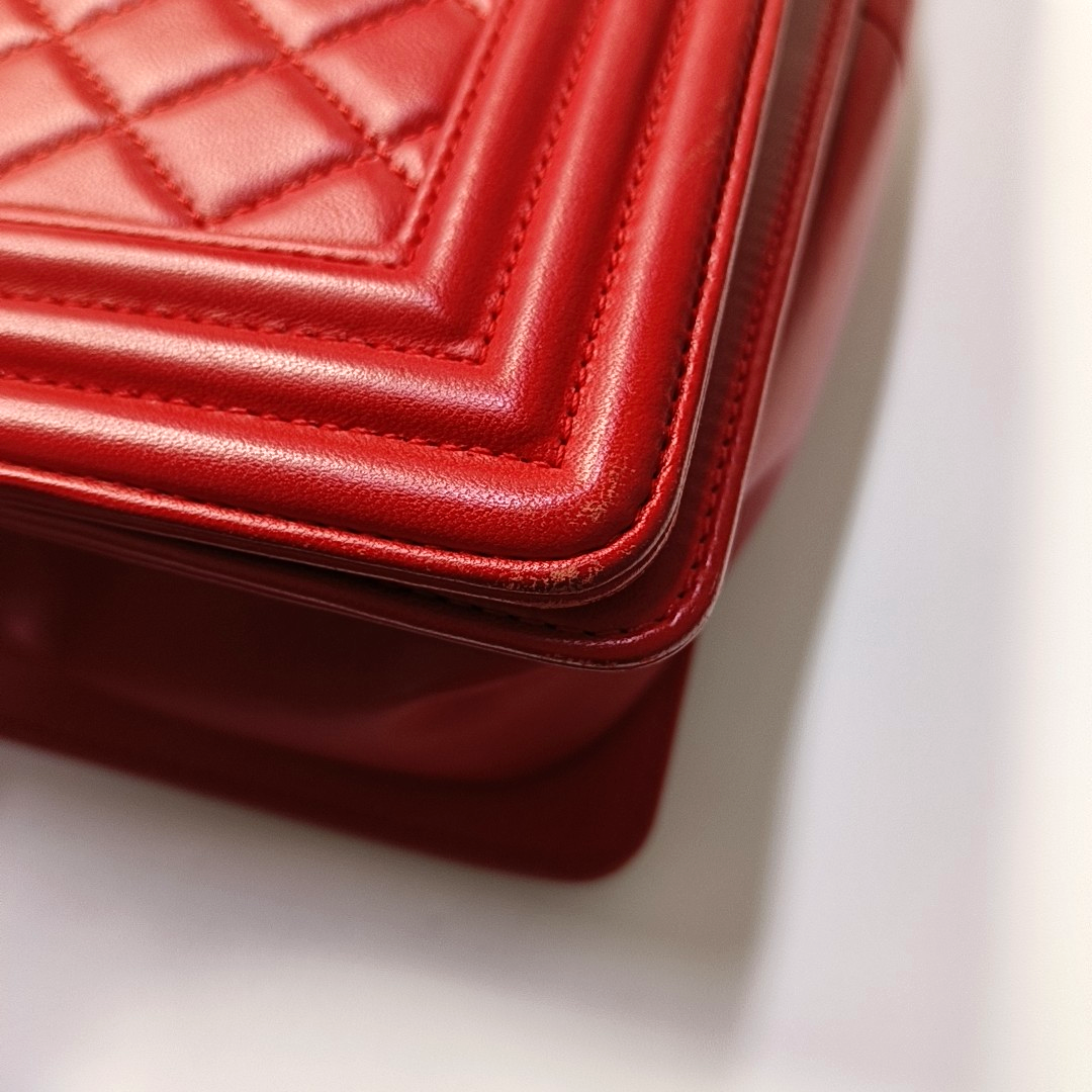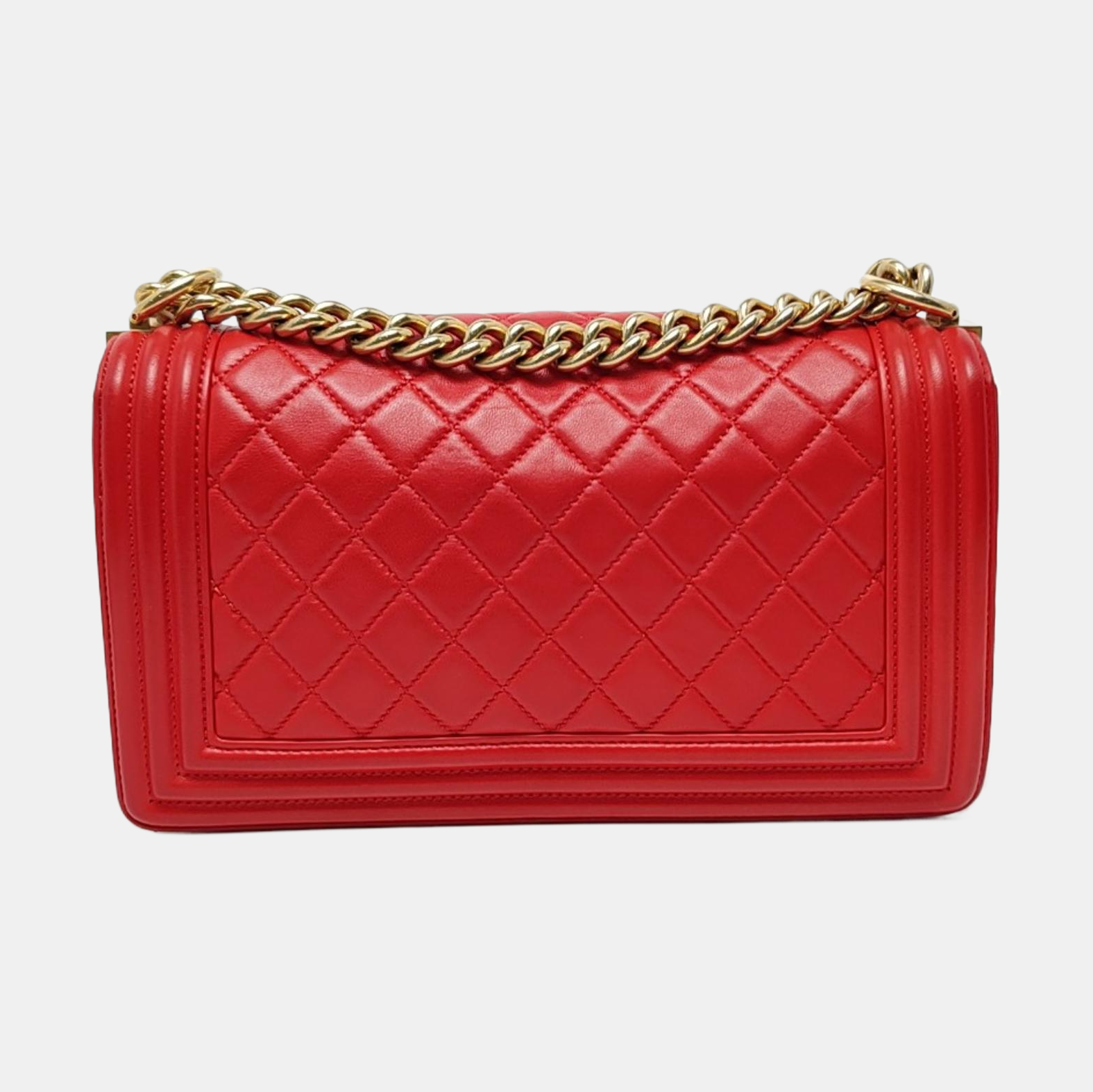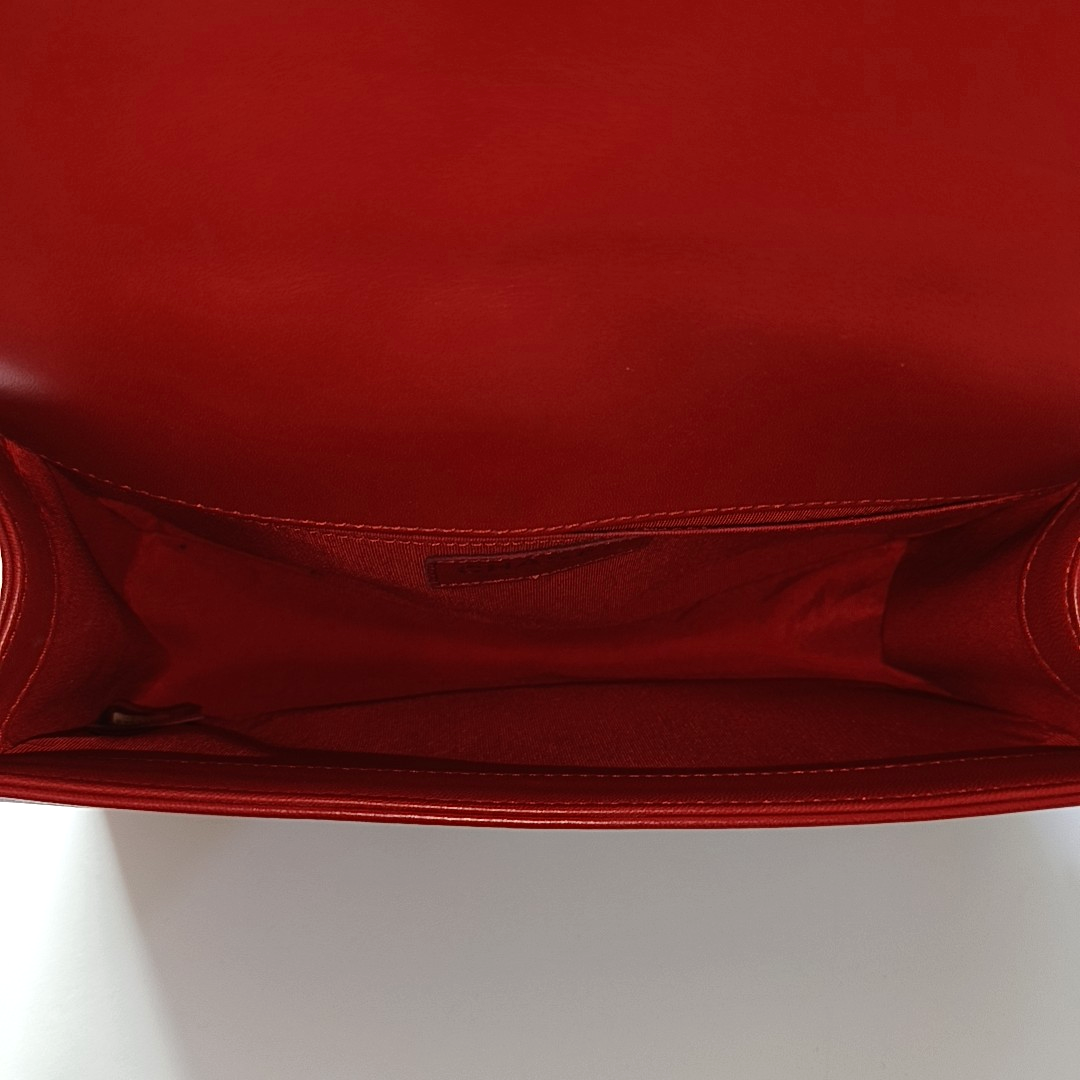 CHANEL BOY CHANEL Medium Size Red Lamb Calfskin Quilted Chevron Single Shoulder Bag Crossbody Bag Gold Hardware 23 Clasp Removable Shoulder Strap-(SKU)-964494003