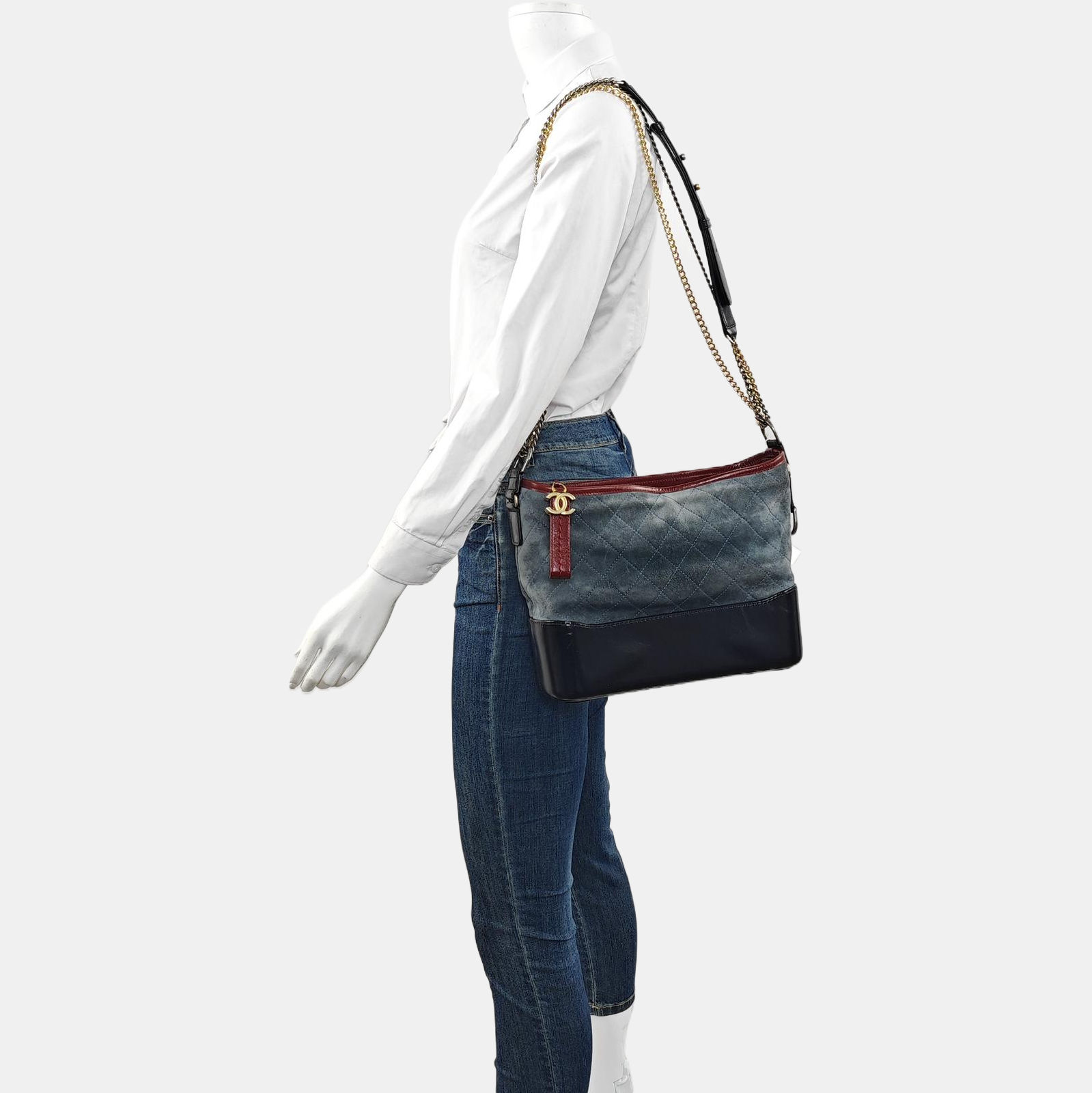 CHANEL GABRIELLE Medium Blue Suede Quilted Leather Hobo Shoulder Bag Crossbody Bag with Detachable Strap-(SKU)-961833804