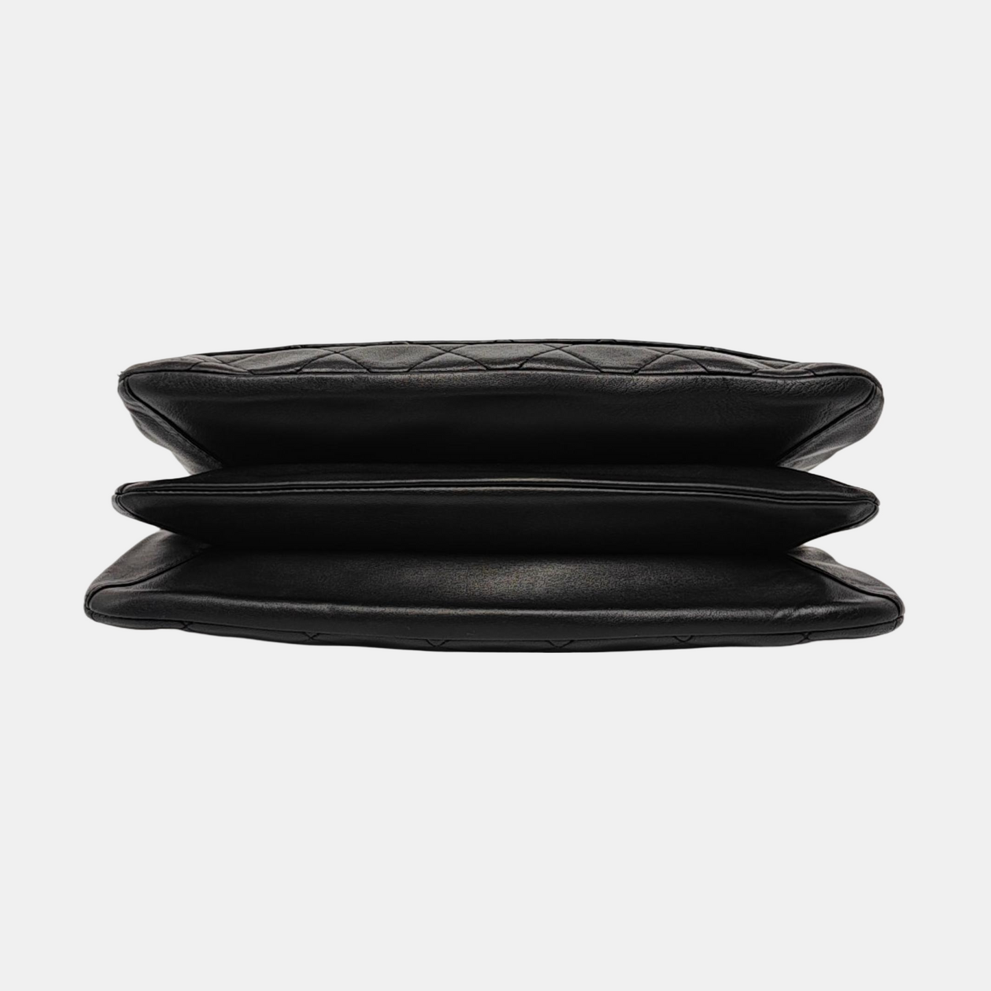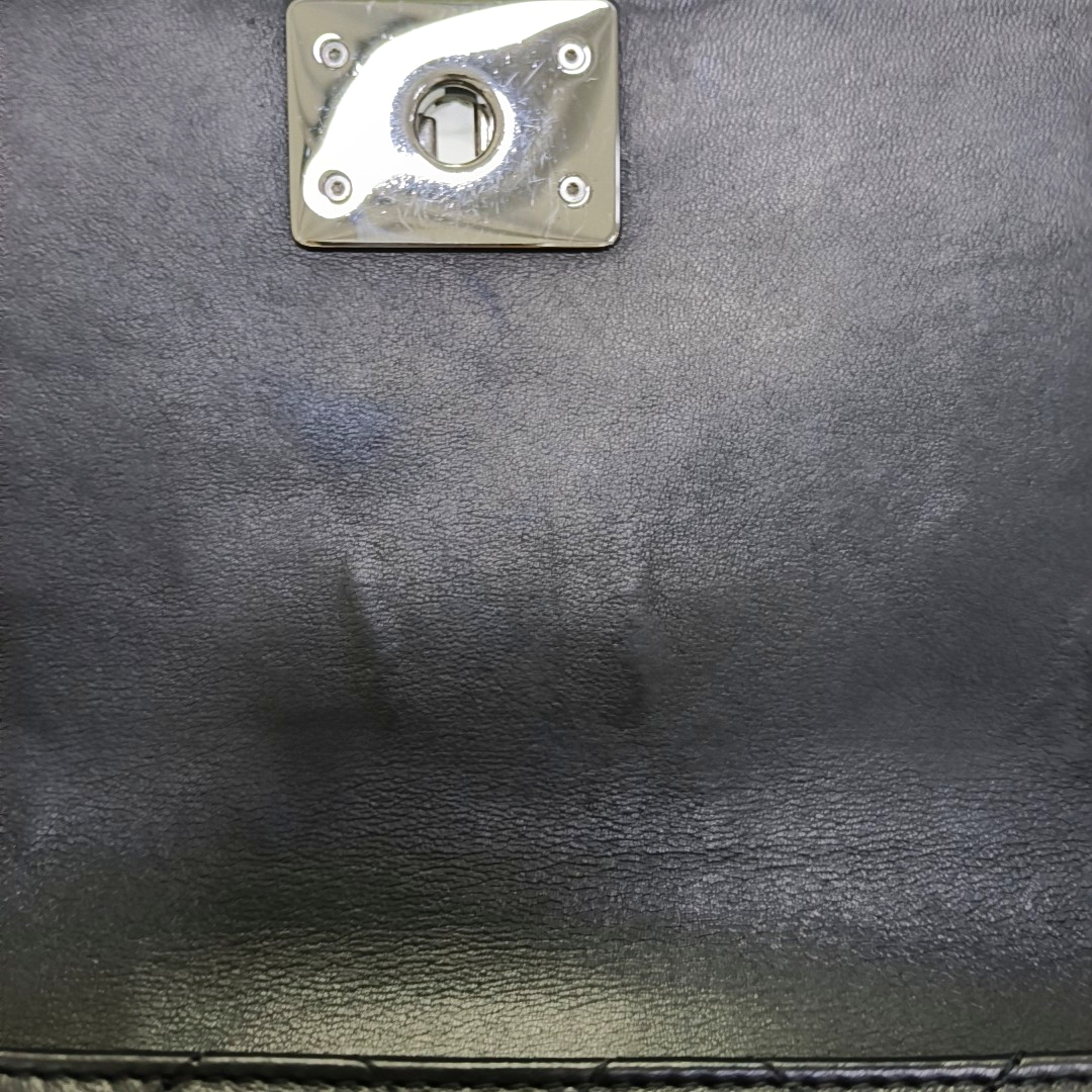 CHANEL BOY CHANEL Black Lamb Skin Quilted Single Shoulder Bag with Silver Hardware, 16 Clasp-(SKU)-961049514