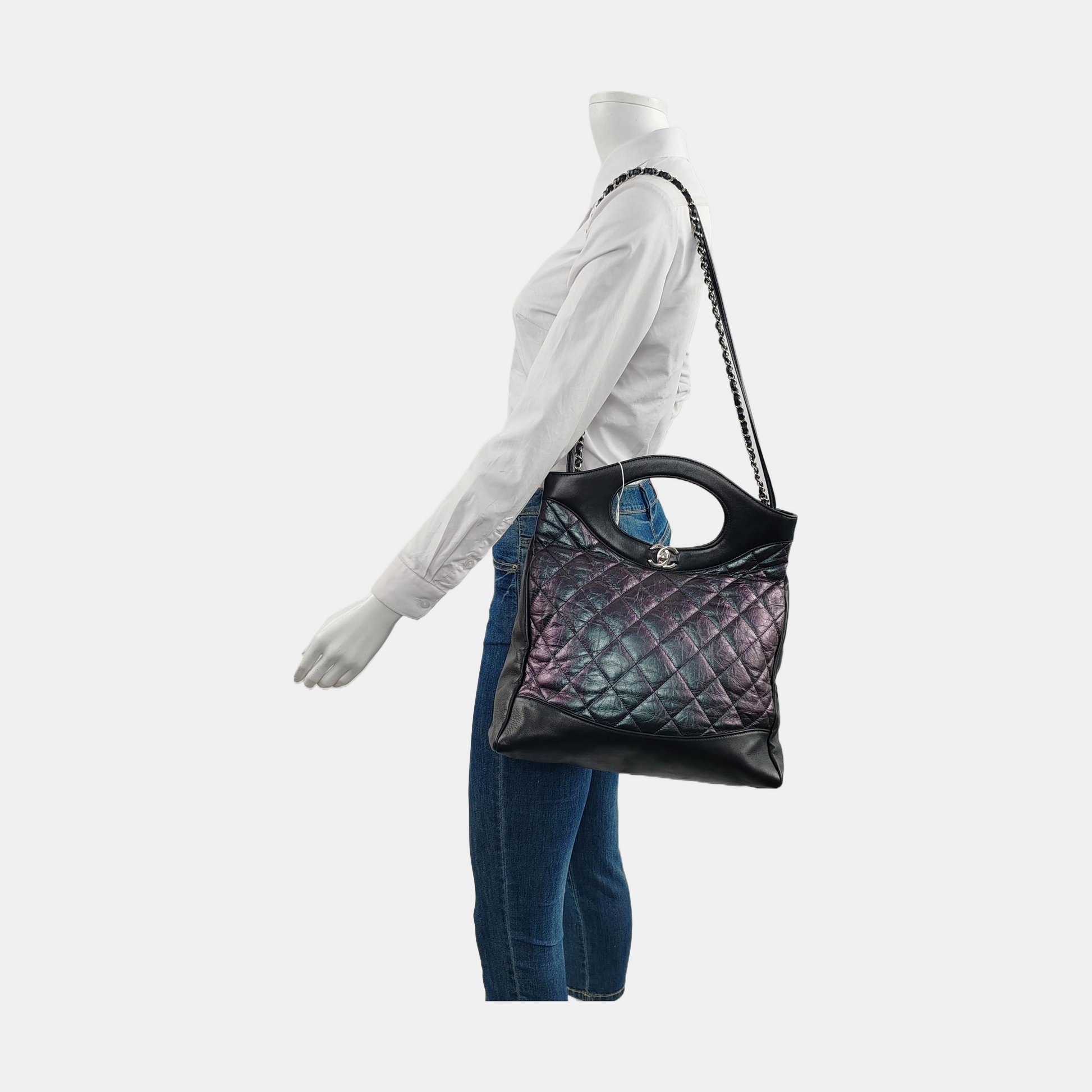 CHANEL CHANEL 31 Small Size Laser Cut Calfskin Quilted Crossbody Shoulder Bag with Silver and Palladium Hardware, 28 openings-(SKU)-953385653