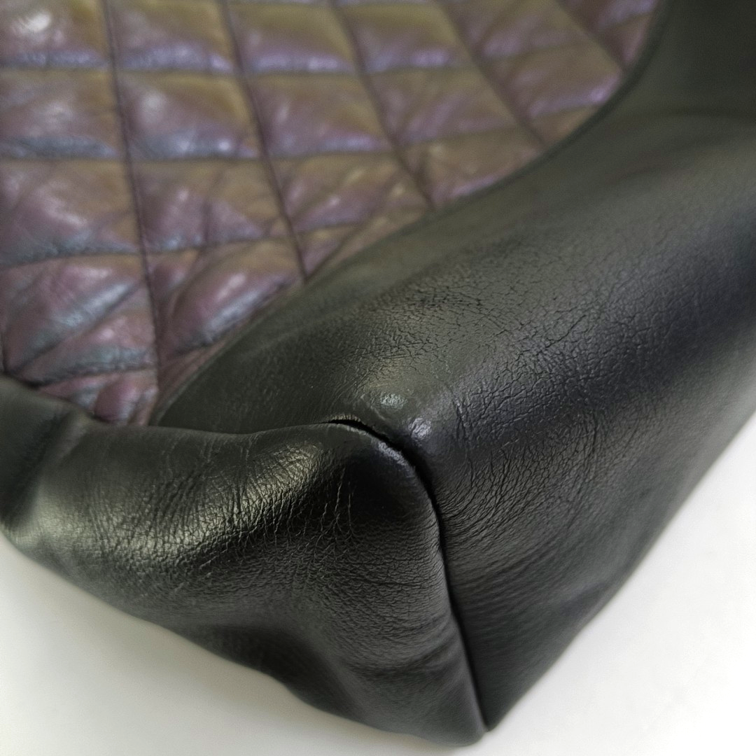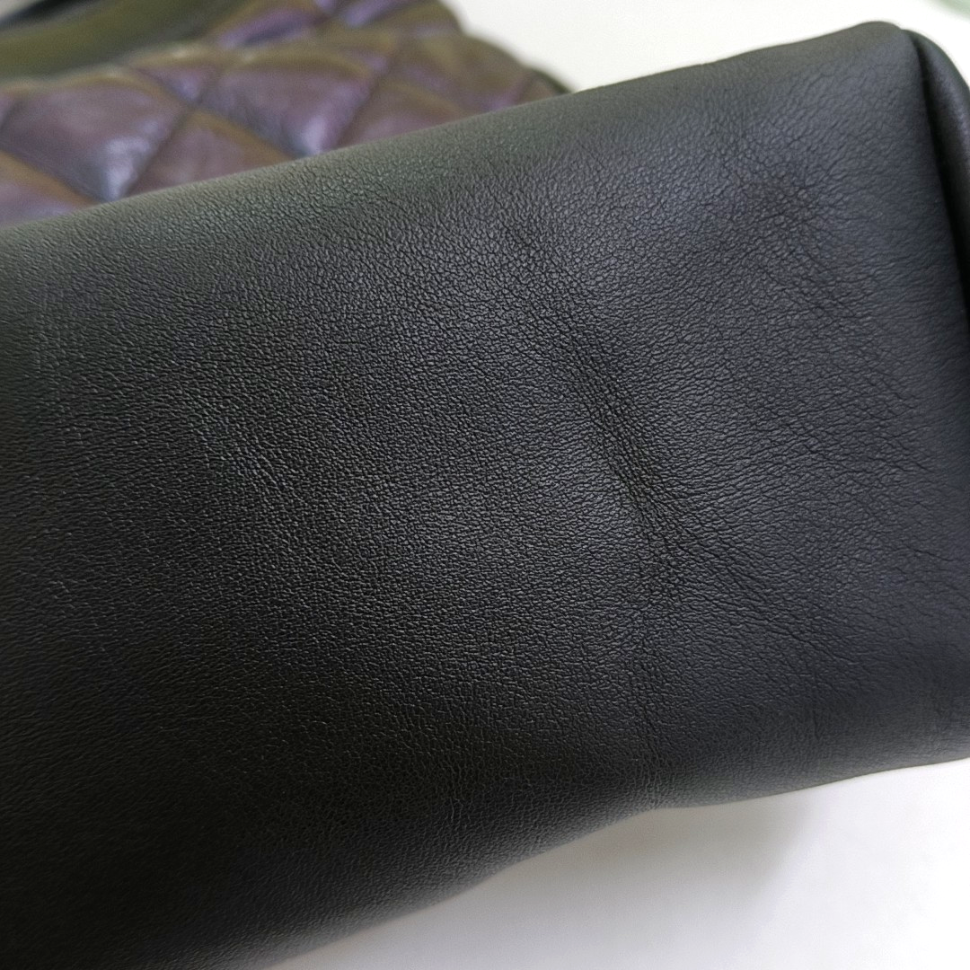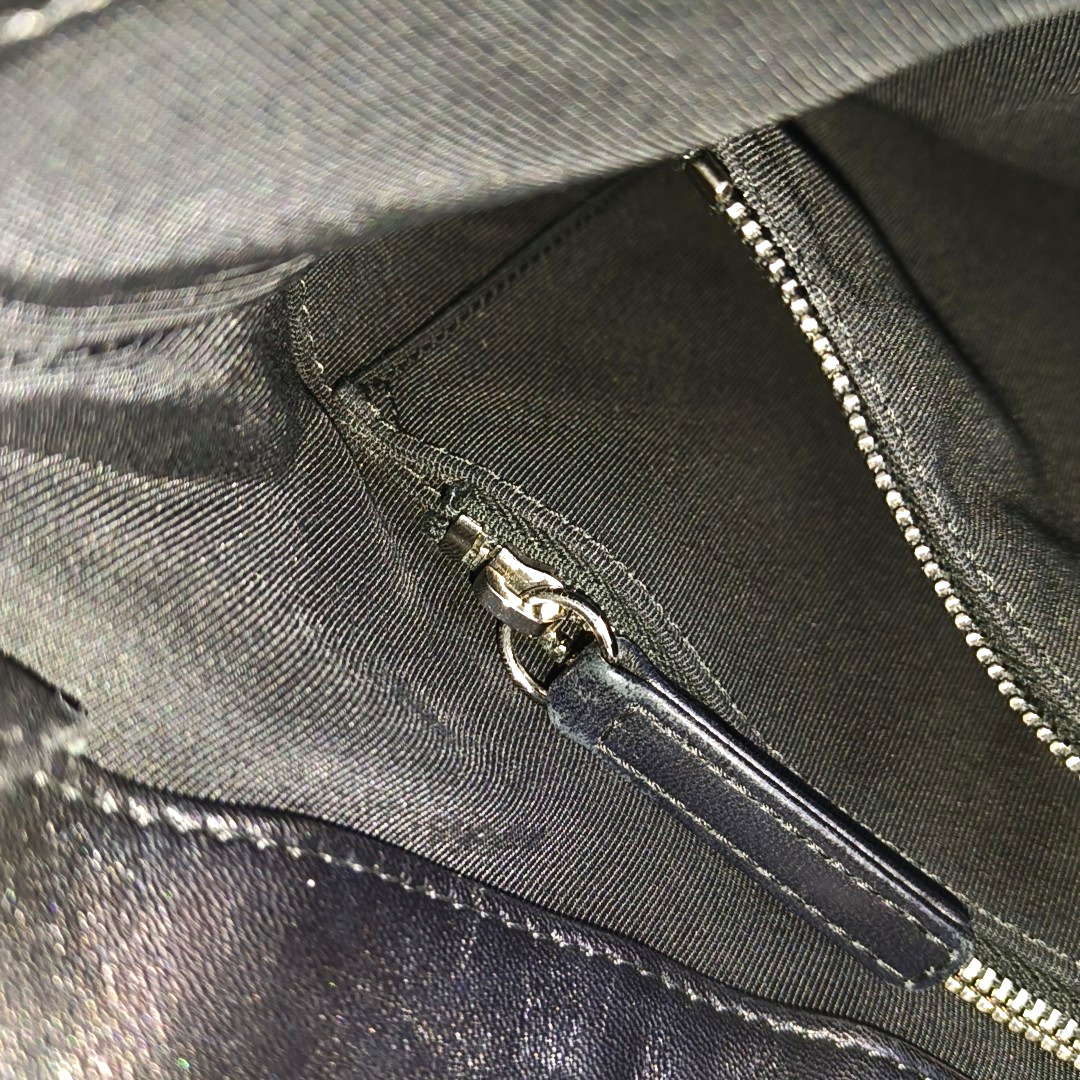 Detailed description: Slight stains on the interior,Strap、Hardware buckle with moderate scratches、Four corners、Slight wear on the zipper,Front、Slight creases on the bottom side,Back side、Slight scratches on the front