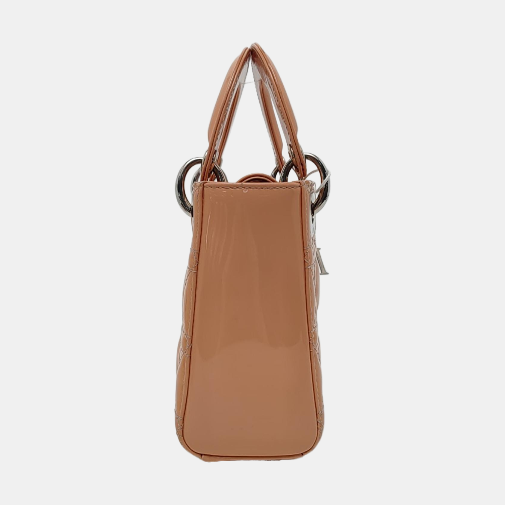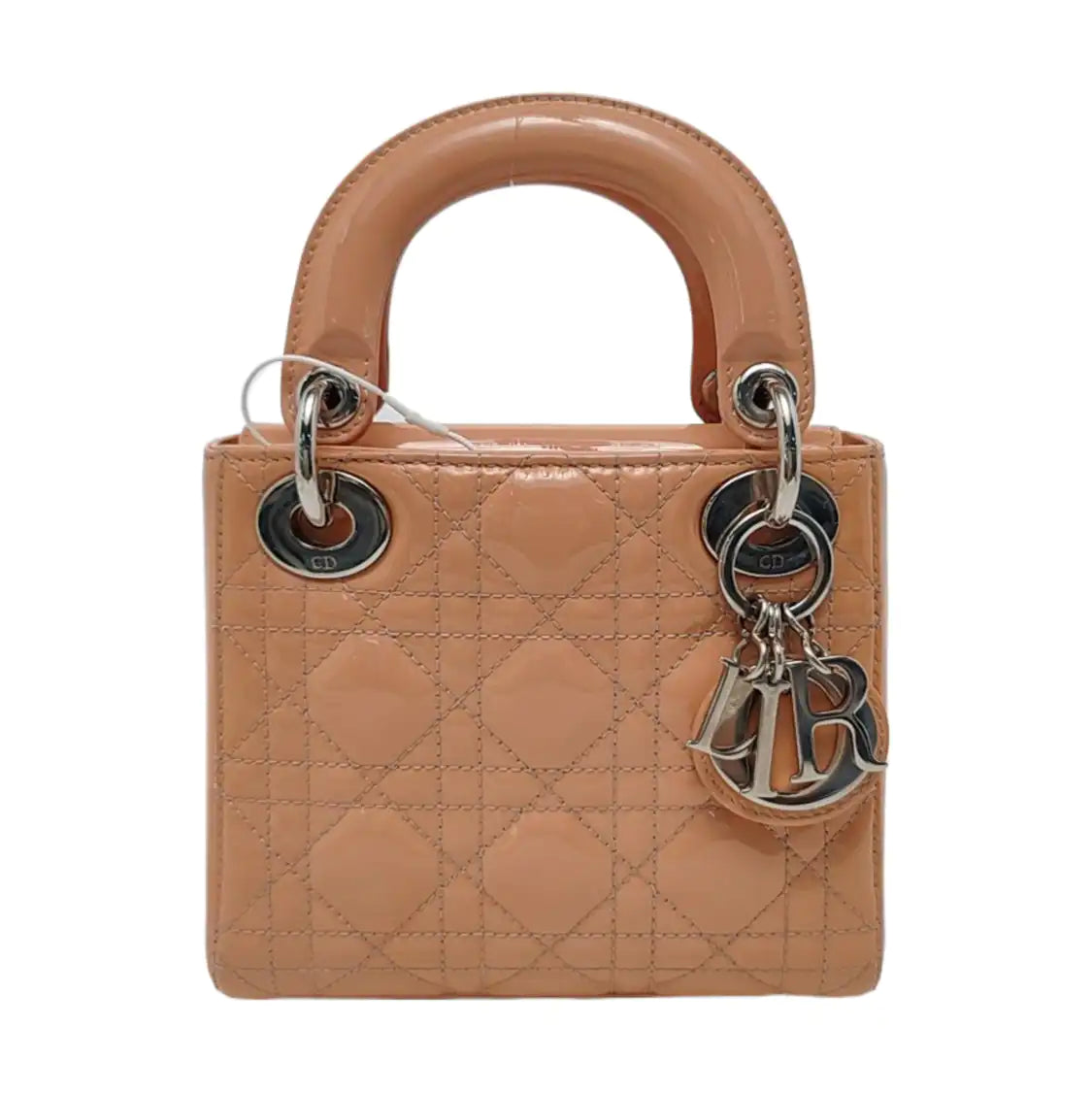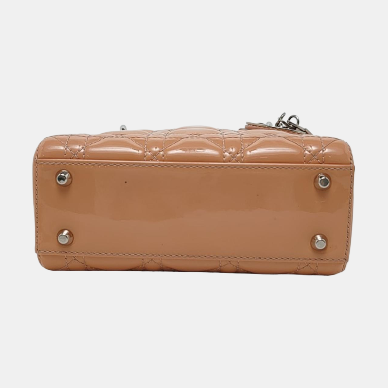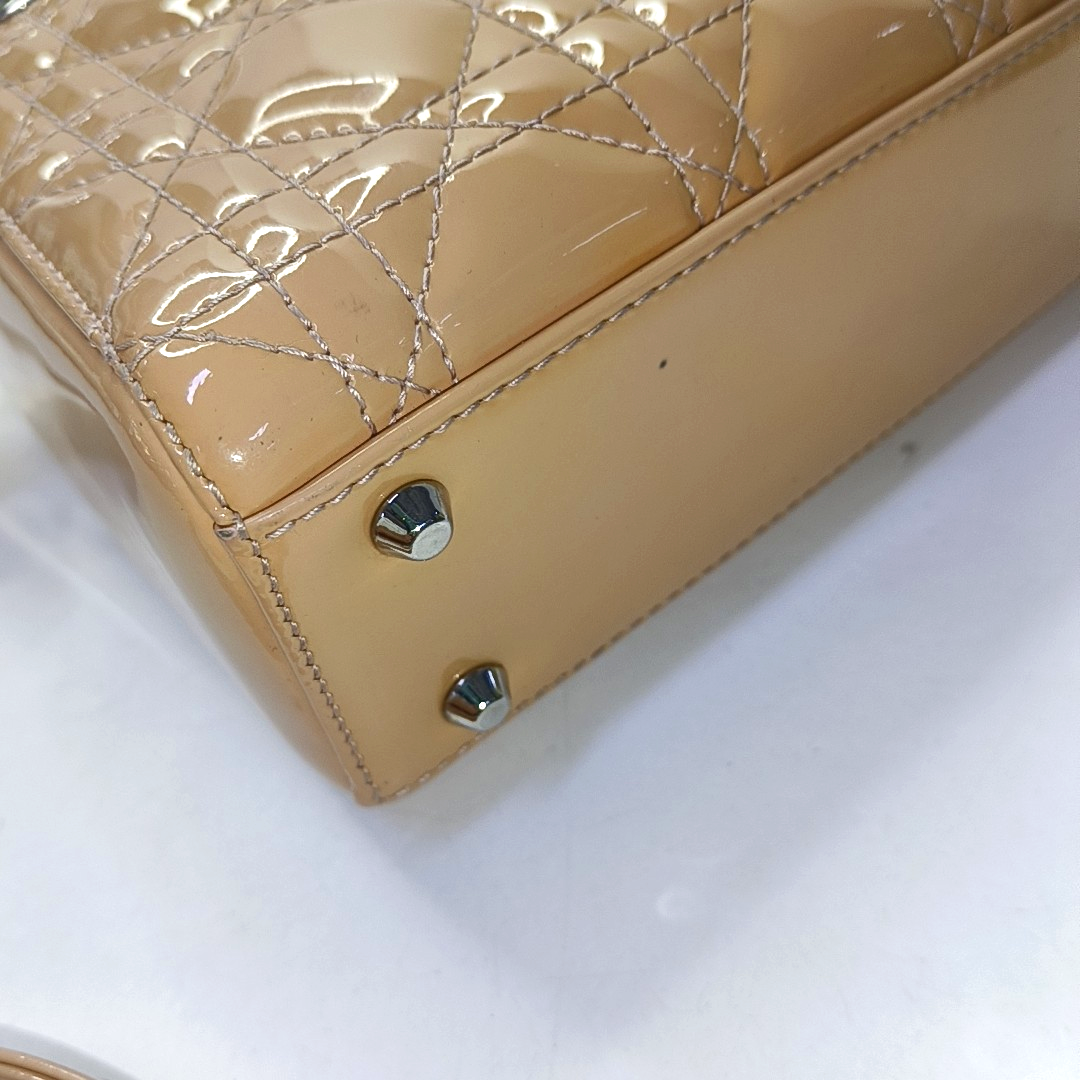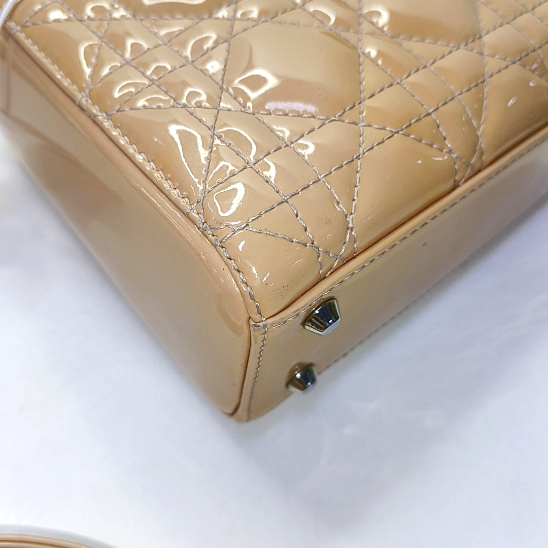 DIOR Lady Dior Mini Khaki Patent Leather Cannage Quilted Hobo Shoulder Bag Handbag Crossbody Bag 18 Clasp Silver Hardware Removable Shoulder Strap-(SKU)-961779565