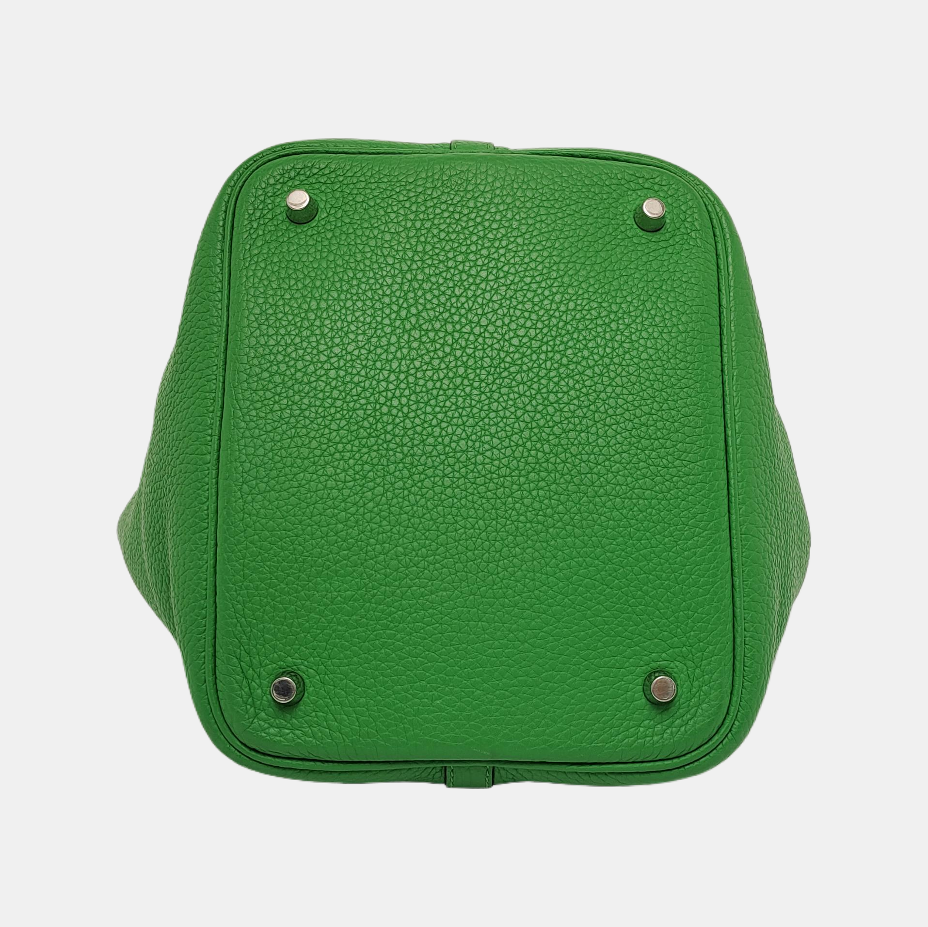 HERMÈS Picotin Lock 22 Bamboo Green Clemence Calfskin Basket Handbag with Detachable Strap, Silver Hardware, 🅁-(SKU)-940900076