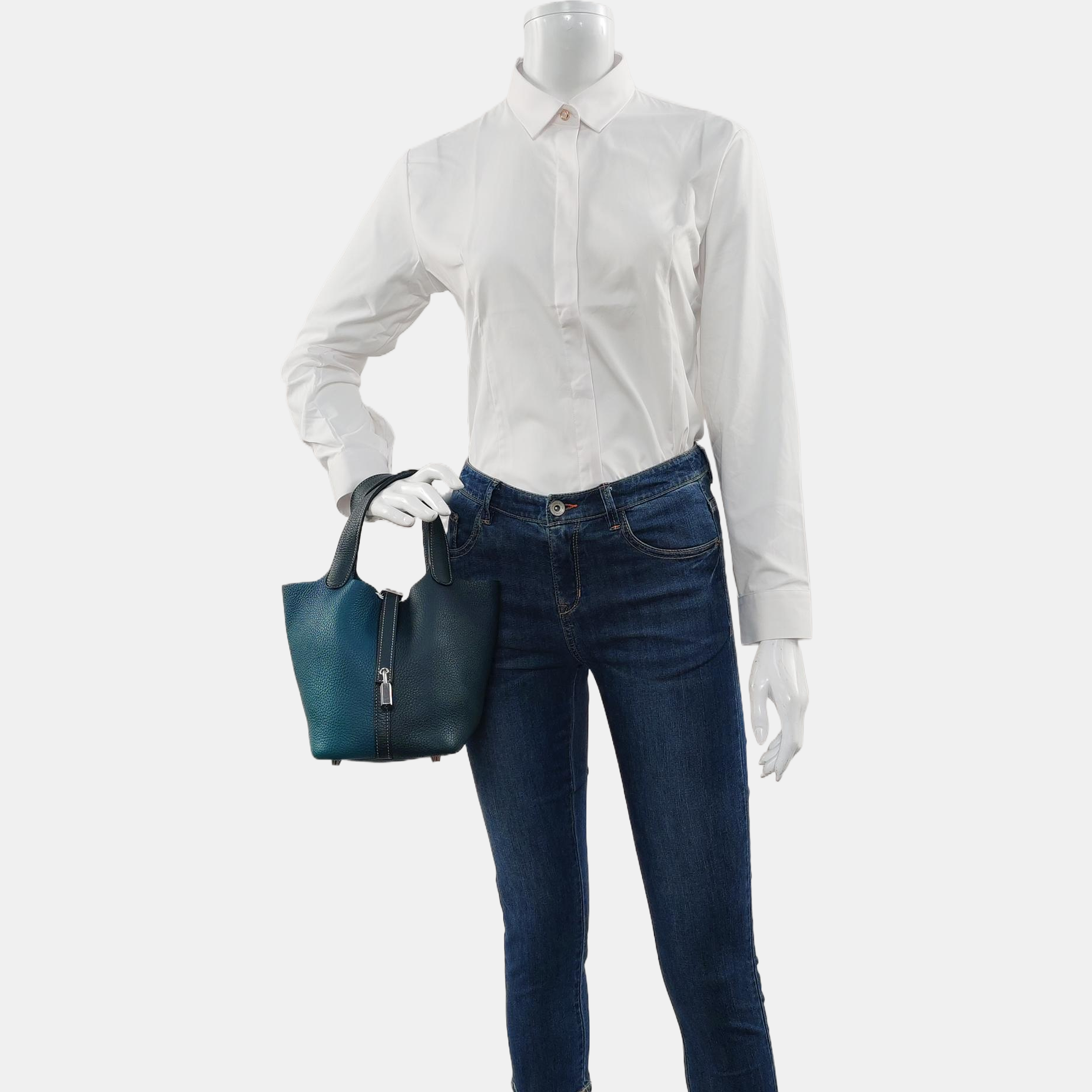 HERMÈS Picotin Lock 18 Patchwork Clemence Leather Basket Shoulder Bag with Silver Hardware and Y Stamp-(SKU)-963232585