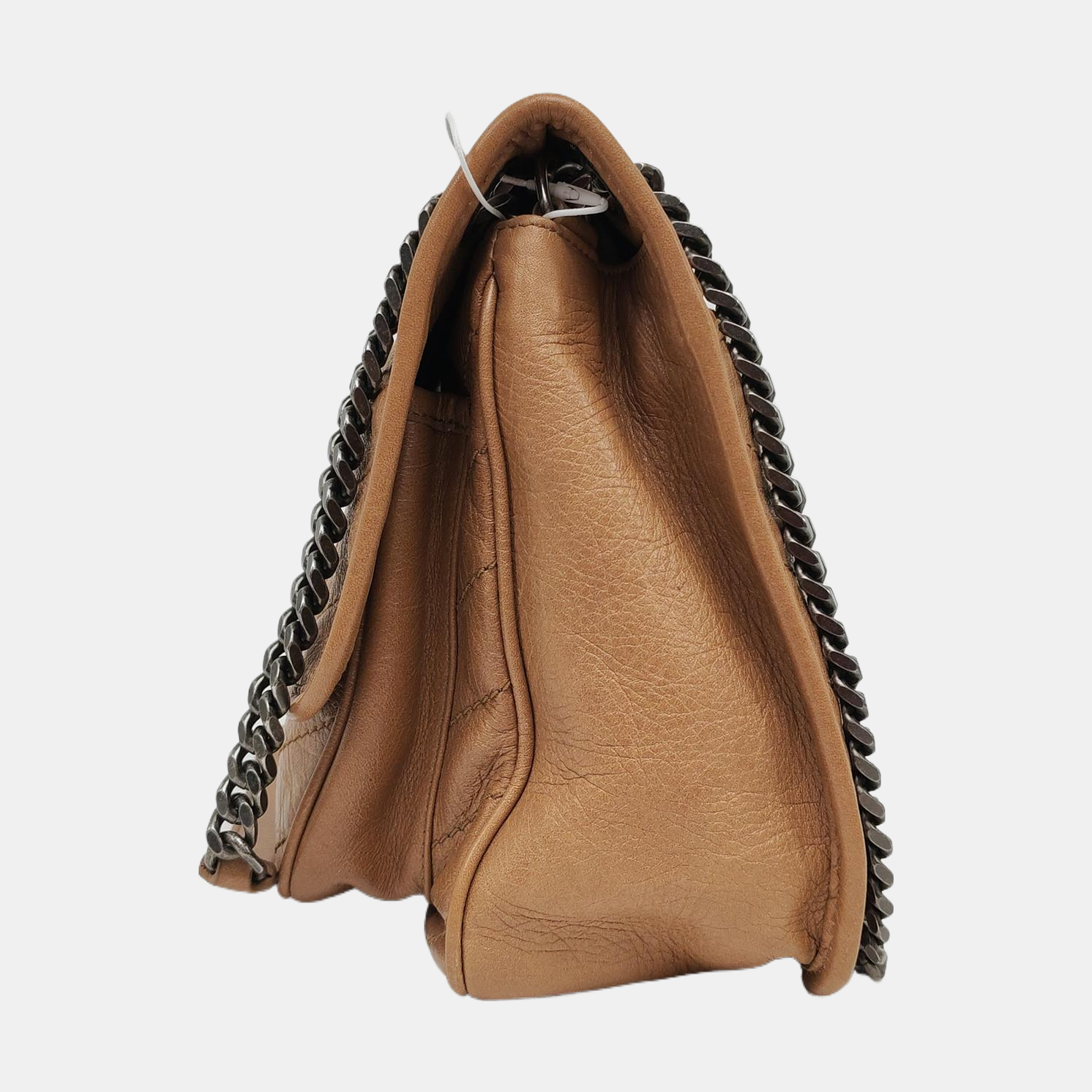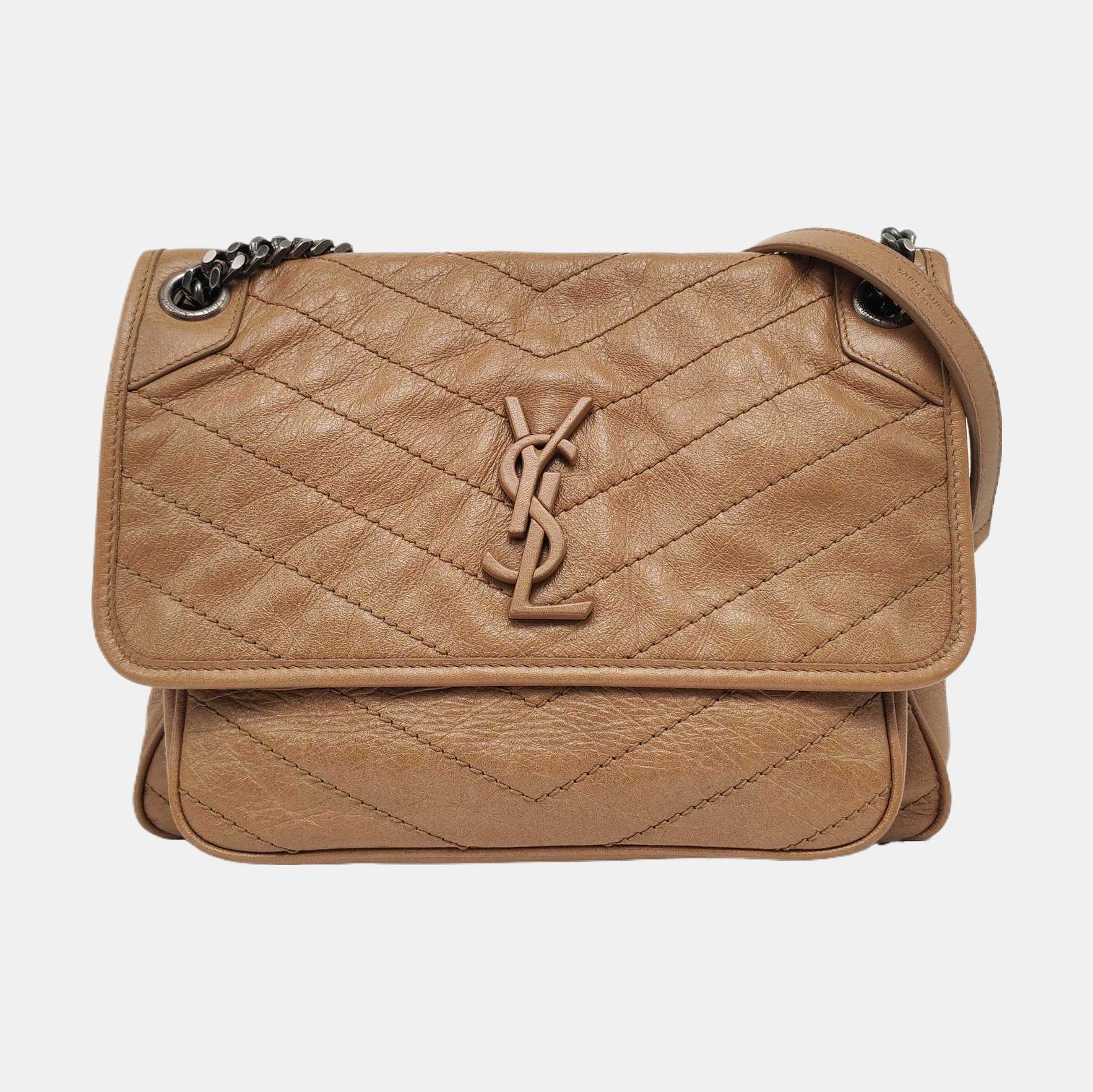 YSL NIKI Medium Brown Leather Single-Shoulder Bag with Silver Hardware-(SKU)-966916847
