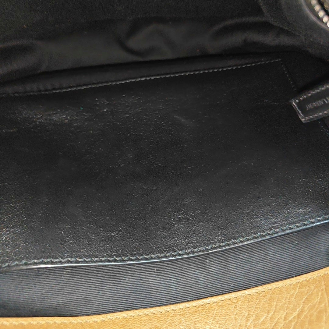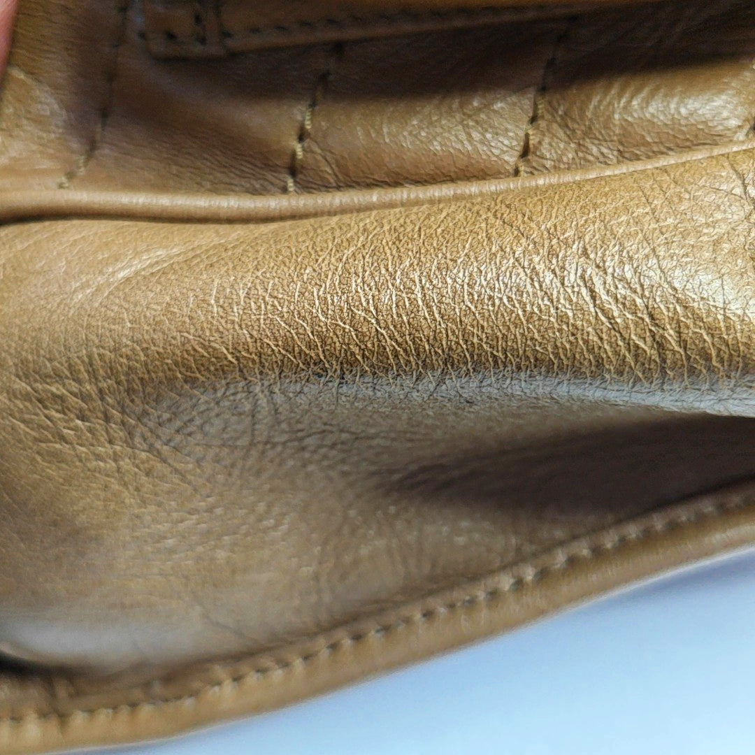 Detailed description: Interior、Slight stains on the side panel,Interior、Edge wrapping around the opening、Hardware buckle with moderate scratches、Slight stains on the hardware,Body of the bag、Slight creases on the side panel,Moderate scratches on the interior,Moderate creases on the inside of the flip cover