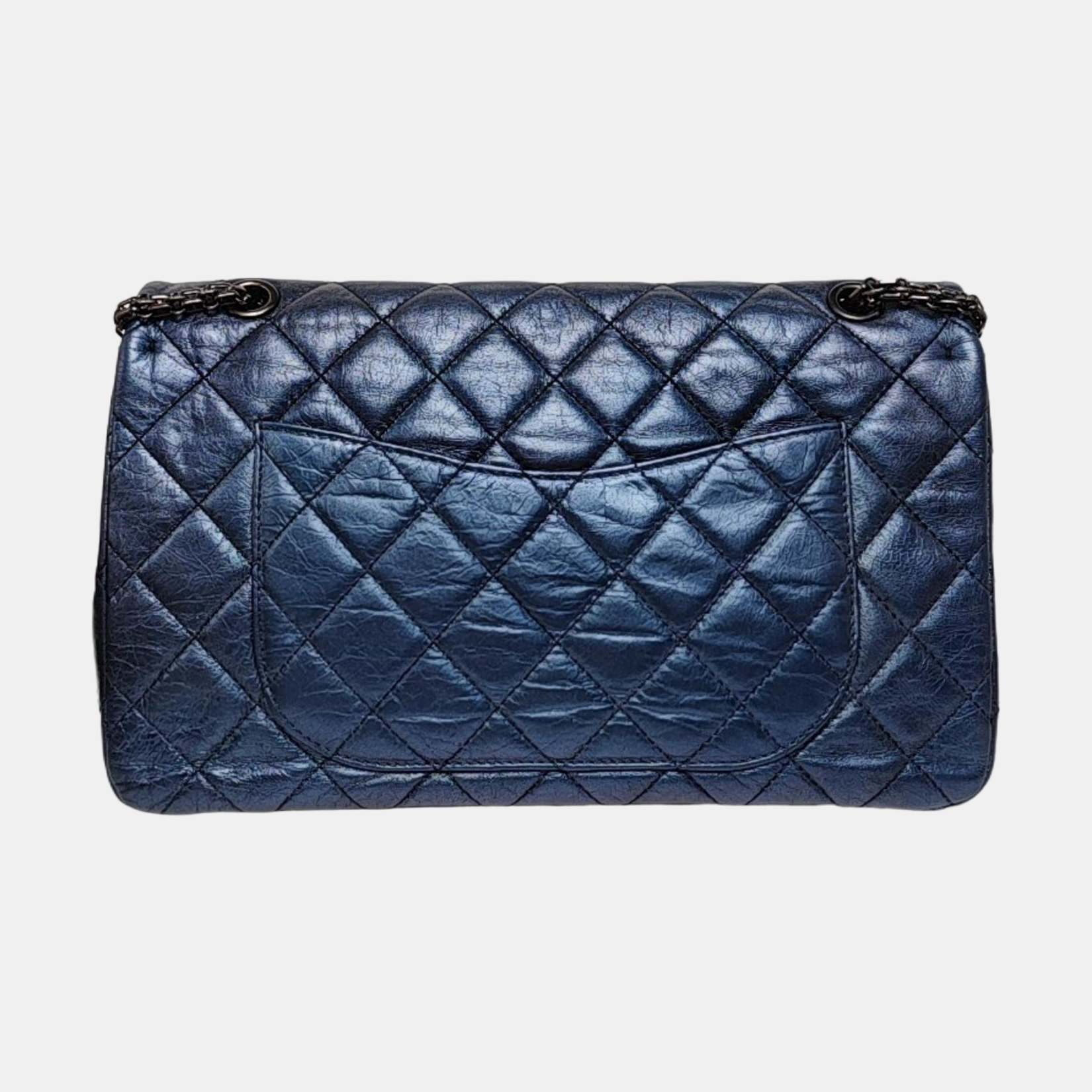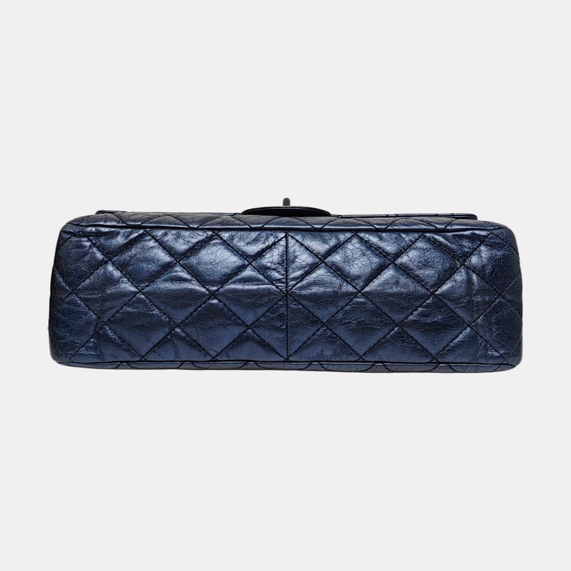 CHANEL 2.55 Maxi Super Large Blue Lamb Leather Quilted Single Shoulder Bag Crossbody Bag Black Hardware 12 Clasp-(SKU)-966137551