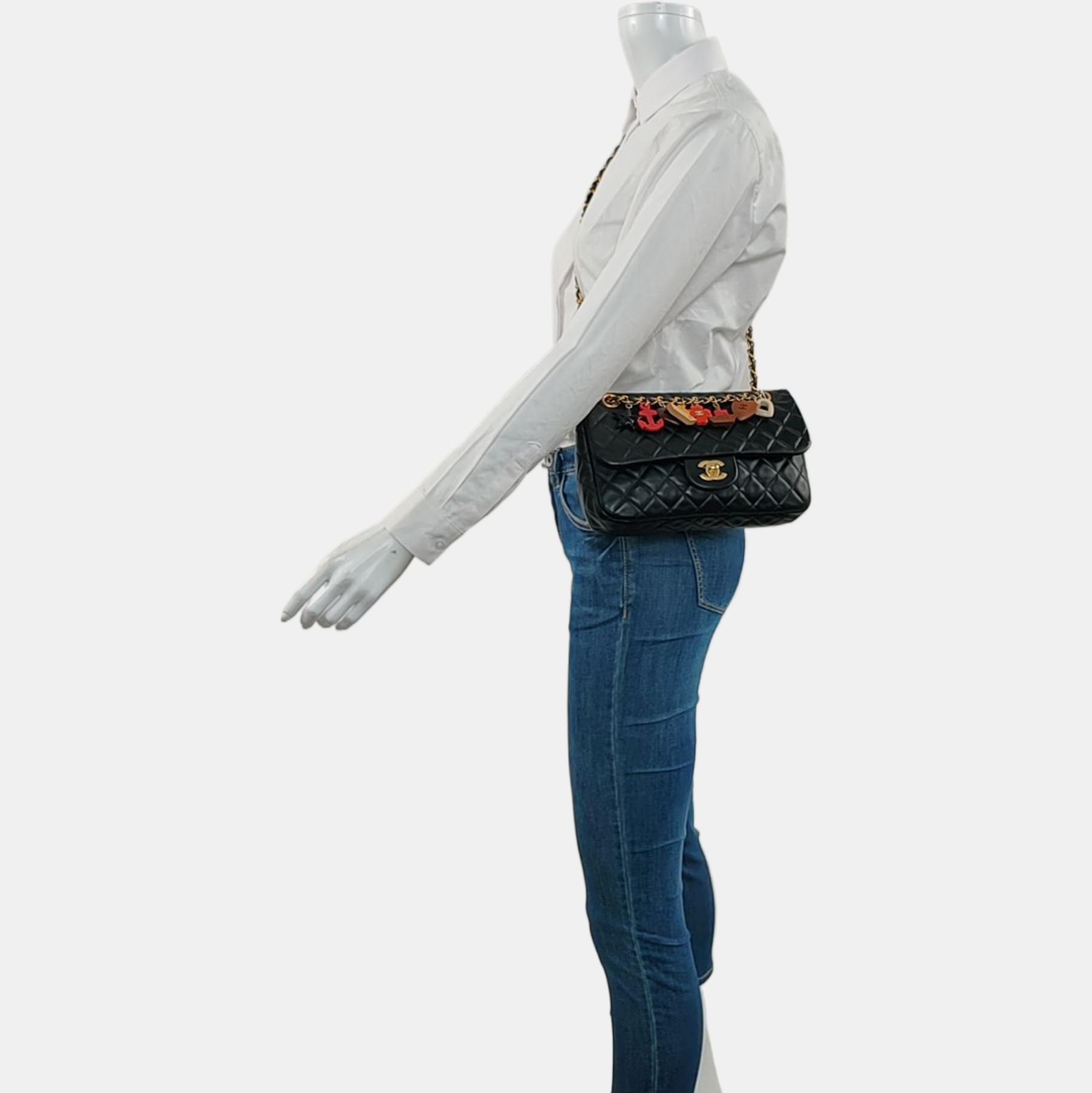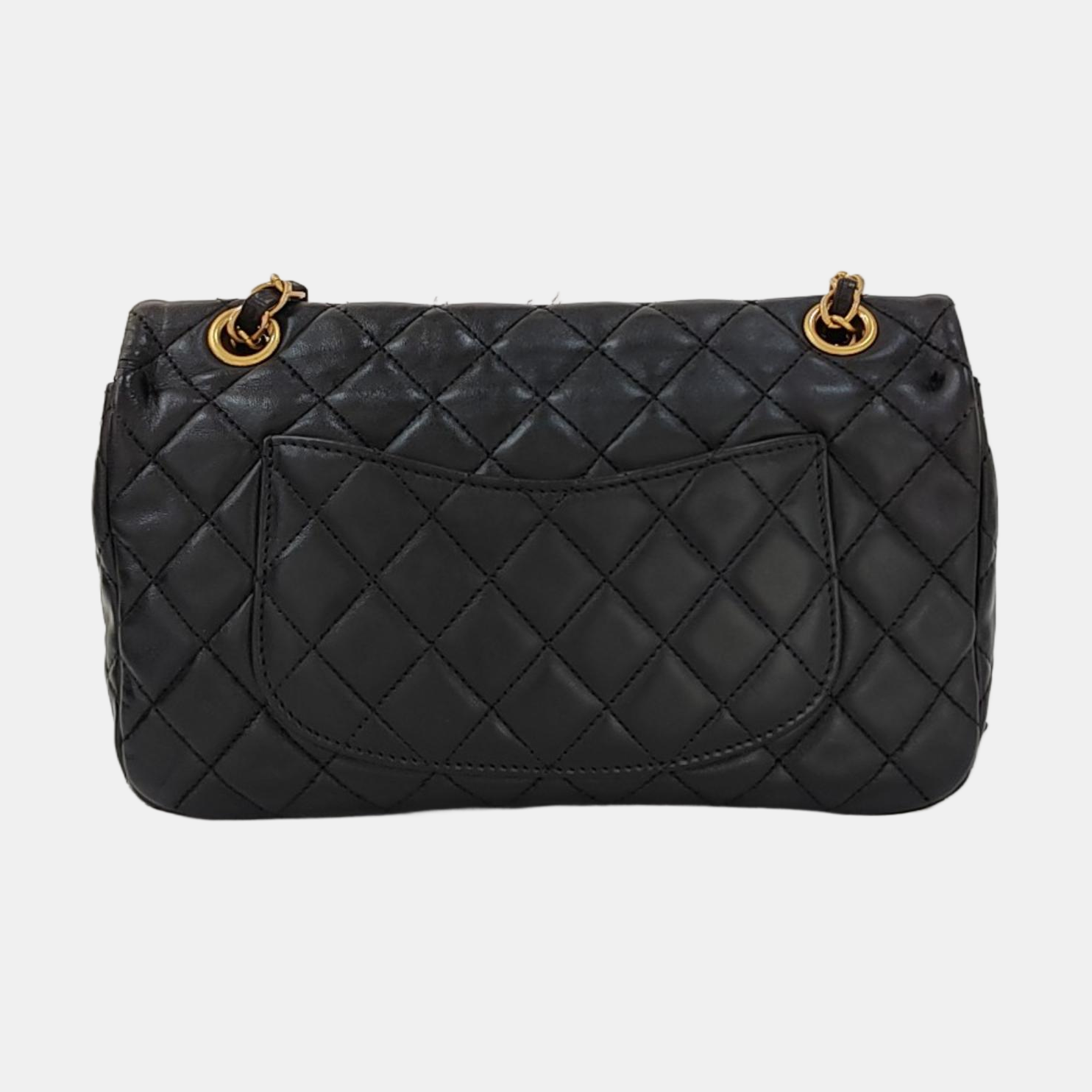 CHANEL CLASSIC FLAP Medium-sized Black Lamb Skin Quilted Monogram Crossbody Bag Shoulder Bag 14 Clasp Golden Hardware-(SKU)-970125133
