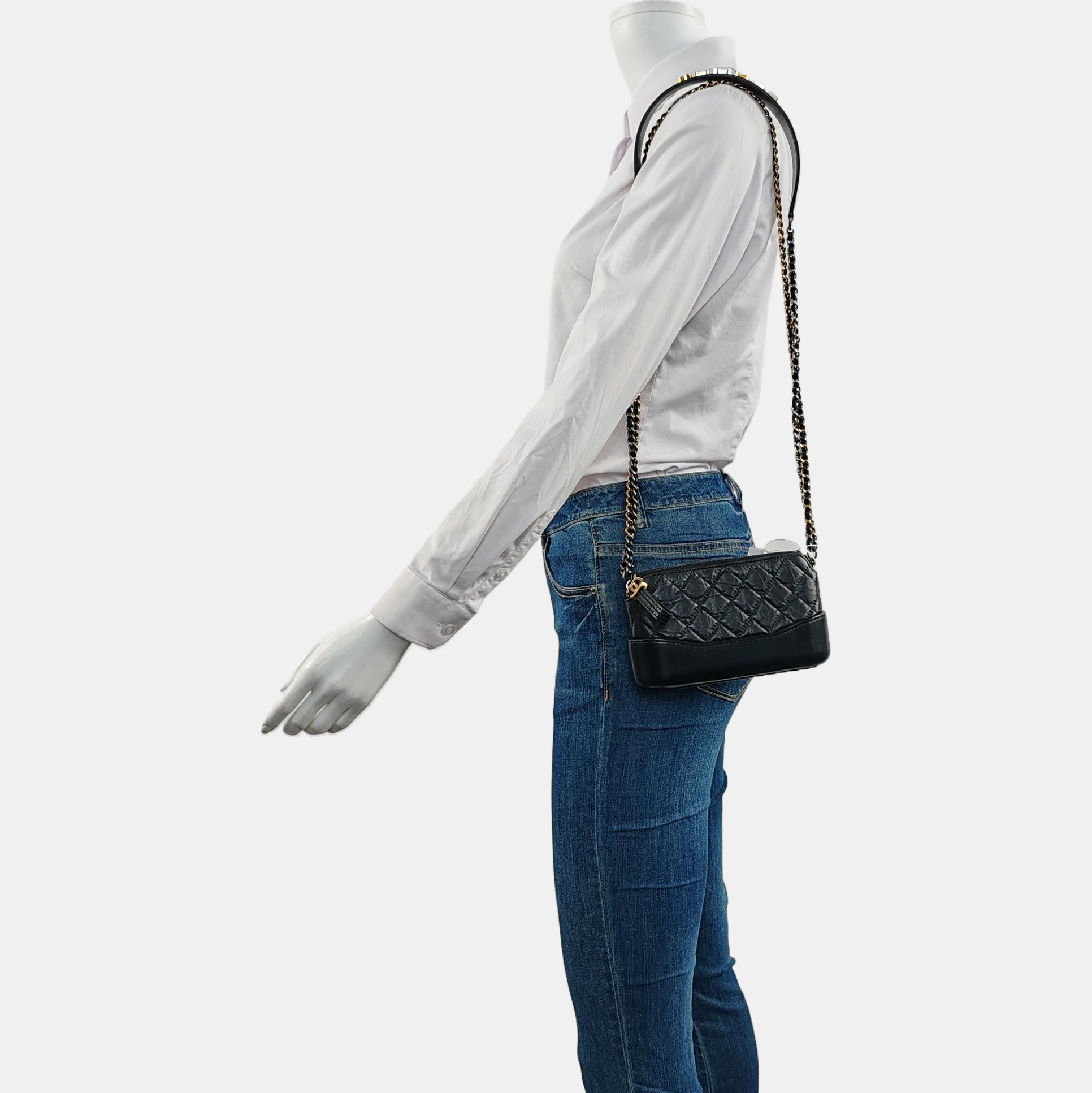 CHANEL GABRIELLE Mini size black leather quilted diamond single shoulder bag handbag golden silver hardware 29 opening detachable shoulder strap-(SKU)-962181191
