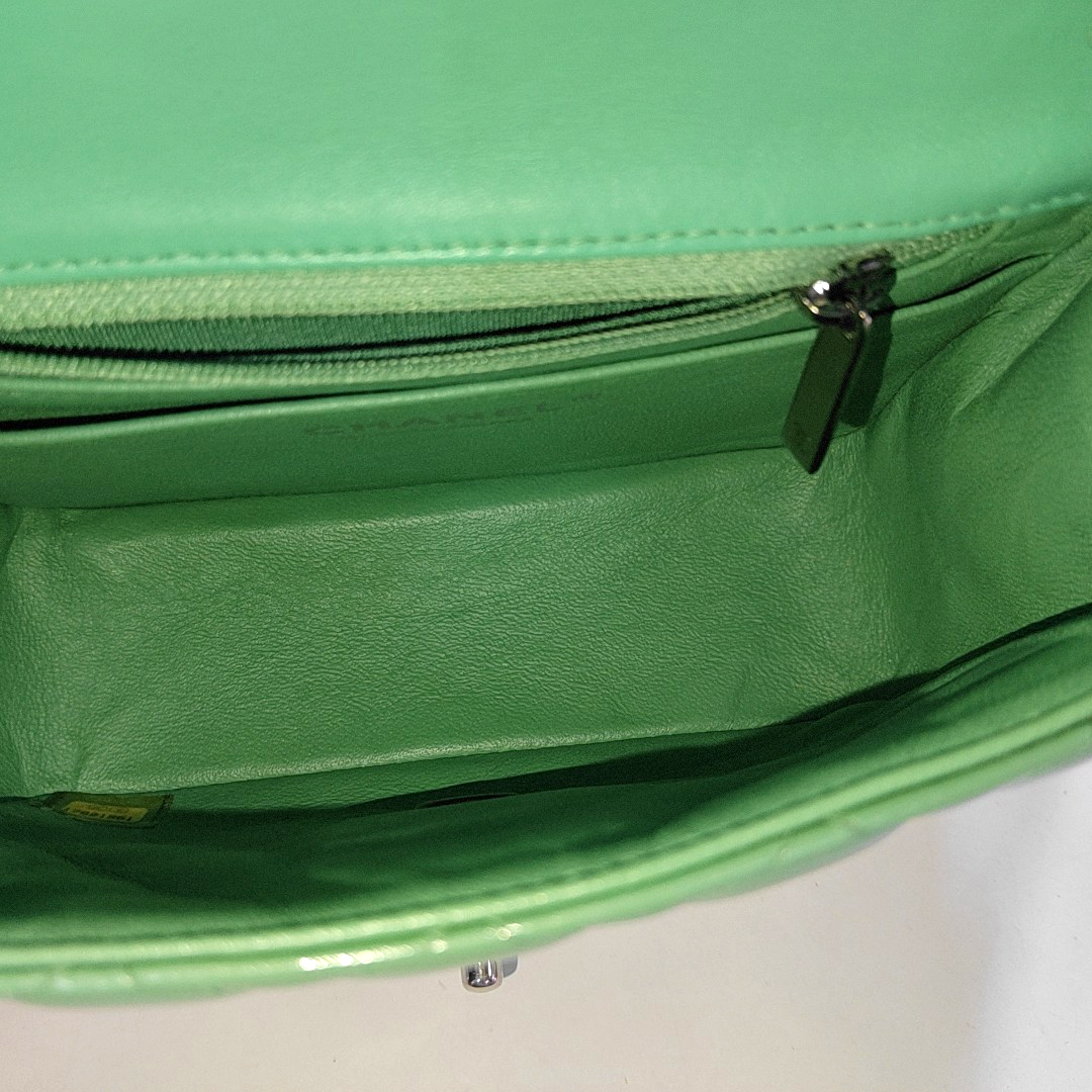 CHANEL CLASSIC FLAP Mini Green Patent Leather Diamond Quilted Square Crossbody Bag Shoulder Bag Silver Hardware 17 Opening-(SKU)-961809465