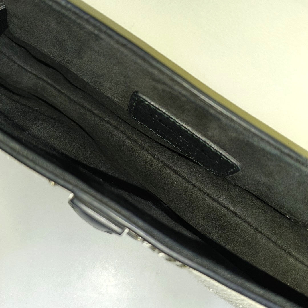 DIOR Saddle Mini Multicolor Calfskin Embroidered Saddle Bag Handbag Black Hardware-(SKU)-968867584