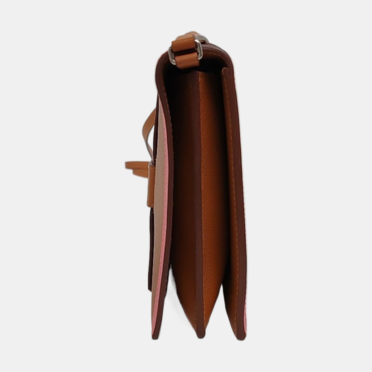 HERMÈS H Passant Gold Brown Evercolor Calfskin Quilted Crossbody Bag with Silver Hardware, Y, Detachable Strap-(SKU)-963487827