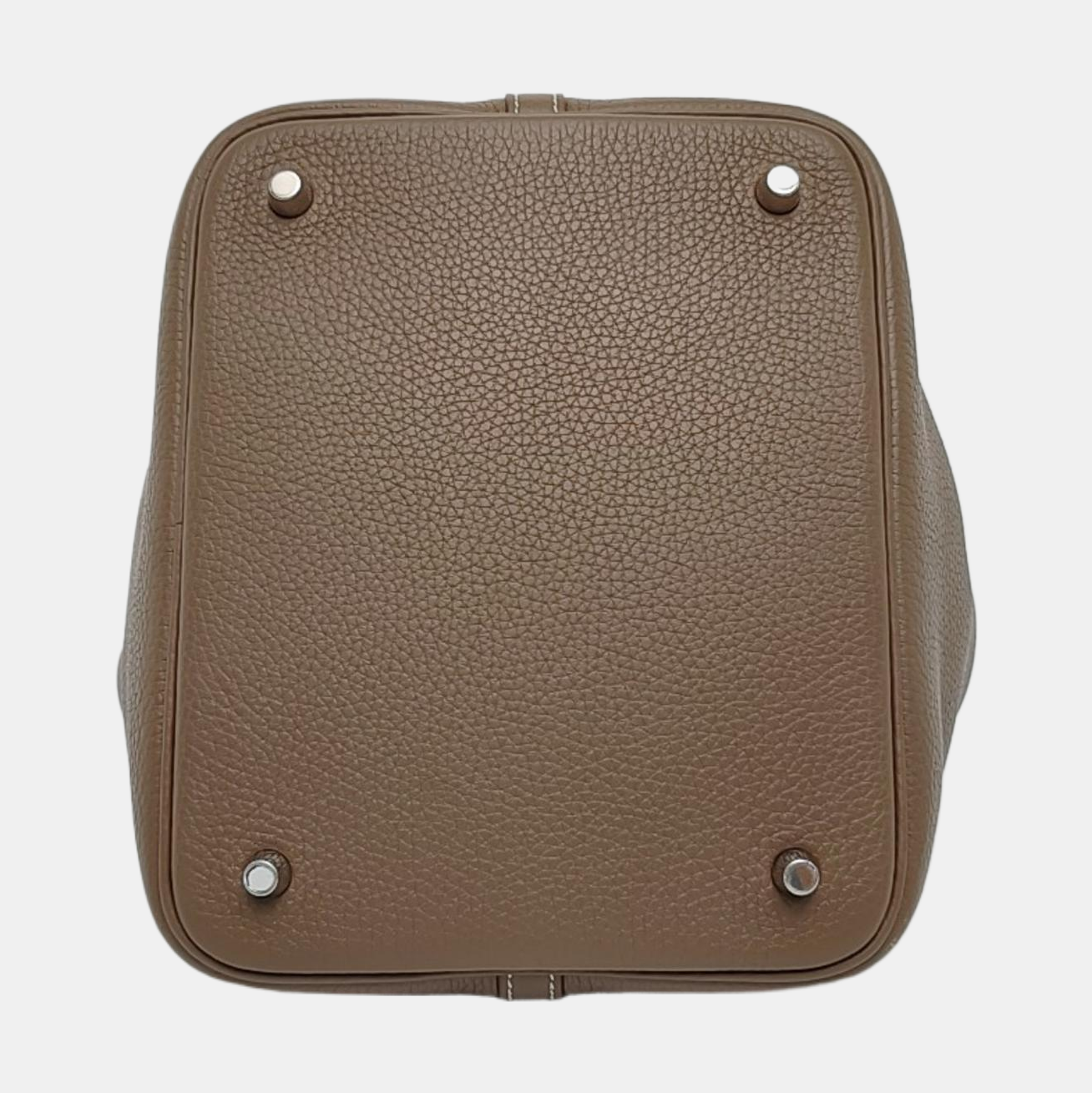 HERMÈS Picotin Lock 22 Elephant Grey Clemence Leather Market Basket Tote Bag with Silver Hardware Z-(SKU)-965324003