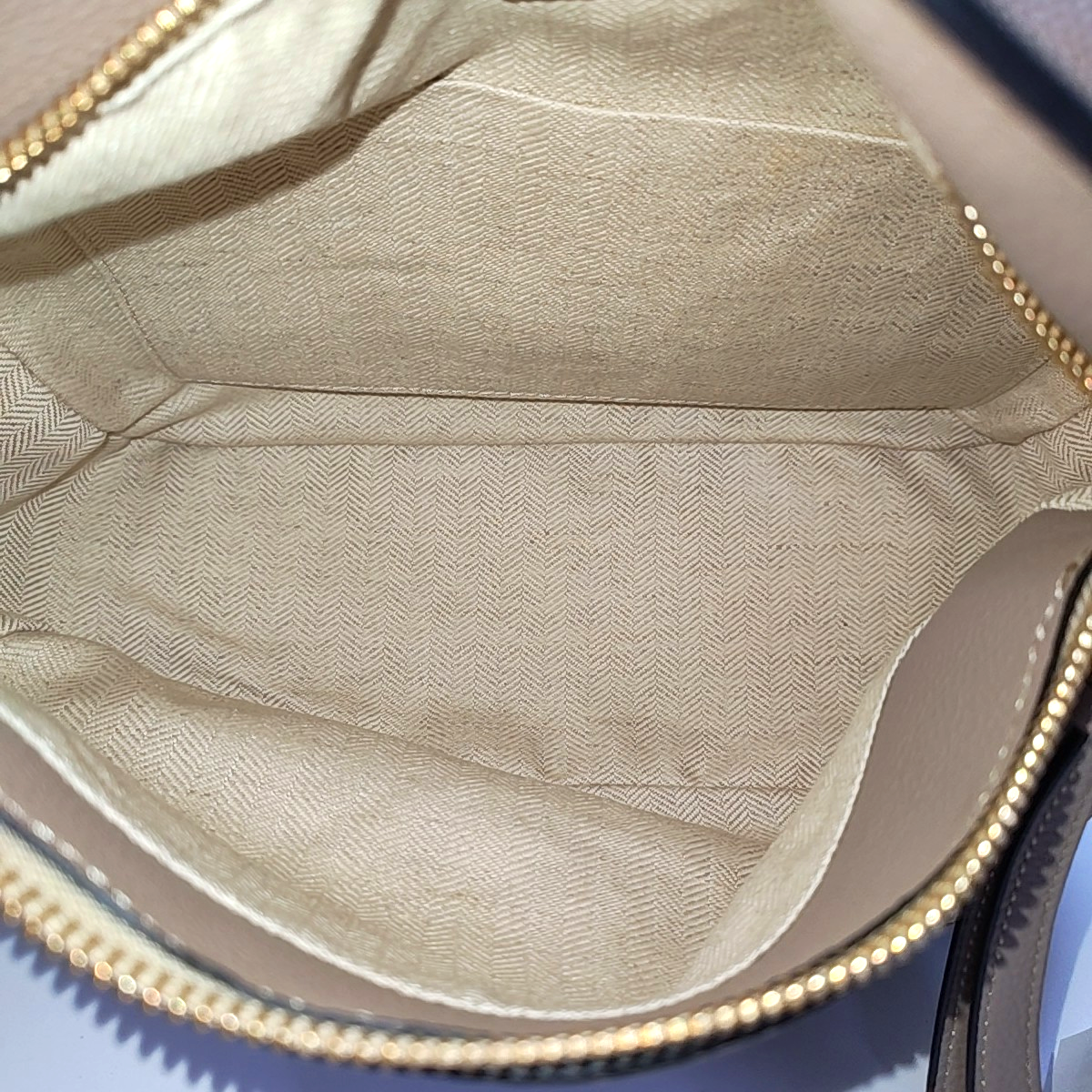 Detailed description: Zipper、Slight stains on the hardware,Slight indentation on the bottom