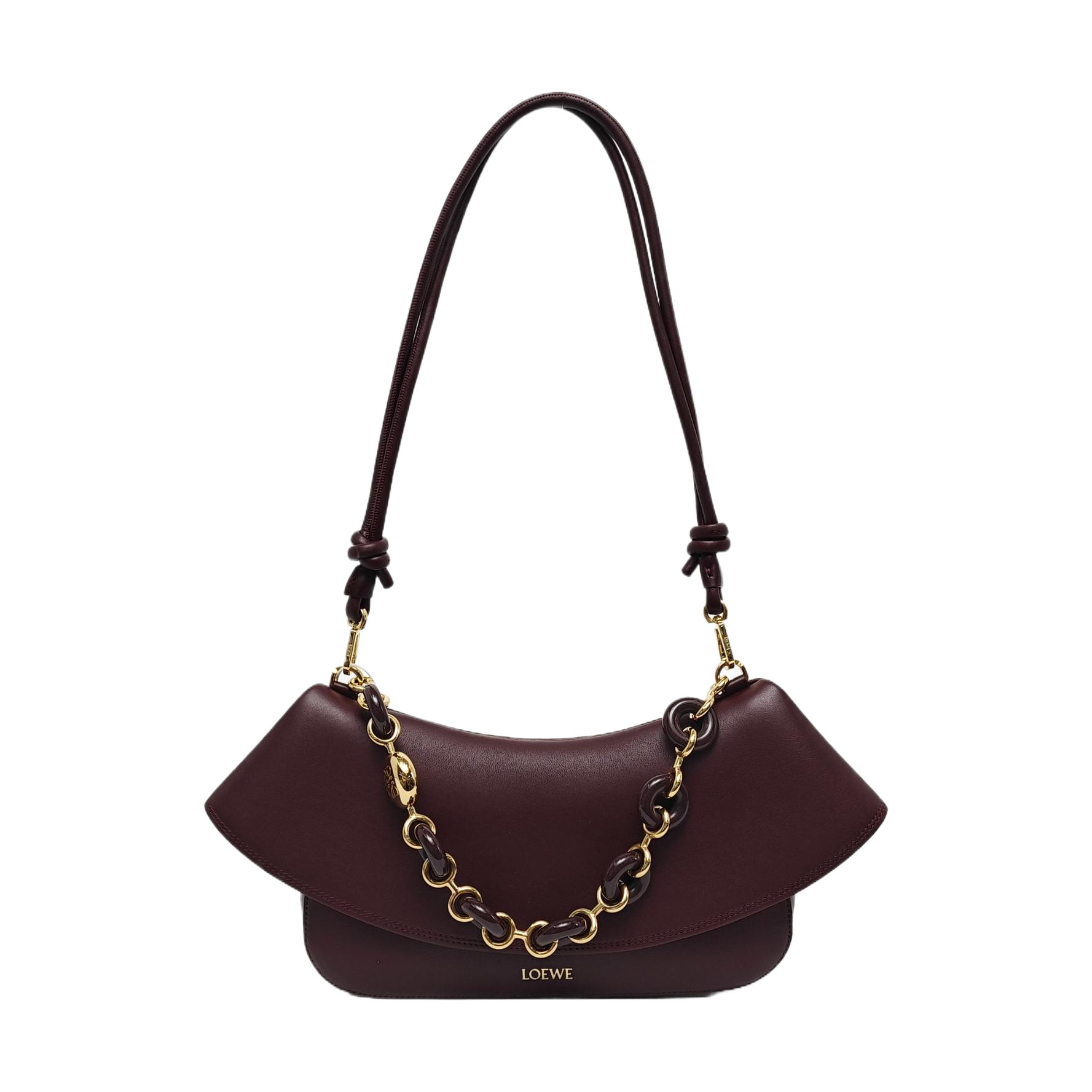 LOEWE Ola Medium Size Burgundy Calf Leather Single Shoulder Bag Golden Hardware Detachable Strap-(SKU)-967585188