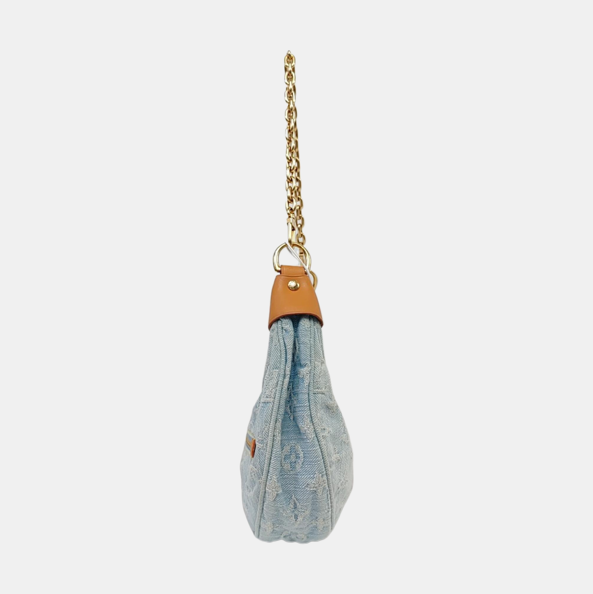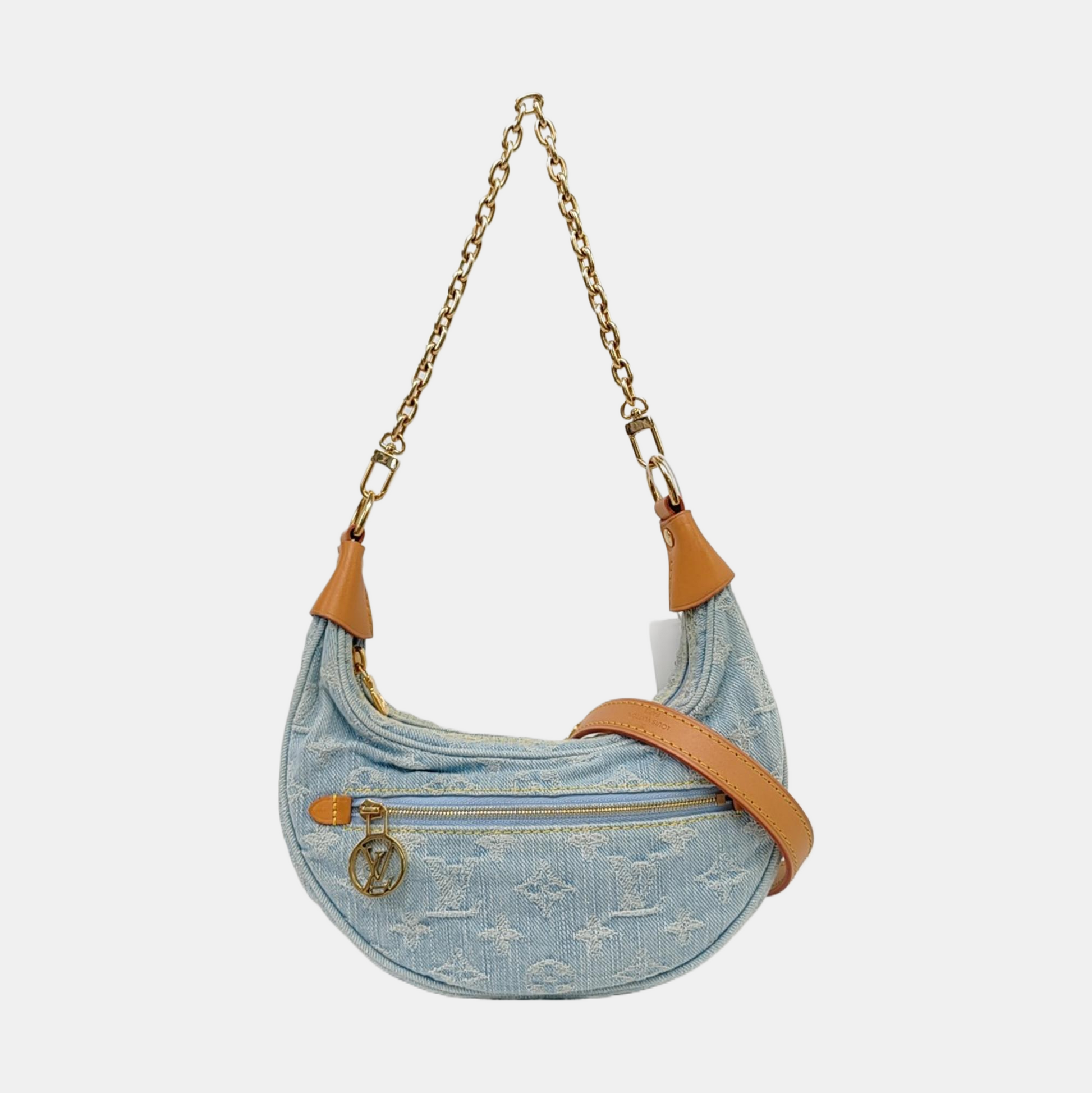 LOUIS VUITTON LOOP Light Blue Denim Monogram Embroidered Crescent Bag Crossbody Shoulder Bag Gold Hardware 2 Removable Straps-(SKU)-961361306