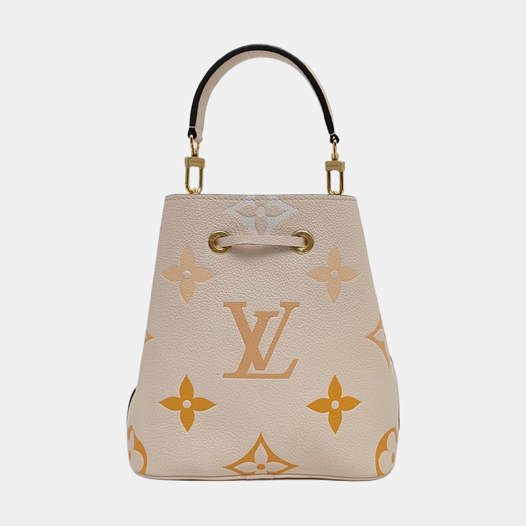LOUIS VUITTON NÉONOÉ BB Beige Calfskin Monogram Embossed Bucket Bag Crossbody Bag Shoulder Bag Tote Bag Gold Hardware 2 Removable Straps-(SKU)-969076231
