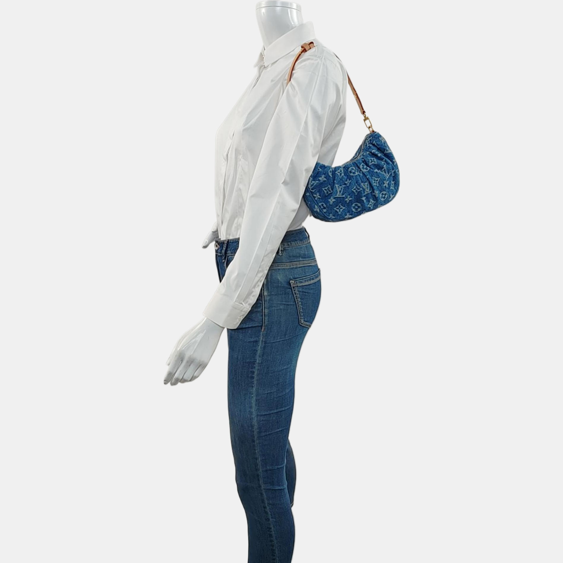 LOUIS VUITTON POCHETTE VALLEY Blue Denim Monogram Jacquard Handbag Shoulder Bag Gold Hardware Detachable Strap-(SKU)-969614948