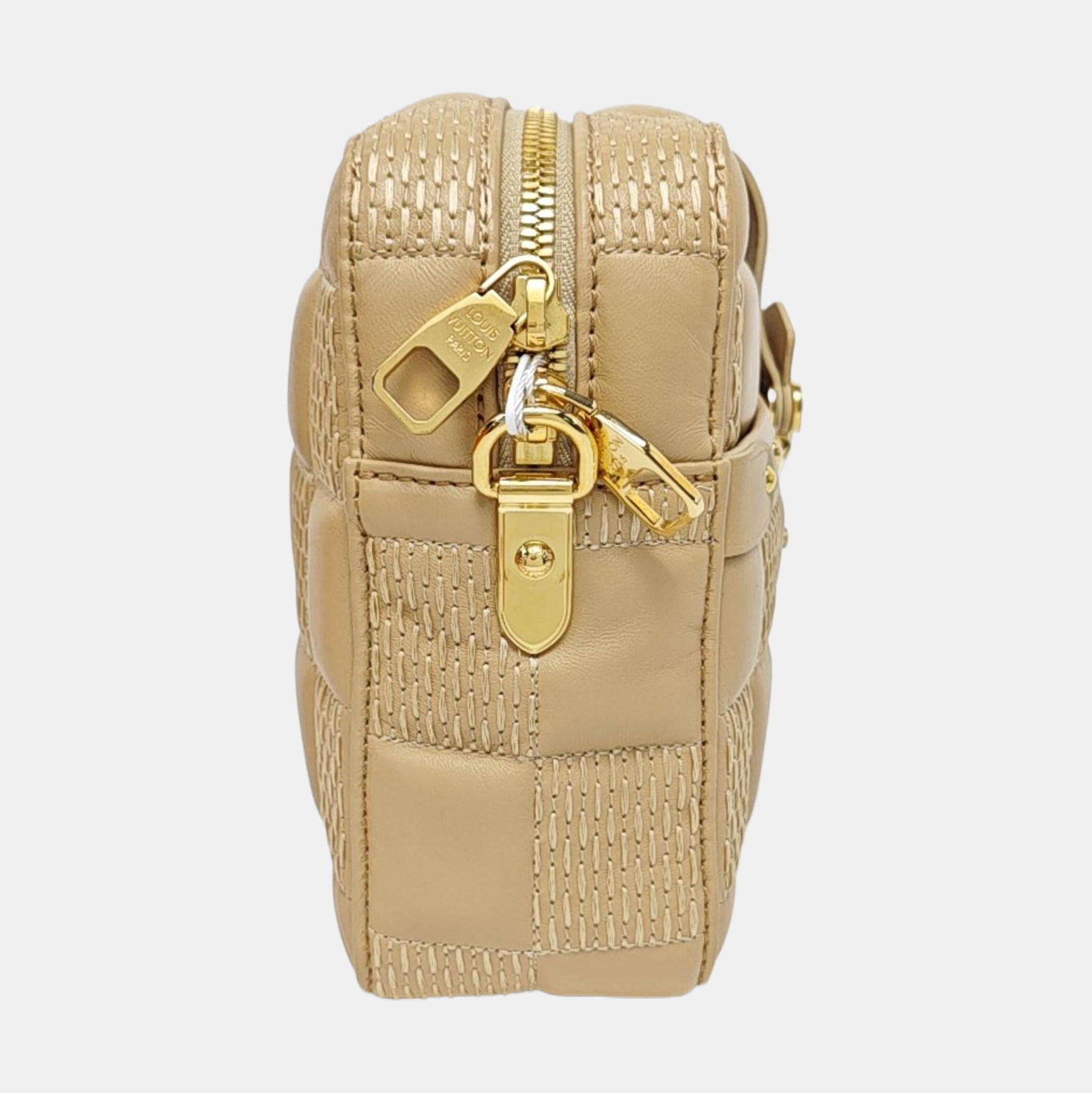LOUIS VUITTON TROCA Medium size khaki leather stud camera bag crossbody bag shoulder bag handbag golden hardware 2 detachable shoulder straps-(SKU)-971017692