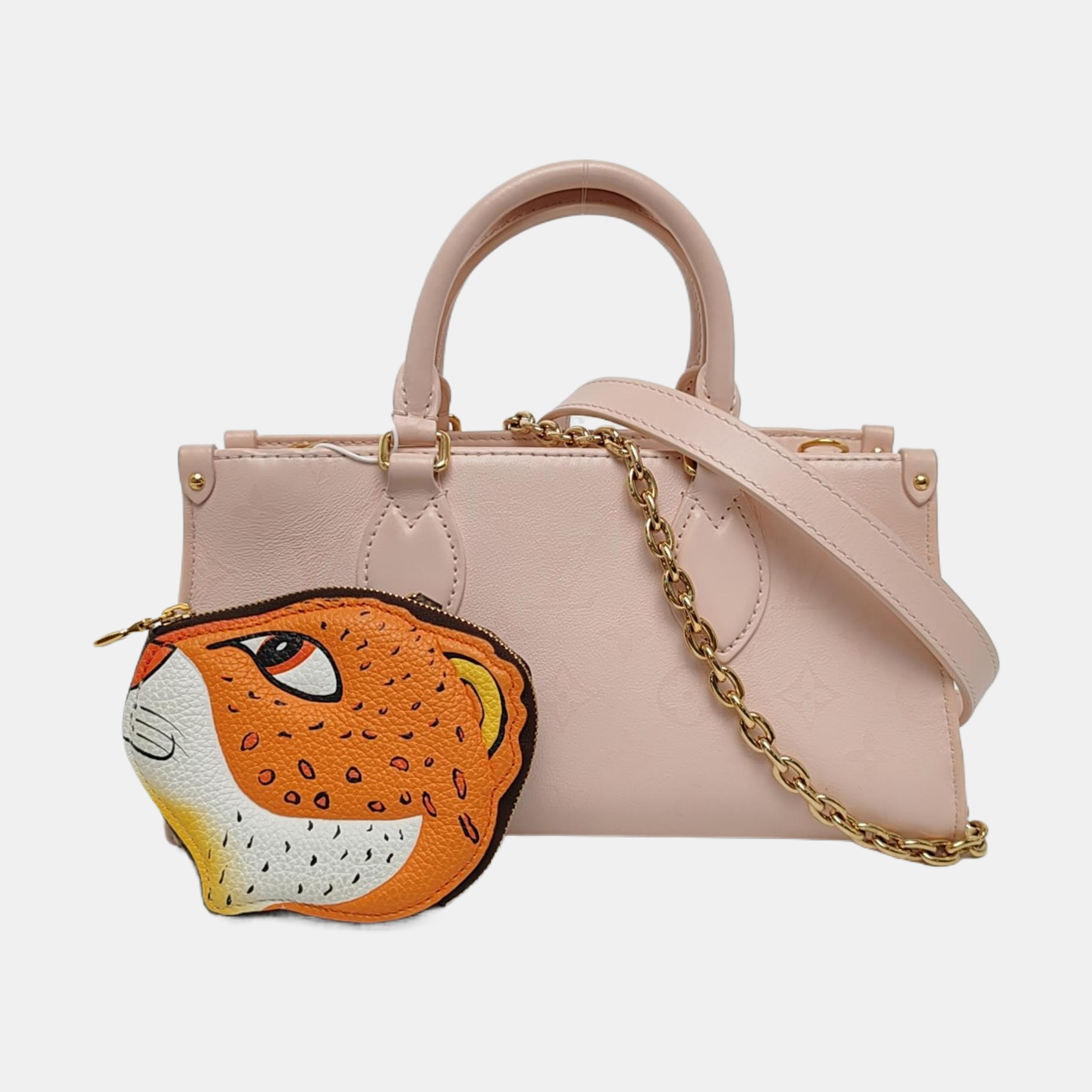 LOUIS VUITTON ONTHEGO small size pink leather Monogram shoulder bag with gold hardware and 2 detachable straps-(SKU)-968753925
