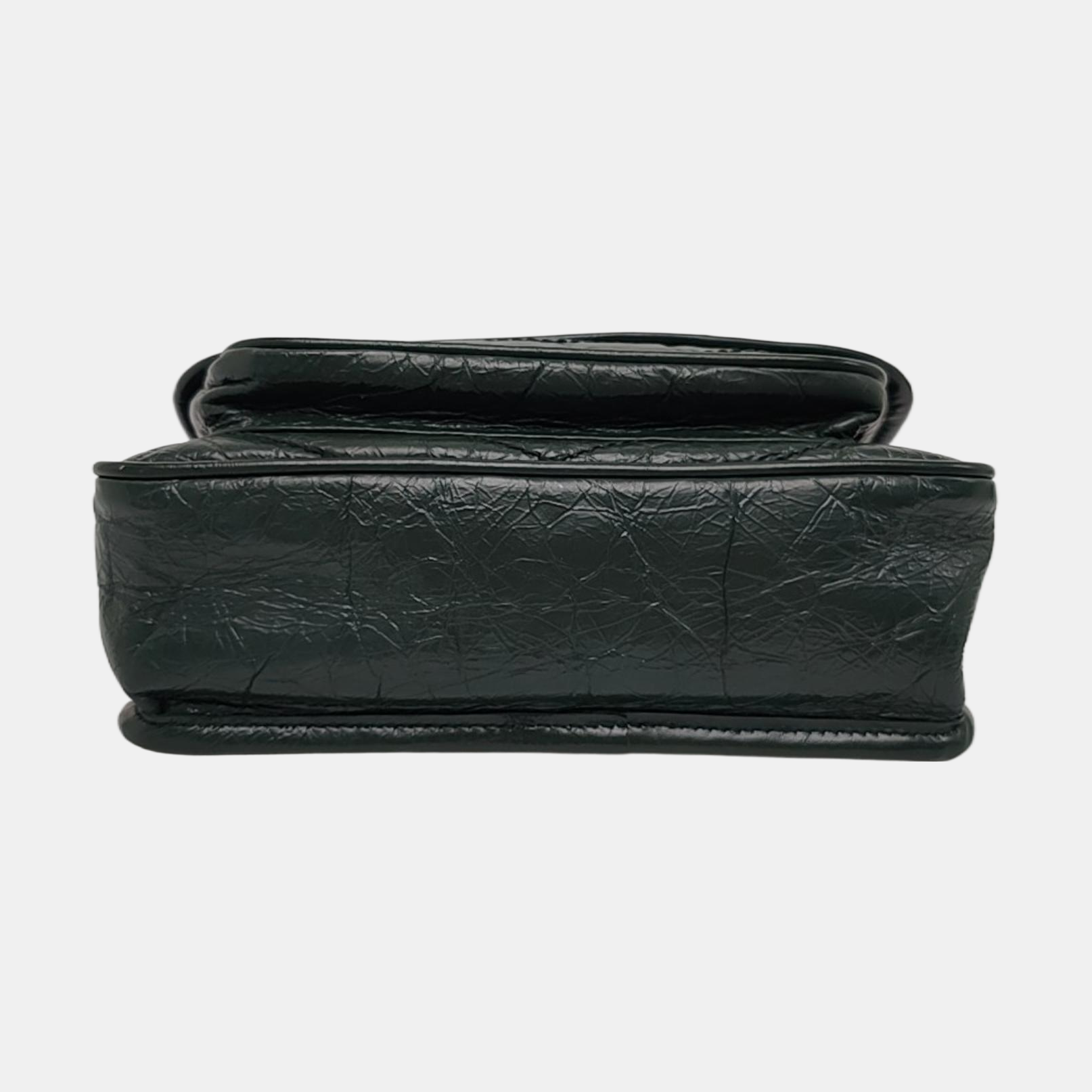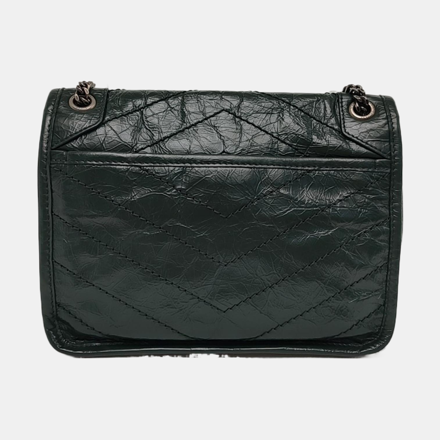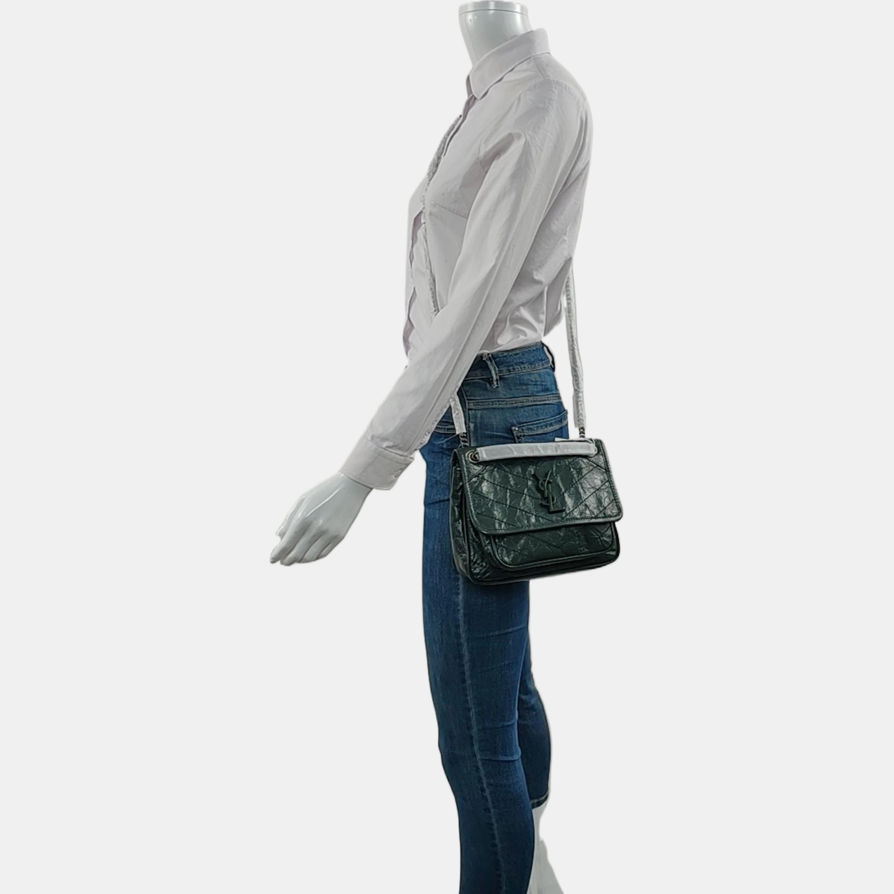 YSL NIKI Small Dark Green Leather Quilted V Pattern Shoulder Bag and Crossbody with Detachable Strap, Black Rhodium-Plated Hardware-(SKU)-965294545