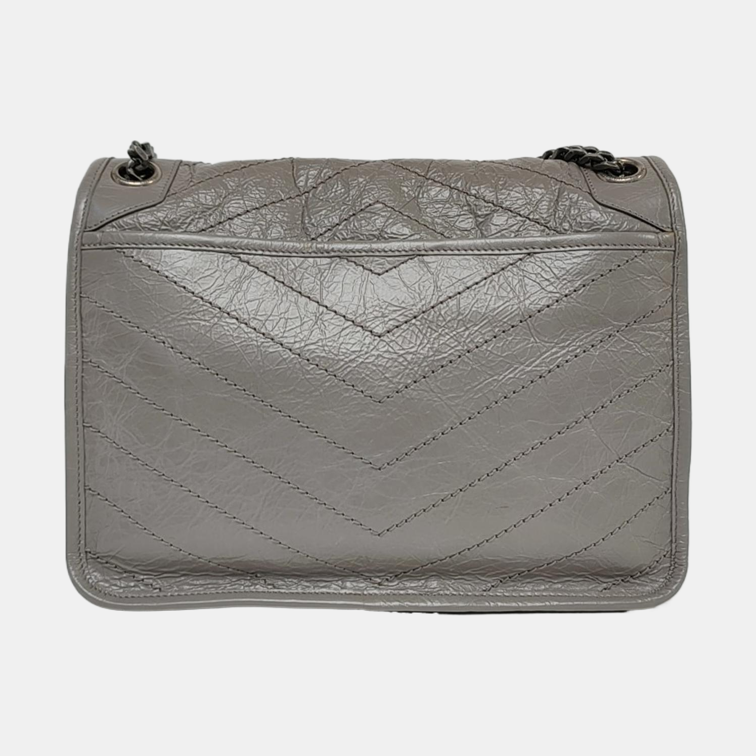 YSL NIKI Medium Grey Leather Quilted V-Grain Single Shoulder Bag Palladium Hardware-(SKU)-964831579