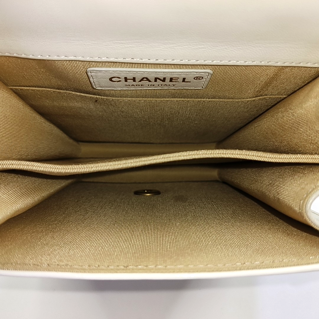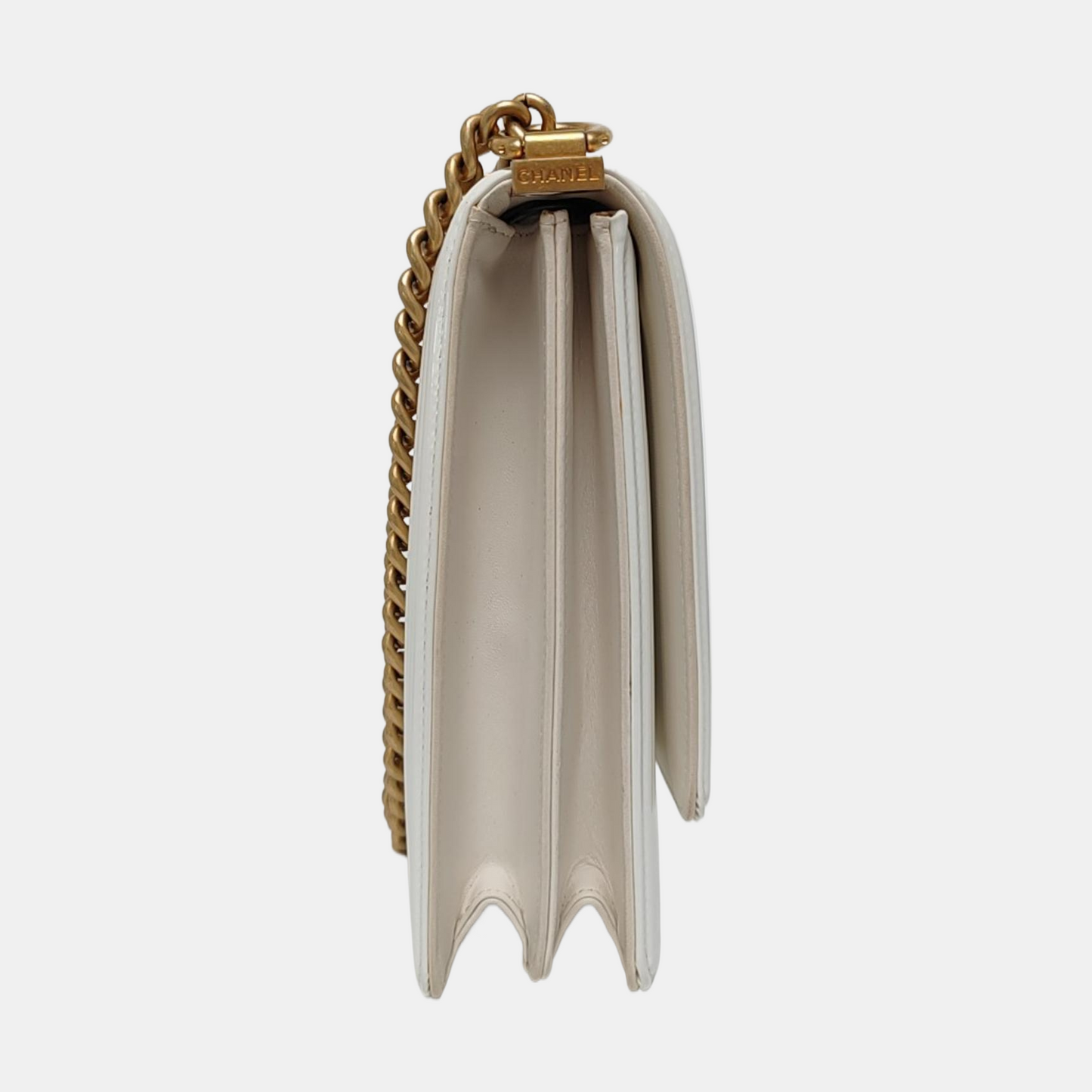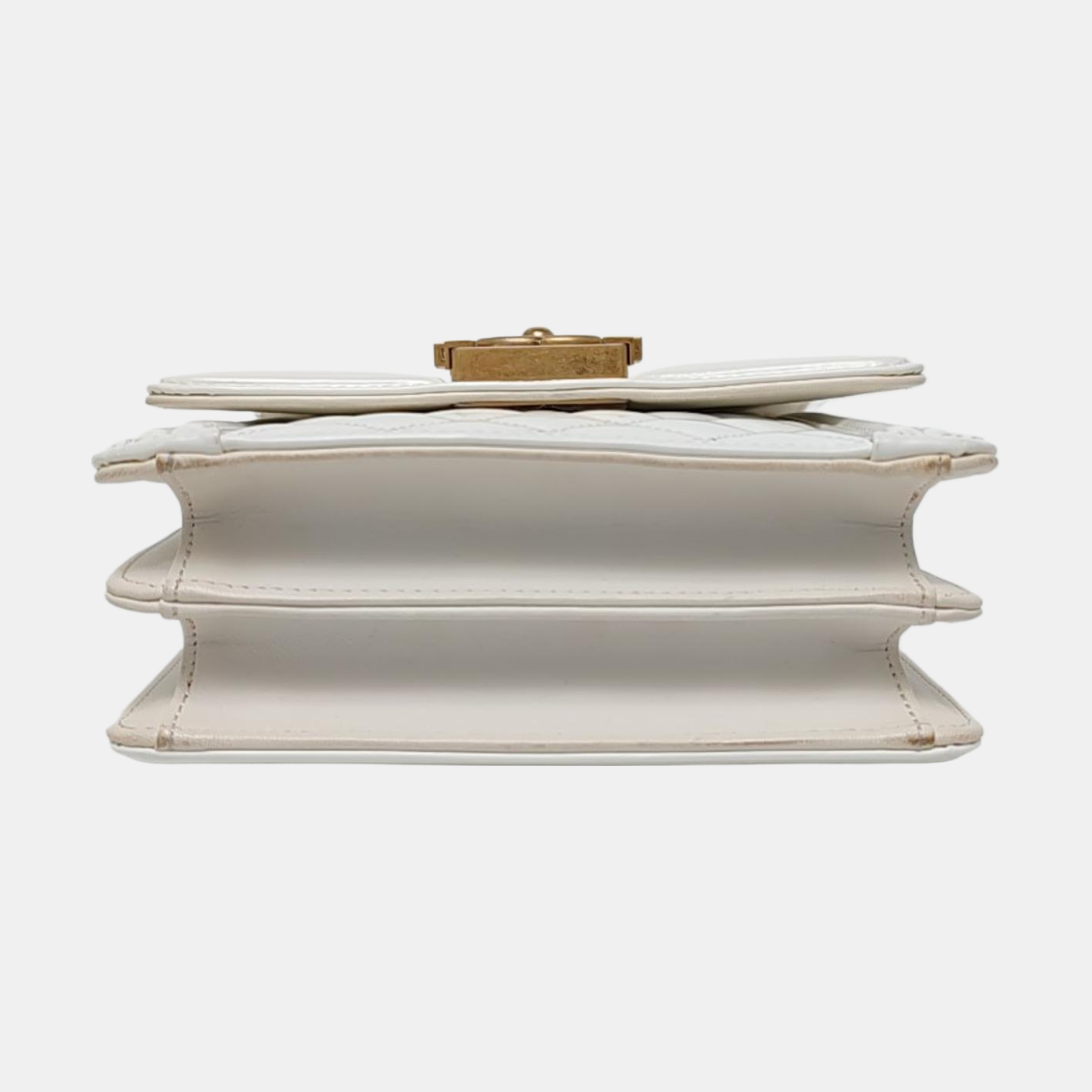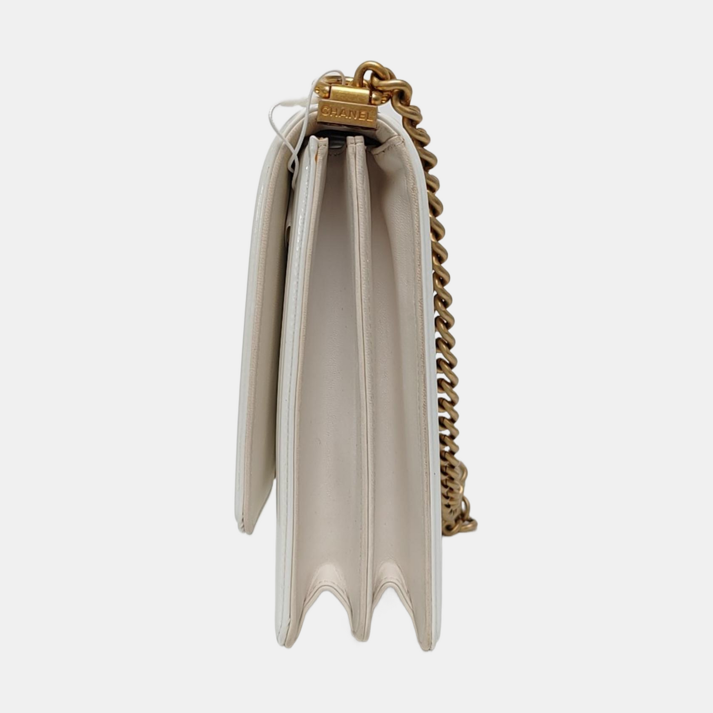 CHANEL BOY CHANEL White Patent Leather Quilted Shoulder Bag Crossbody Bag Gold Hardware 26 Clasp Detachable Strap-(SKU)-963892900