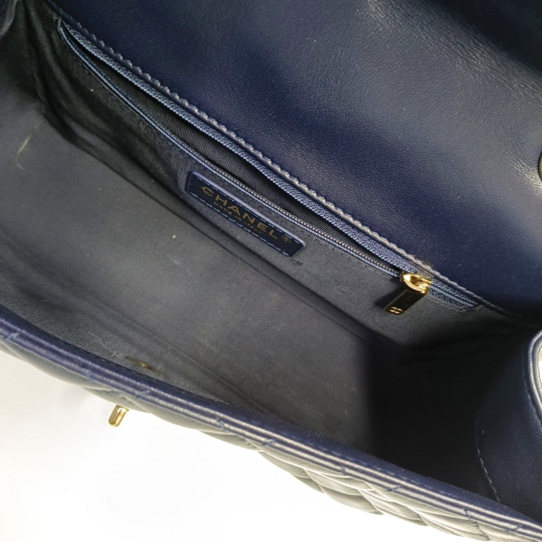 CHANEL CLASSIC SINGLE FLAP Medium Deep Blue Lamb Leather Quilted Single Shoulder Bag Crossbody Bag Golden Hardware 21 Clutch-(SKU)-969199227