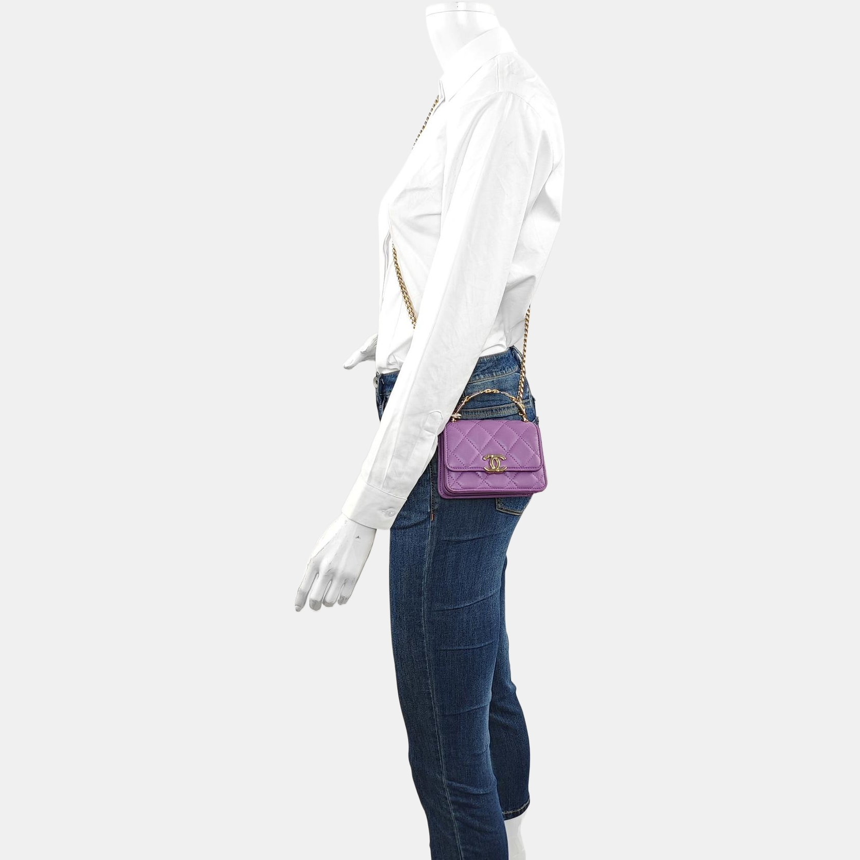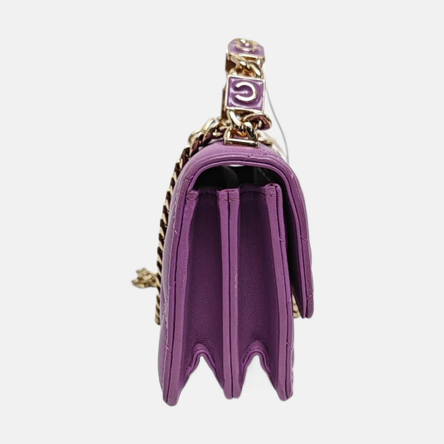 CHANEL TWO TONE CHAIN HANDLE Purple Calfskin Quilted Chain Handle Crossbody Shoulder Bag Gold Hardware 32 Opening-(SKU)-970183733