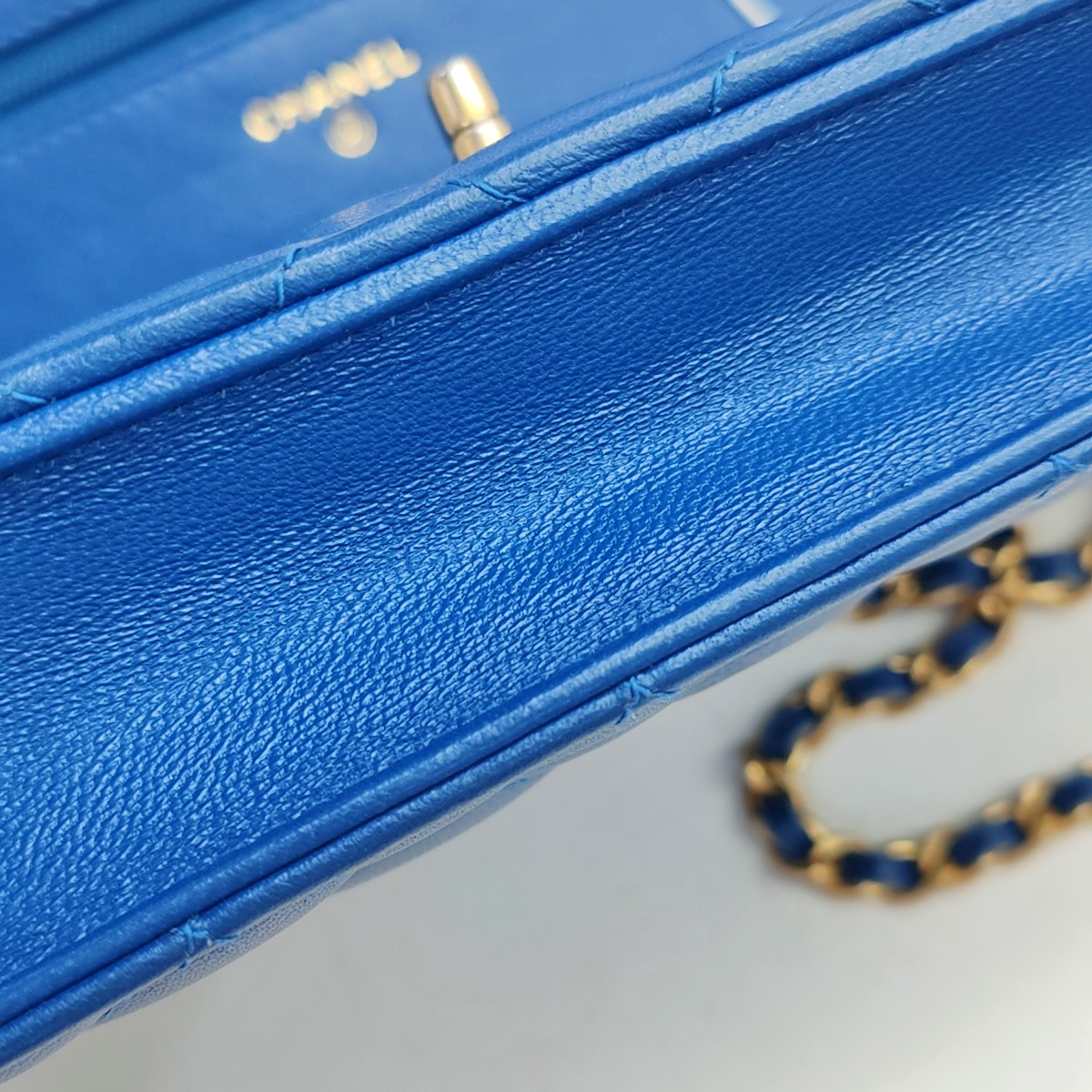 CHANEL WOC Blue Calfskin Quilted Diamond Pattern Crossbody Shoulder Bag Silver Hardware 30 Clasp-(SKU)-949176648