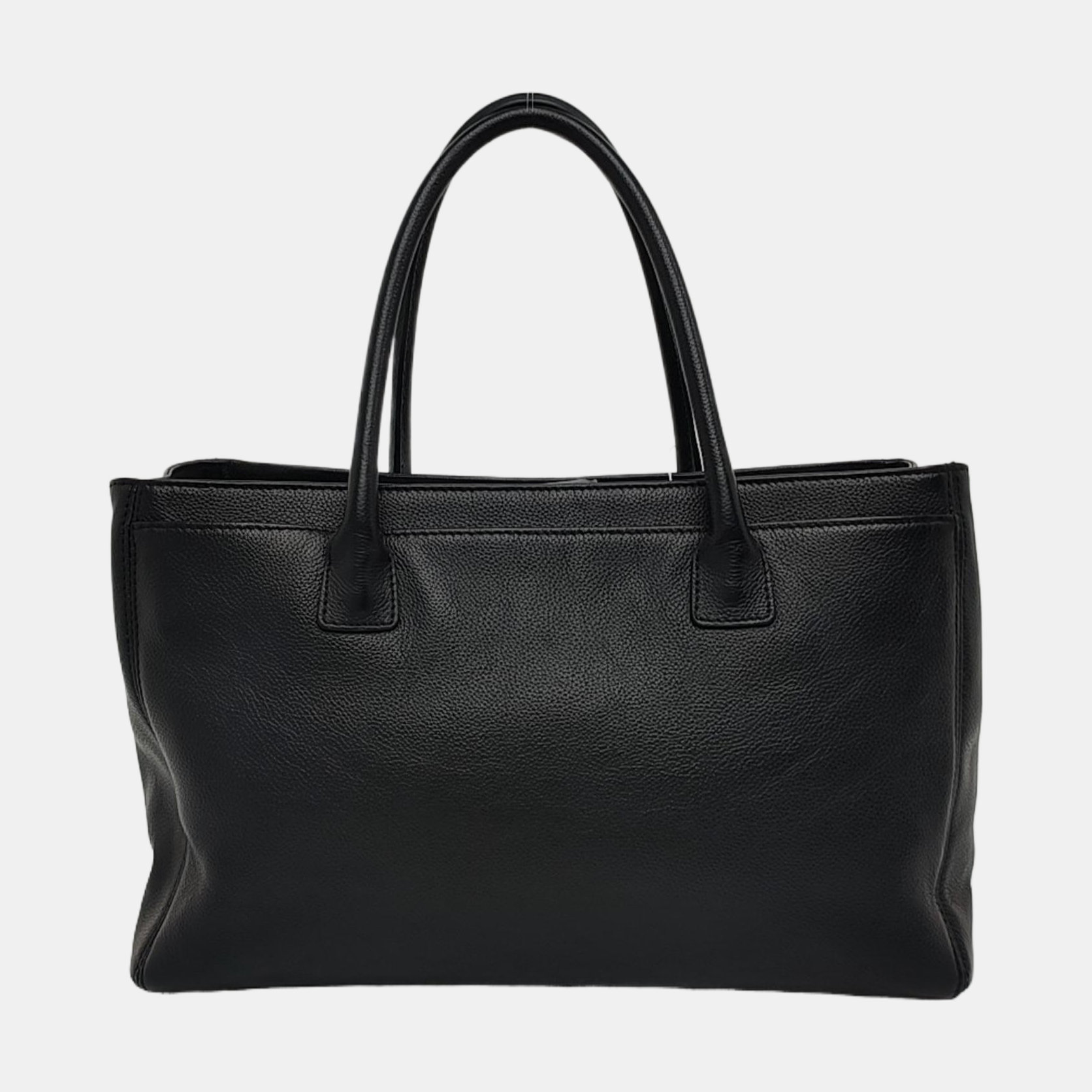 CHANEL CERF Black Calfskin Leather Shoulder Bag with Removable Strap-(SKU)-954658112
