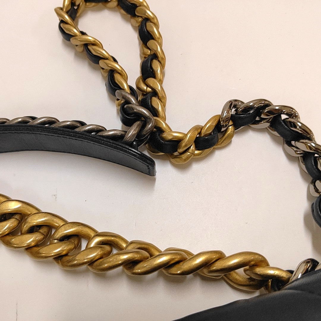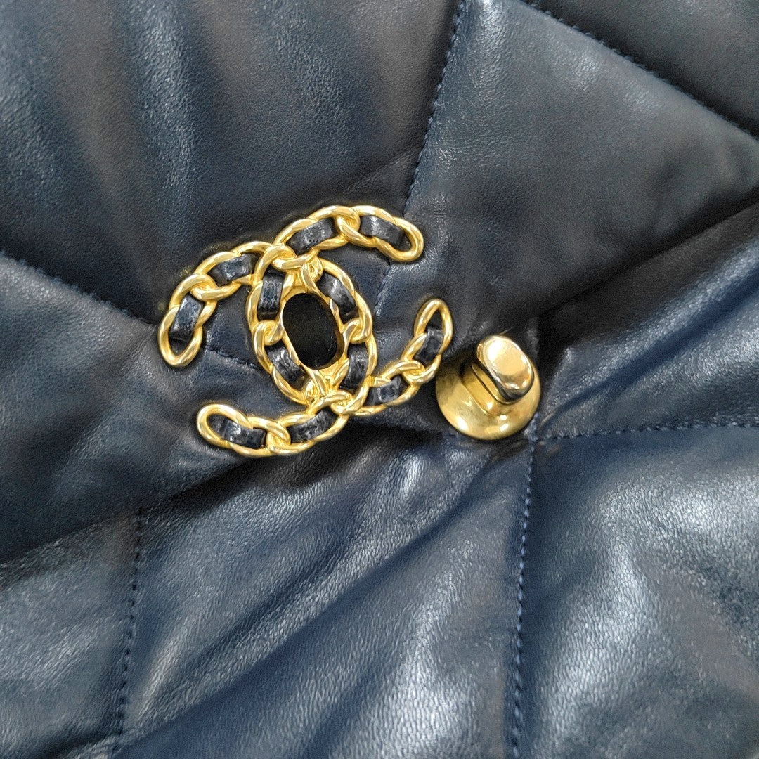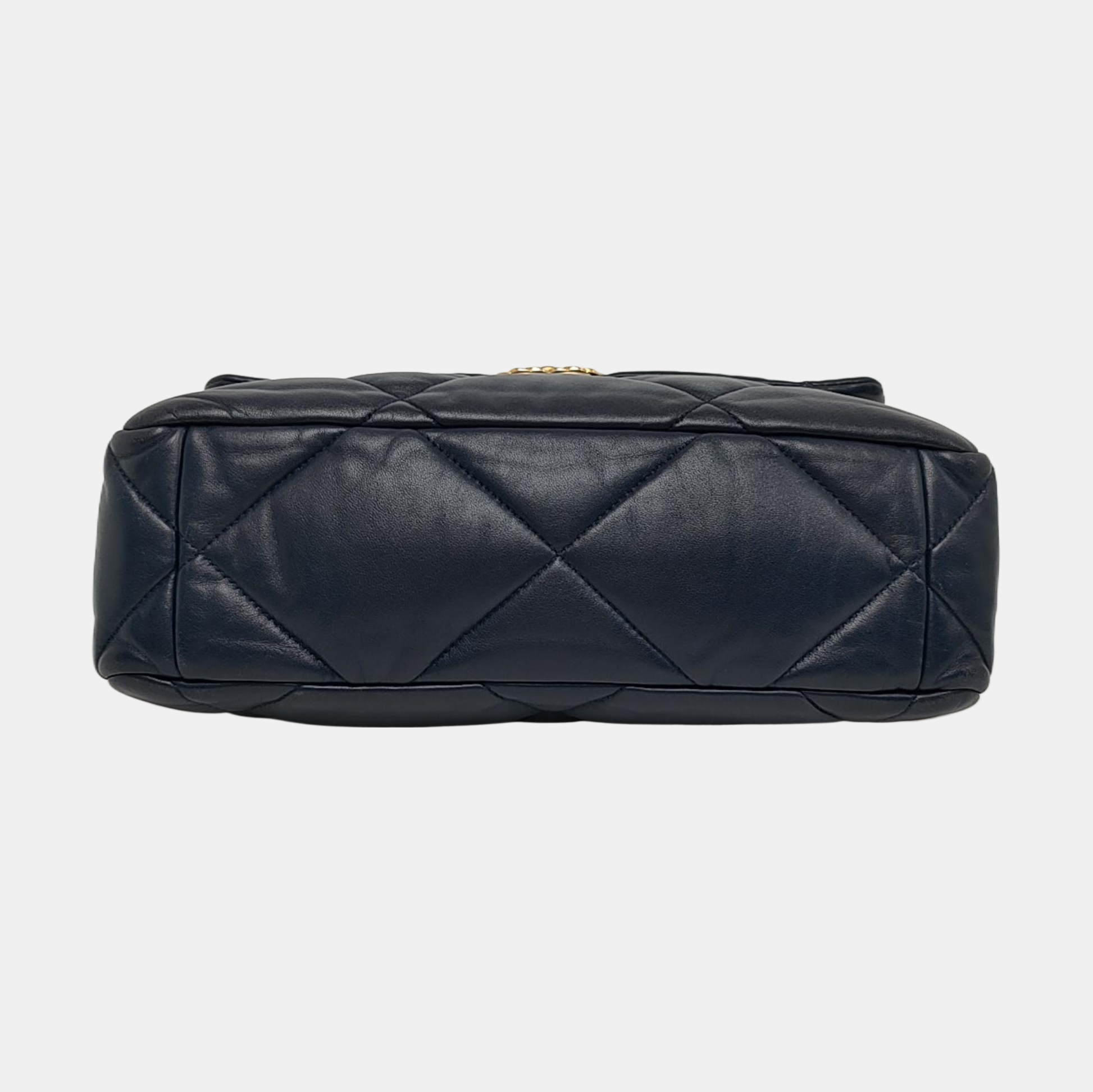 CHANEL CHANEL 19 Large Size Blue Lambskin Diamond Quilted Single Shoulder Bag Tote with Gold, Silver, Ruthenium Hardware 30 Compartments-(SKU)-965310361