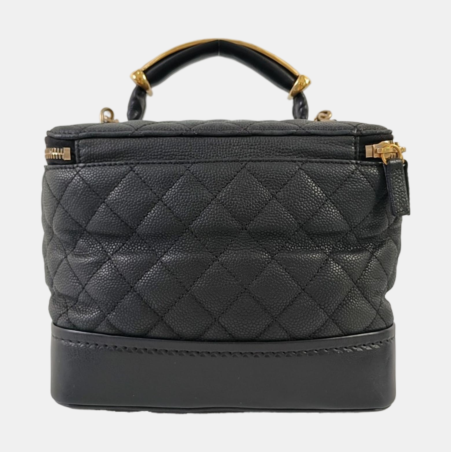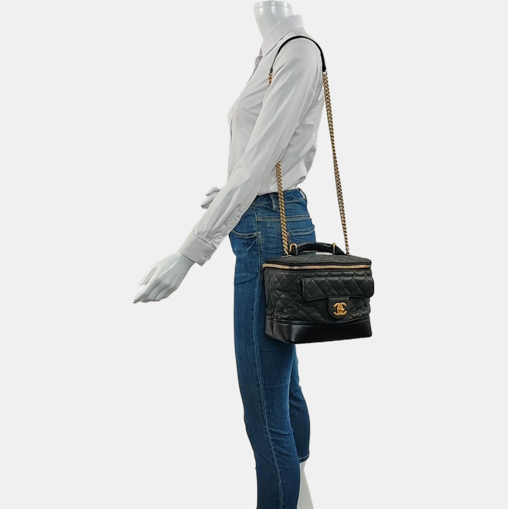 CHANEL GLOBE TROTTER Black Calfskin Quilted Crossbody Shoulder Bag Handbag Gold Hardware 18 Clasp-(SKU)-965080206