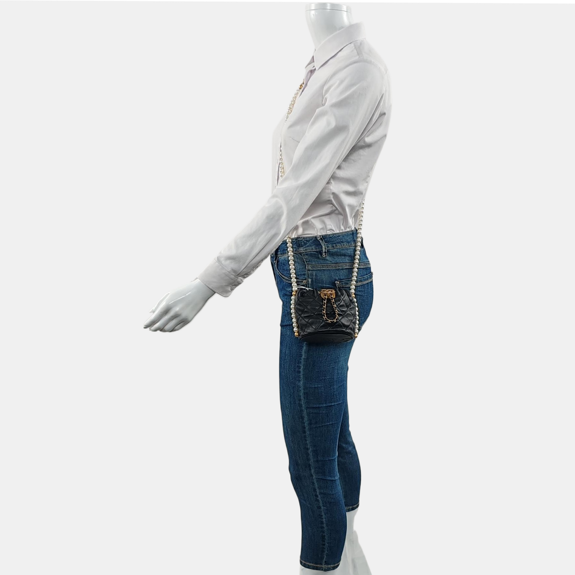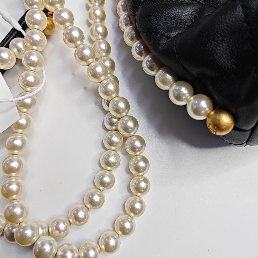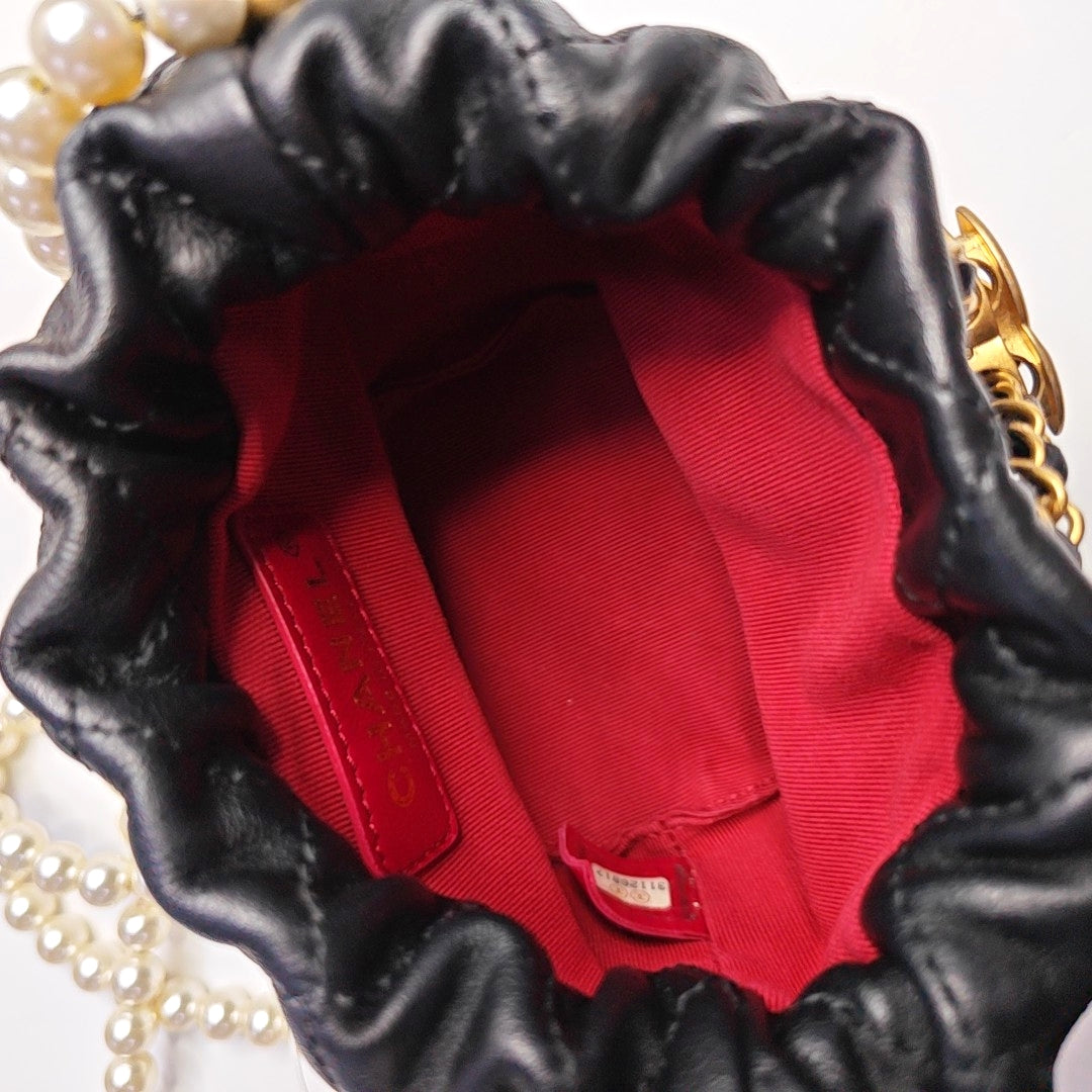 CHANEL DRAWSTRING Mini Black Calfskin Quilted Crossbody Shoulder Bag with Gold Hardware, 31 openings-(SKU)-965301985