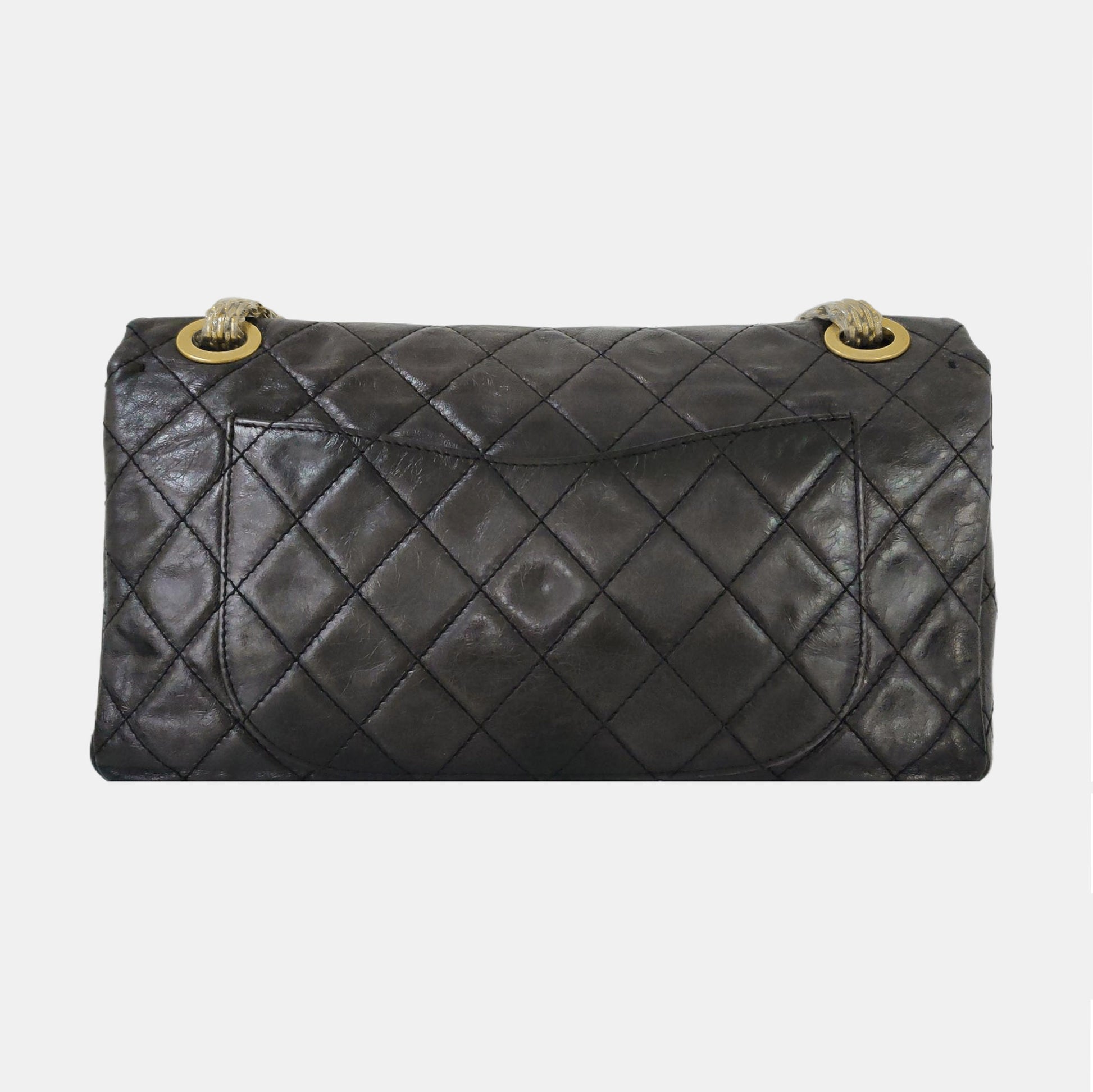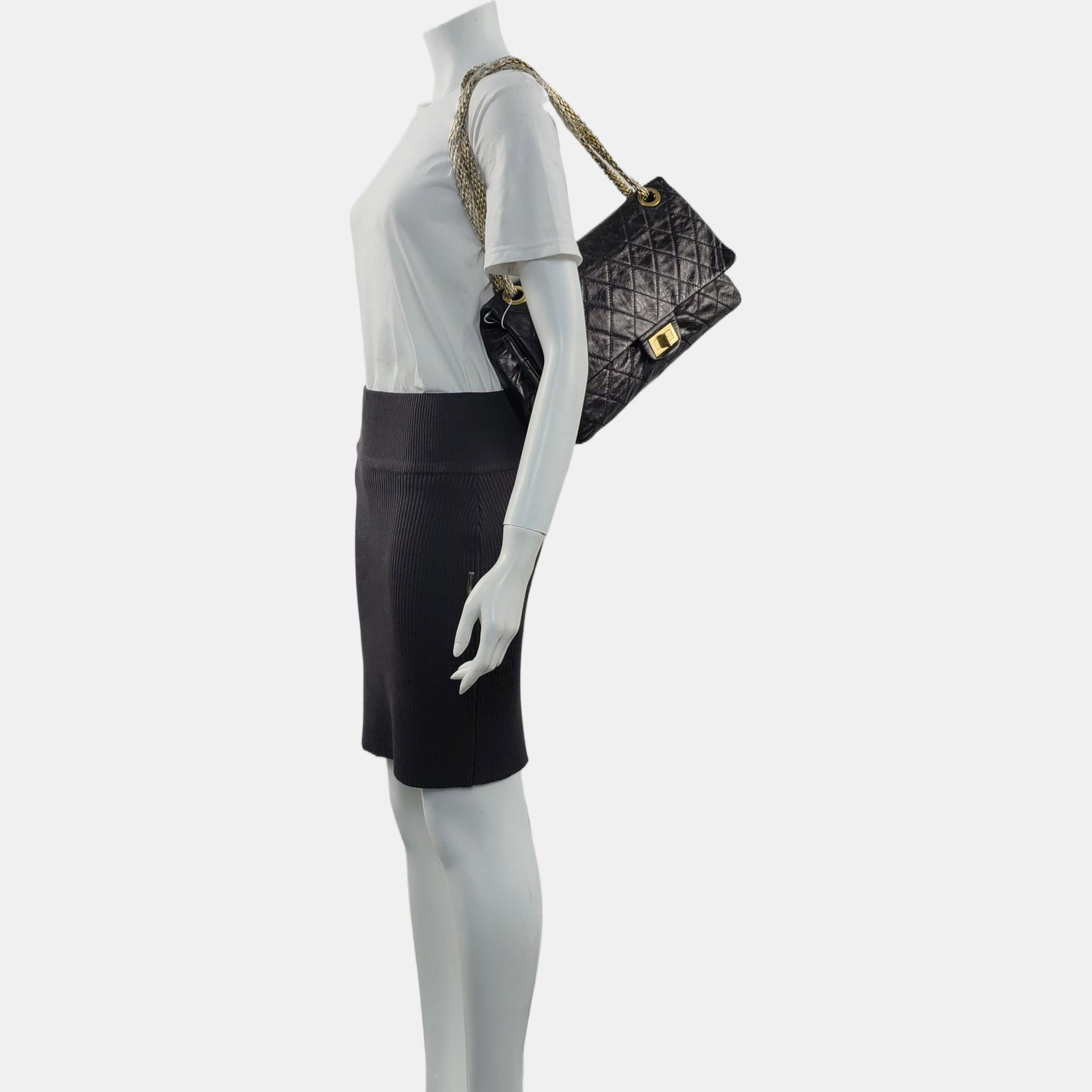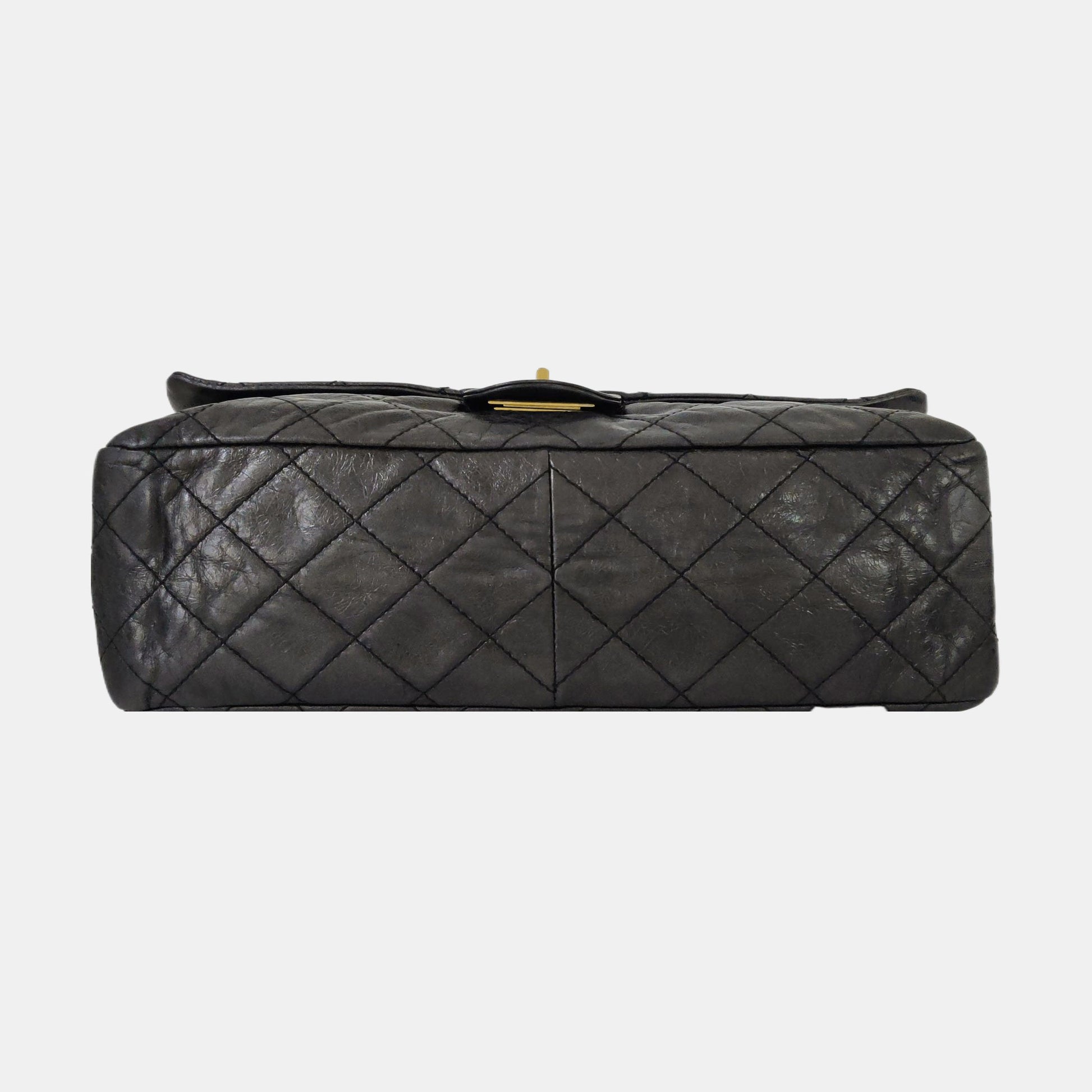 CHANEL 2.55 Black Calfskin Quilted Diamond Pattern Shoulder Bag Gold Hardware 12 Clasp-(SKU)-962208163