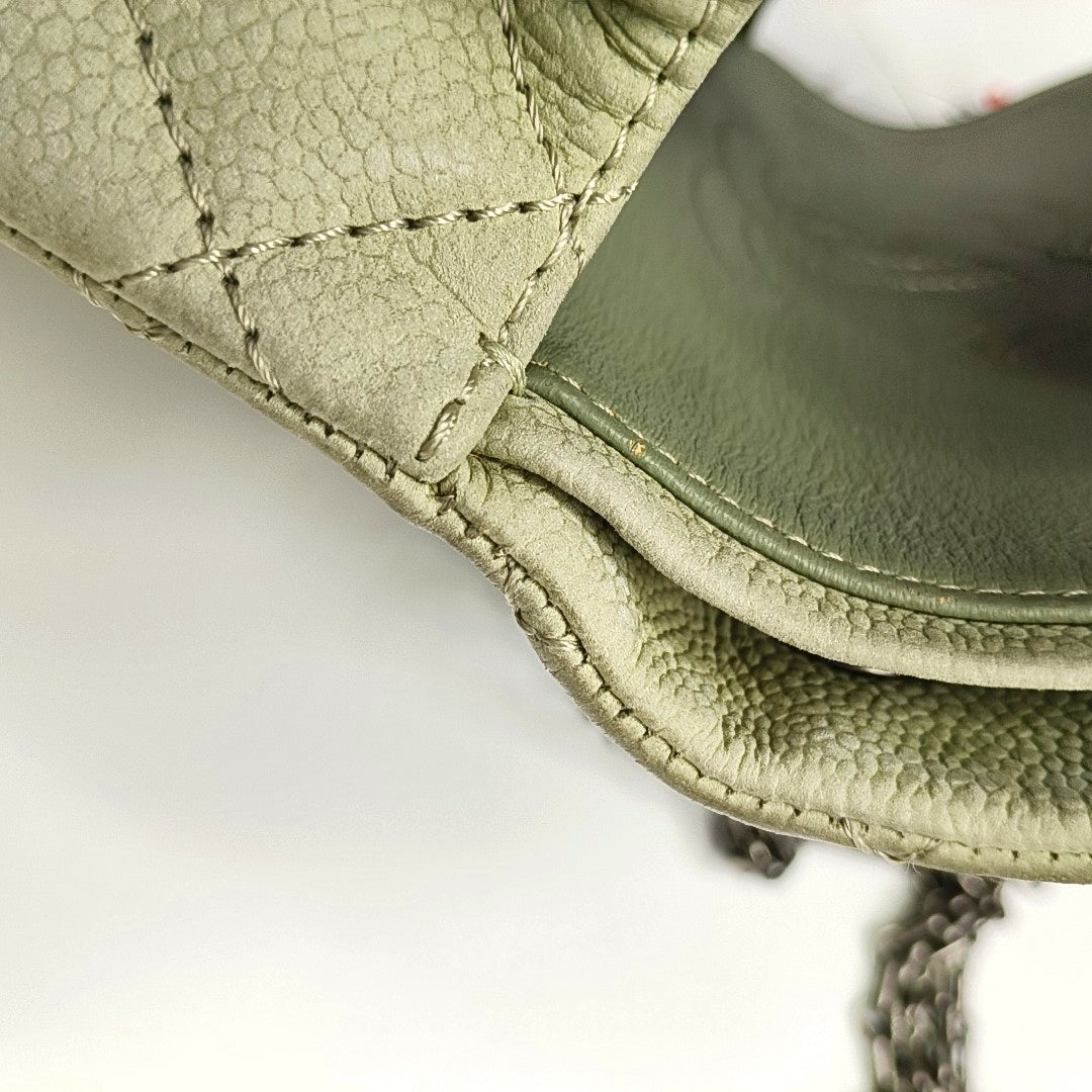 CHANEL 2.55 Green Calfskin Quilted Diamond Stitch Single Shoulder Bag Silver Hardware 17 Clasp-(SKU)-968981513