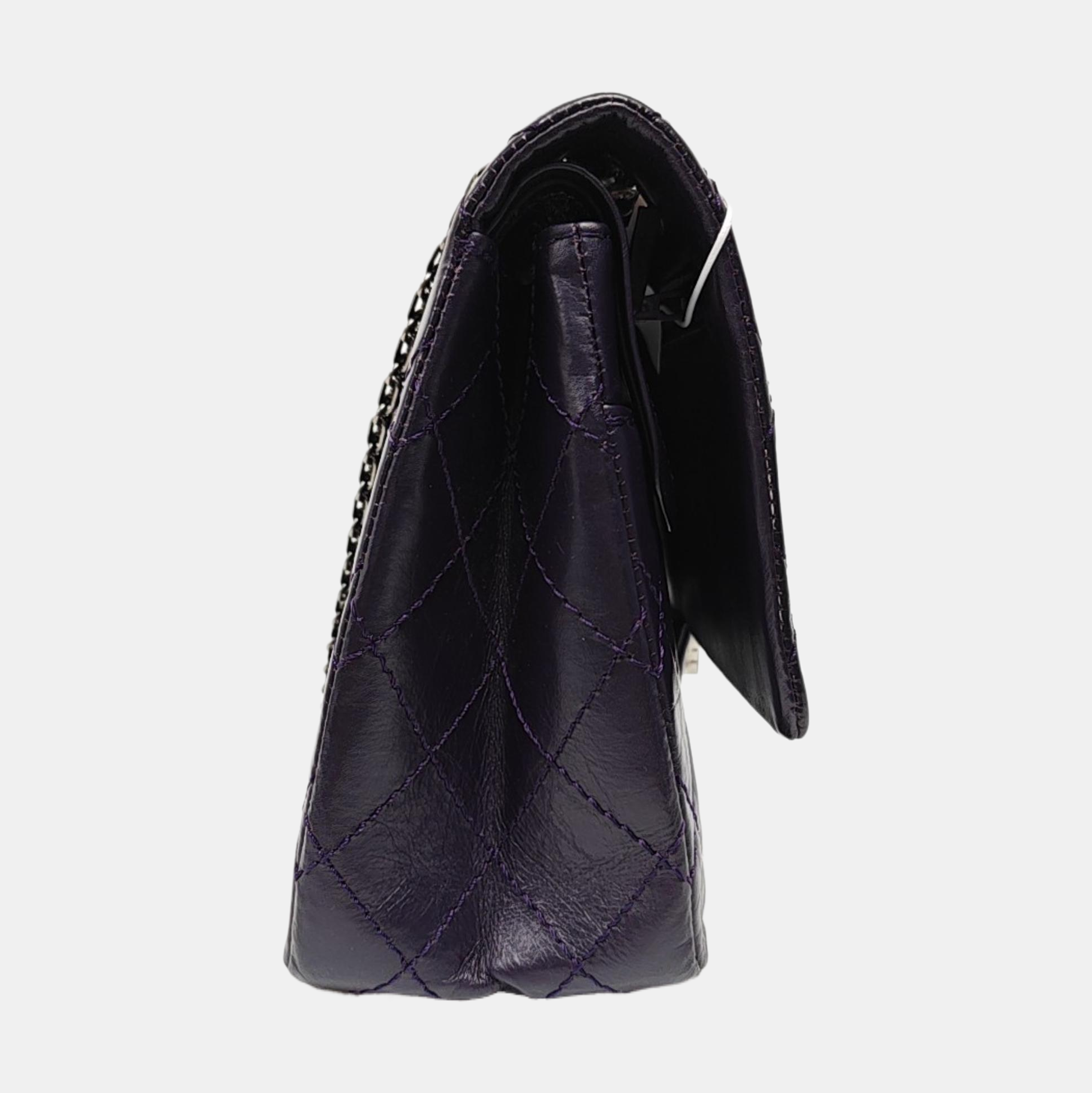 CHANEL 2.55 Large Purple Calfskin Quilted Chevron Single Shoulder Bag with Palladium Hardware-(SKU)-966463850