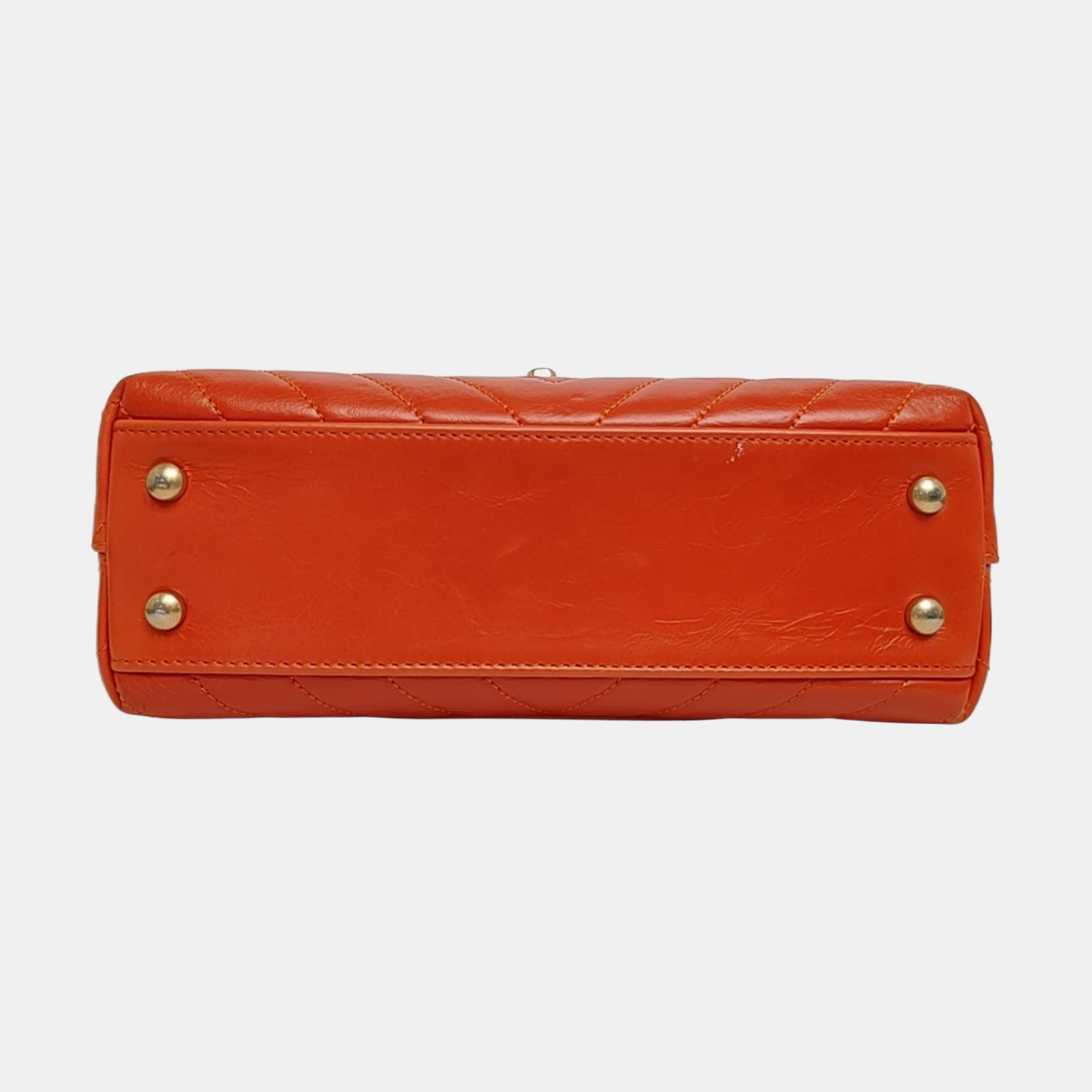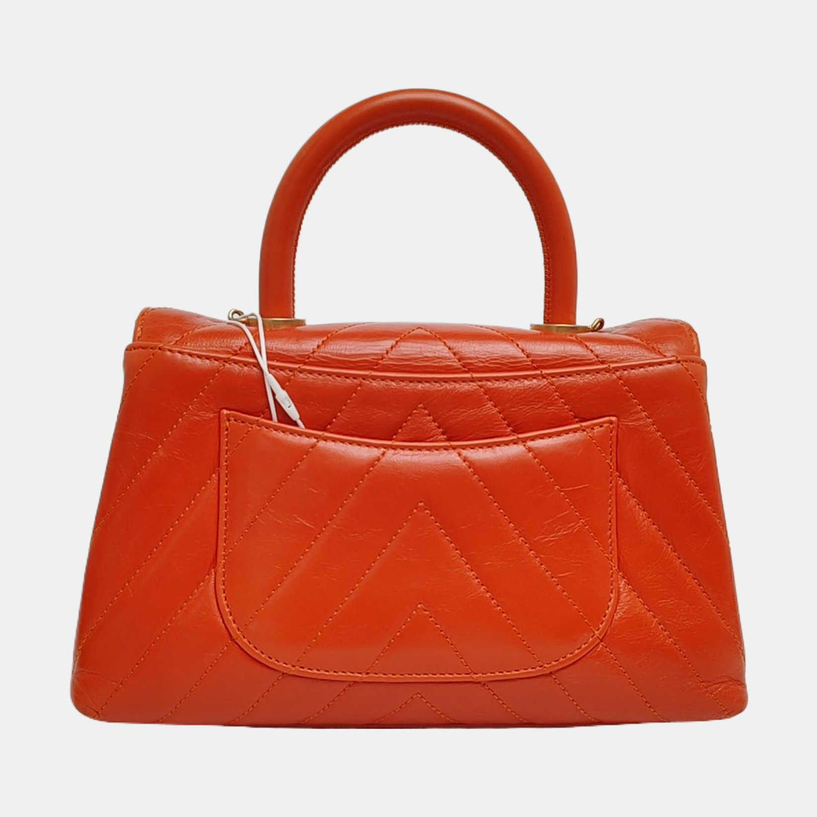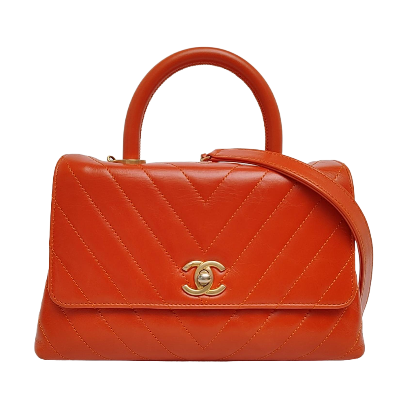 CHANEL COCO HANDLE Orange Calfskin Quilted V-Shape Bag with Golden Hardware, 24K, Detachable Strap-(SKU)-963432693